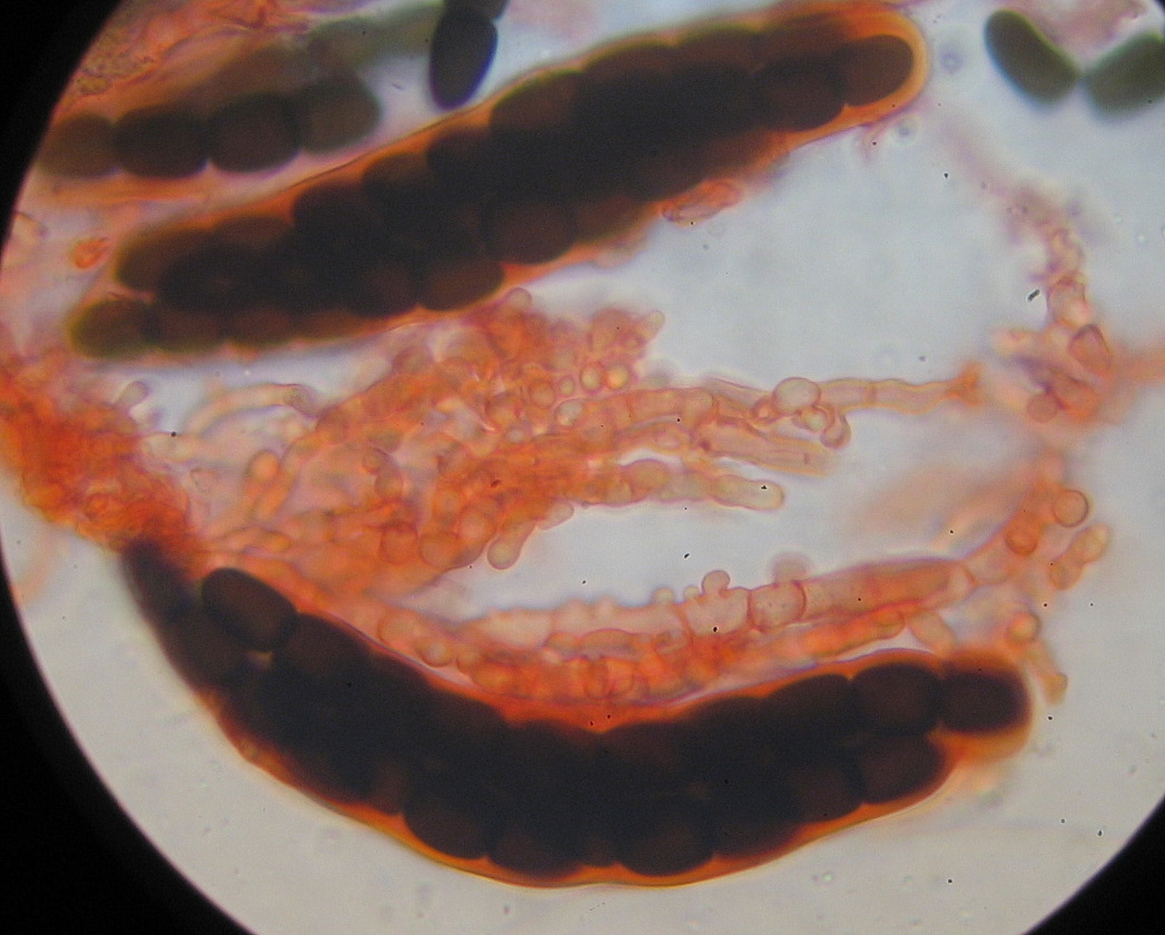 Die sind knorrig mit vielen Auswüchsen, teils kurz septiert und bis 6µ dick.
