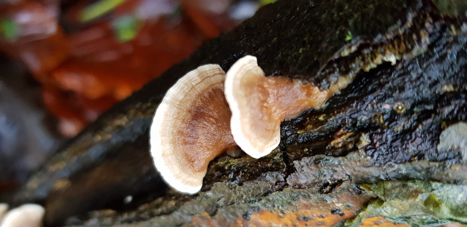 Beim letzten wird vermutlich kaum was anderes übrig bleiben als Trametes versicolor (Schmetterlingstramete), mit schwacher Option auf Trametes ochracea. Wahrscheinlicher aber der schmetterling.
