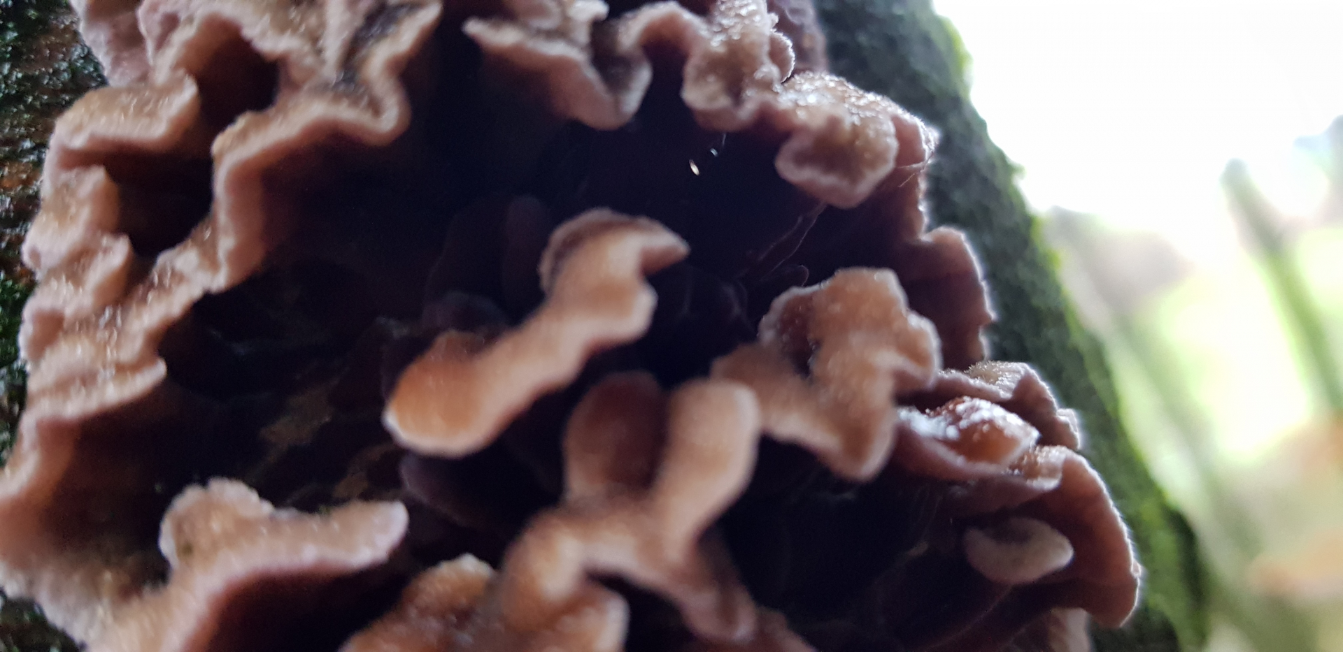 Deine ersten beiden Fotos würde ich für Chondrostereum purpureum halten, den Violetten-Knorpelschichtpilz.