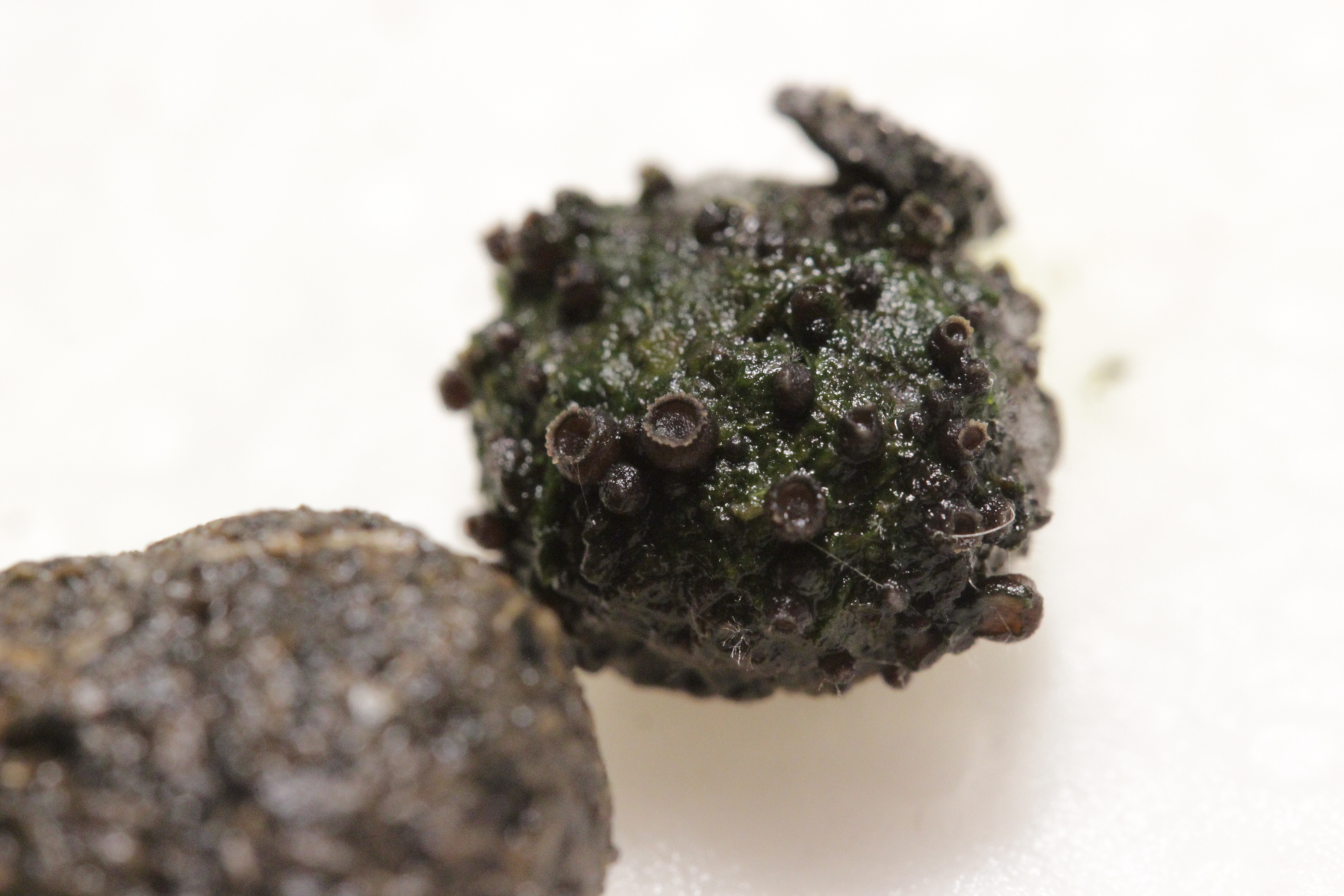 J. minutella fällt durch sehr kleine Sporen auf. Das weiße könnten austretende Asci sein, es scheint, dass die Masse aus den Ostiolen kommt.