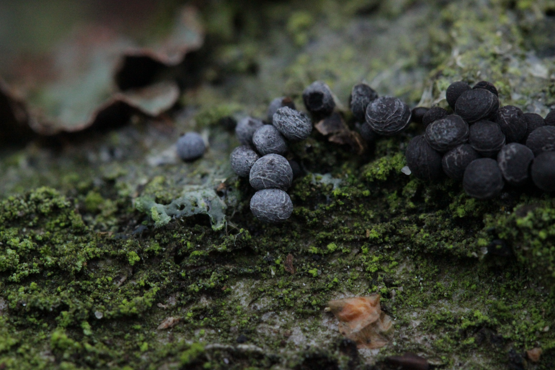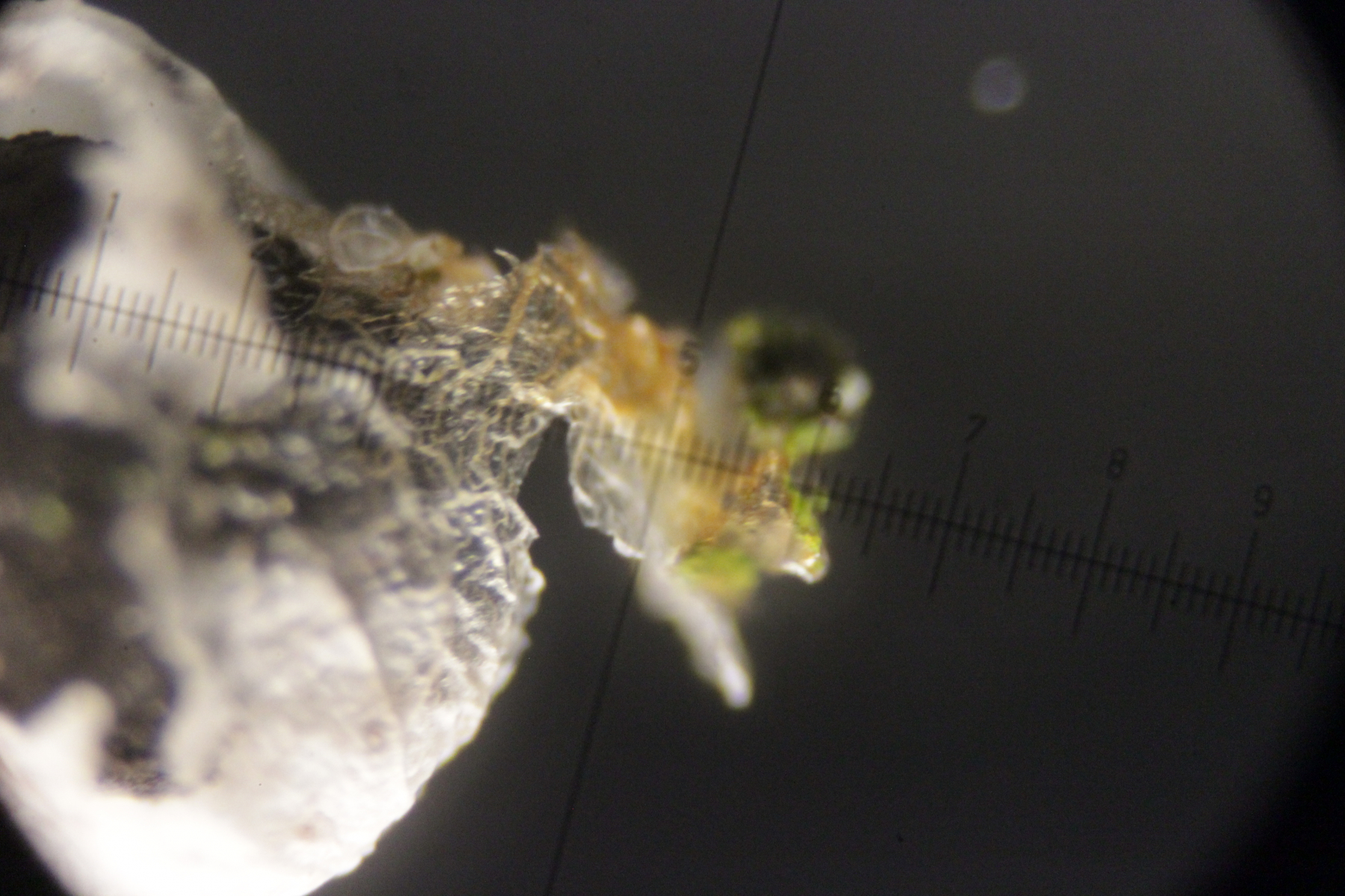 Das sind vermutlich die Überbleibsel der äußeren Hülle nachdem ich den Schleimpilz zerquetscht habe.