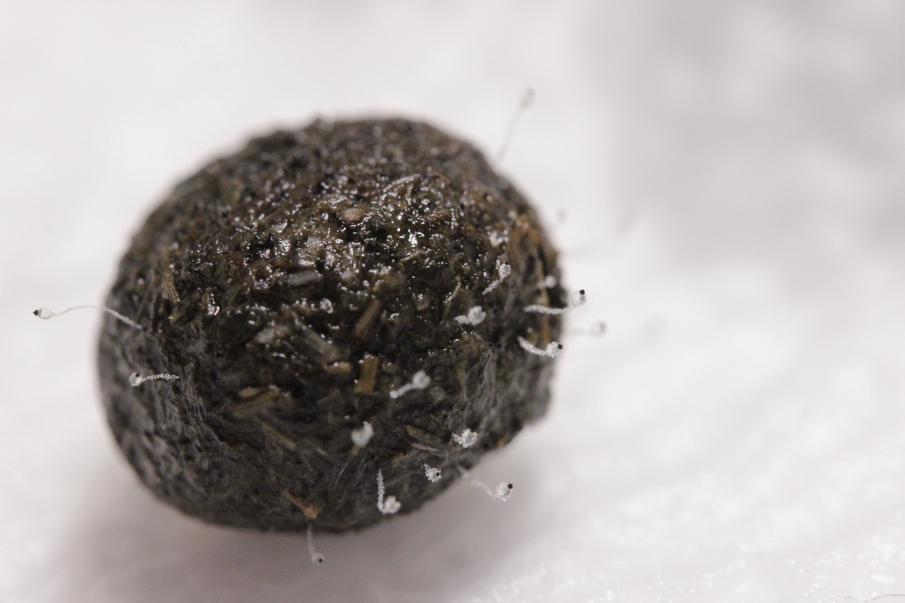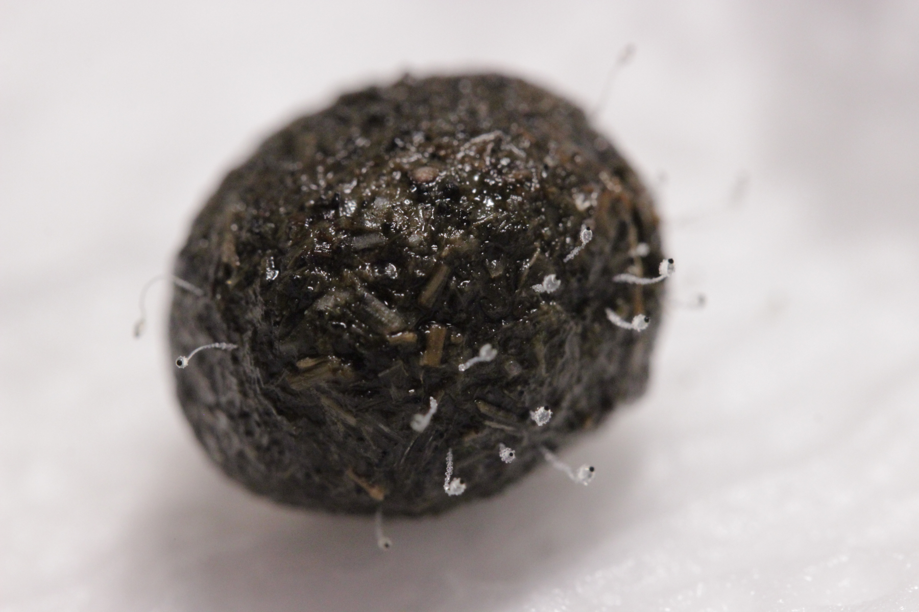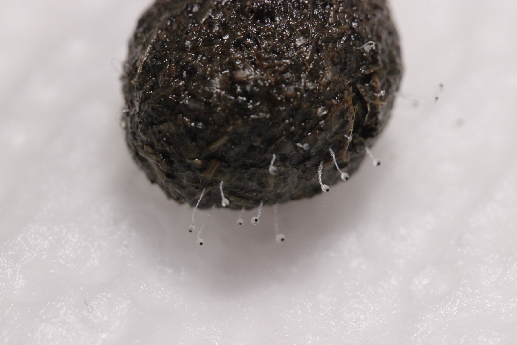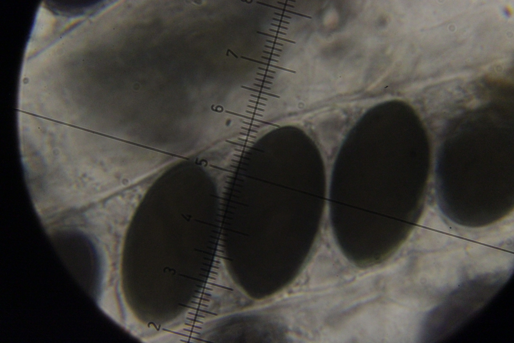 33. Hier würde ich auf Pilobolus umbonatus auf Kaninchen tippen. Sporenmaße (Mittelwert aus 5 Sporen, die halbwegs gut zu erkennen waren):4.8x3.0 µm
