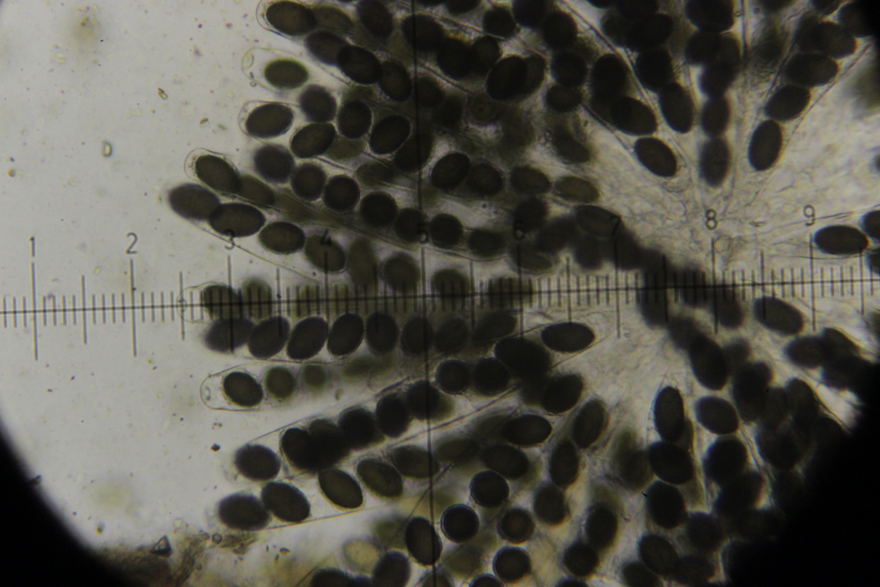33. Hier würde ich auf Pilobolus umbonatus auf Kaninchen tippen. Sporenmaße (Mittelwert aus 5 Sporen, die halbwegs gut zu erkennen waren):4.8x3.0 µm