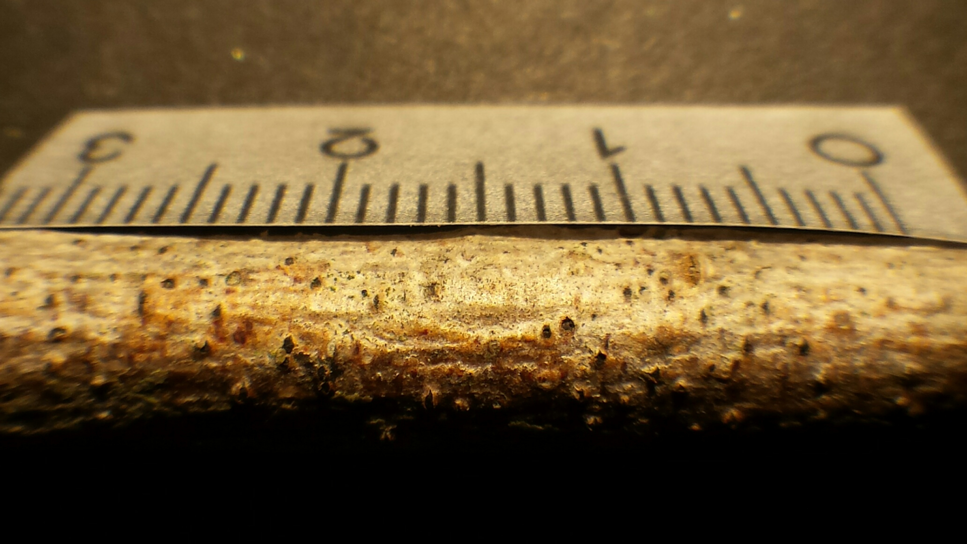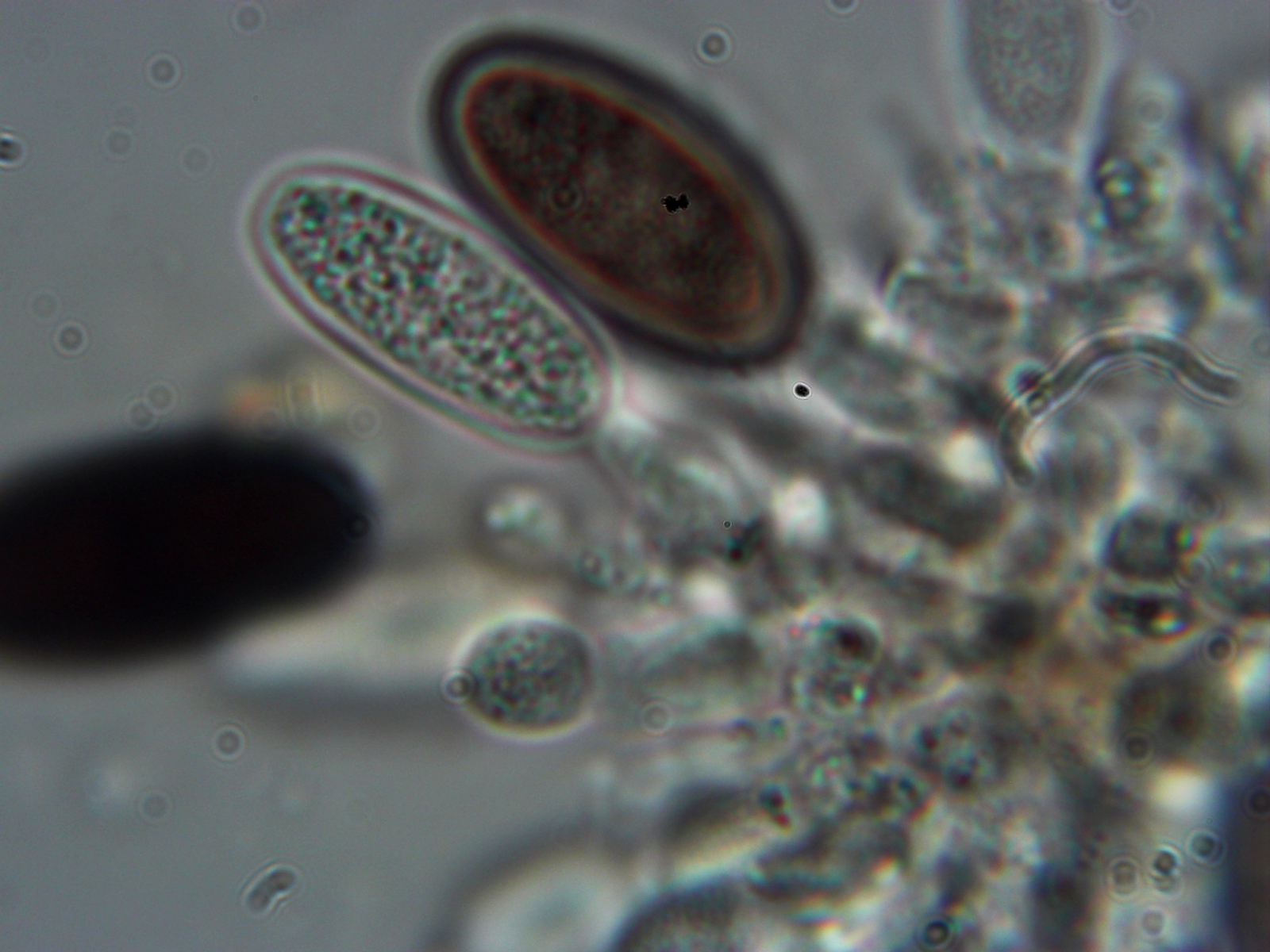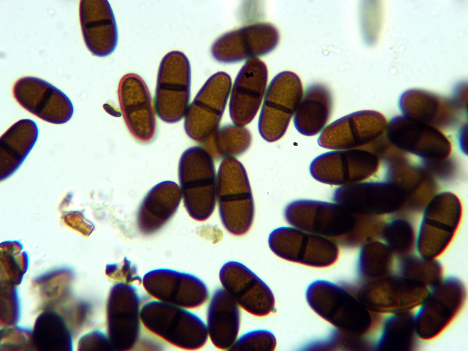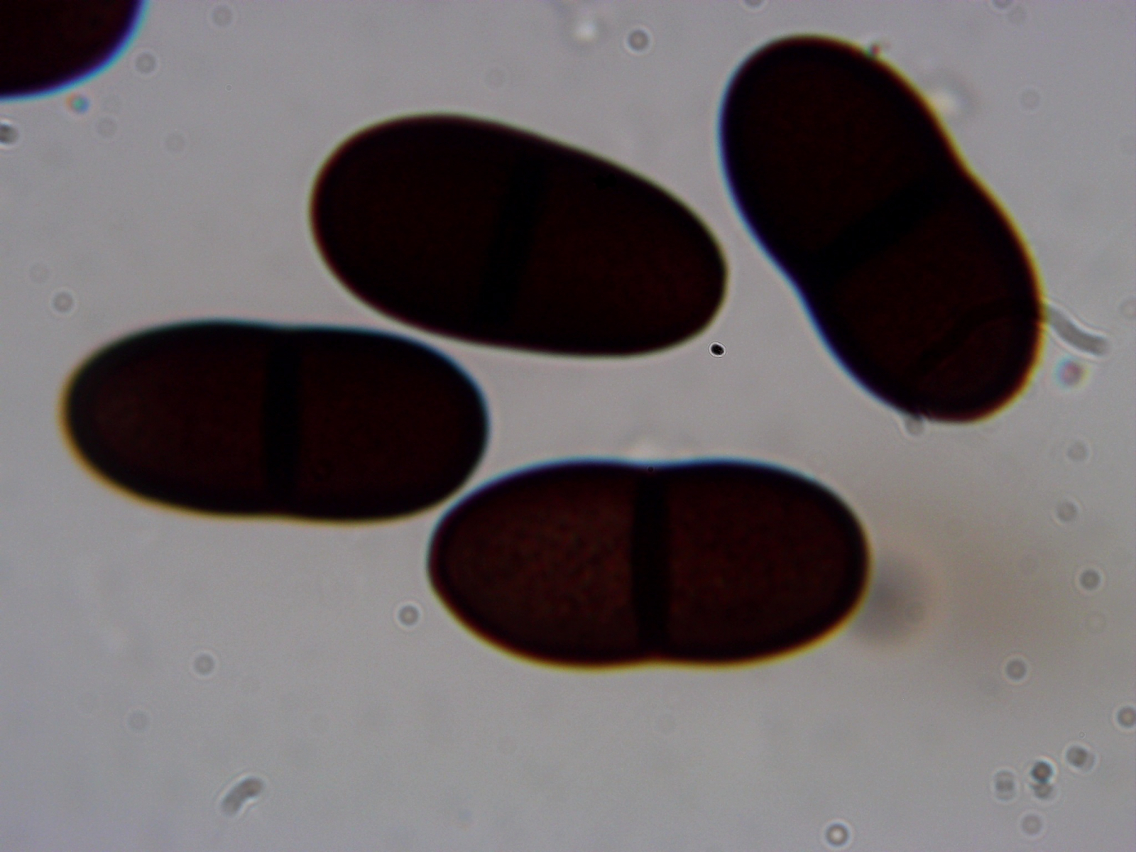 An den Zweigen finden sich viele winzig kleine schwarze Punkte (deutlich < 1mm). Unter der Rinde liegen dort mehrere kleine Pyknidien. In diesen werden Konidien auf kleinen kurzen Zellen gebildet. Die Konidiogenese ist blastisch vermutlich (!) auf Phialiden. Die Konidien sind anfangs hyalin und einzellig, werden aber schnell phaeospor und 2-zellig. Sie sind ca. 22 x 10 µm groß und feinwarzig.