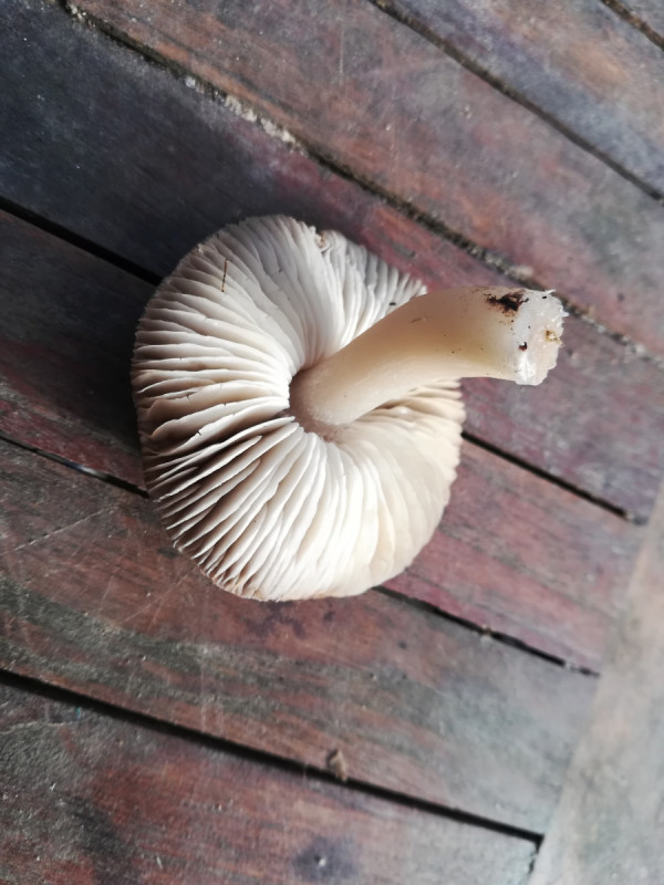danke an alle für die schnellen Antworten. Ich werde nochmal dorthin gehen und Photos machen (bei trockenem Wetter). Geruch ist kaum da oder leicht wie Champignon. Geschmack ist neutral aber am Anfang (und ganz pünktlich) etwas Sauer.