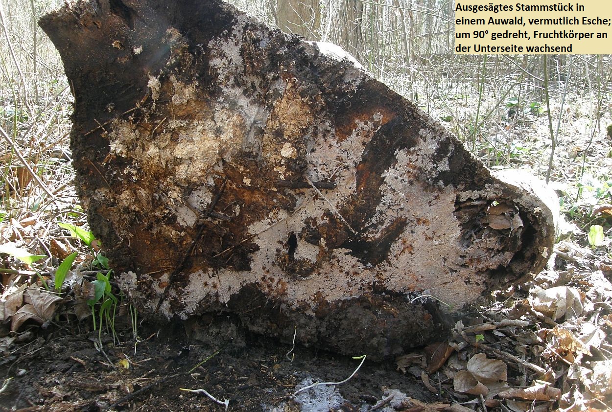Denn im Grunde müsste man jedes Holz, an dem man Haareis beobachtet, komplett durchsequenzieren, um tatsächlich alle PIlzarten, die sich in dem Holz befinden, zu dokumentieren. Normalerweise ist ein Ast mit diversen Pilzarten besetzt, aber nicht alle bilden zugleich Fruchtkörper.