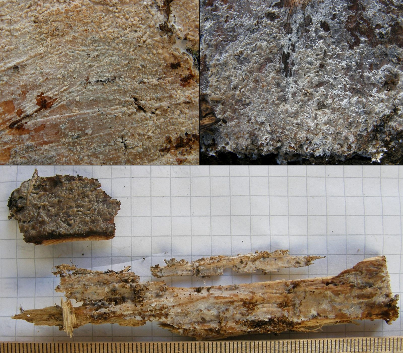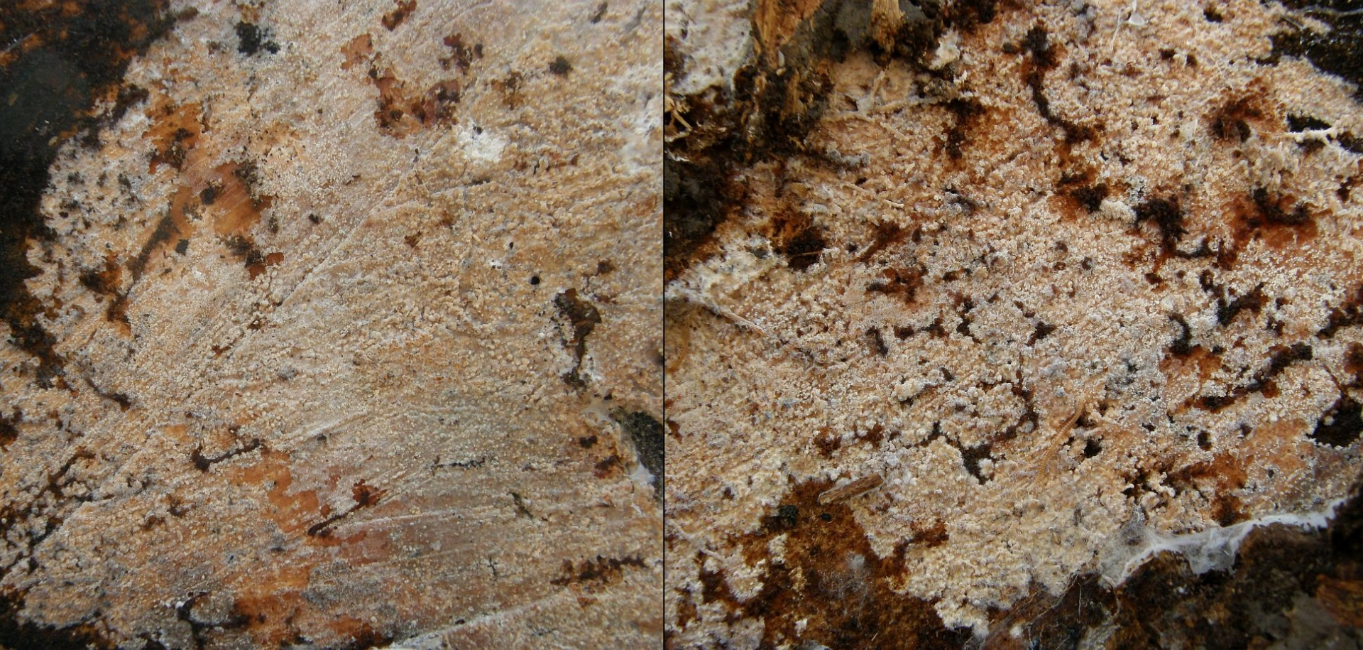 Ich glaub, der Fruchtkörper der Rosa Wachskruste ist oft gar nicht anwesend beim Haareis.