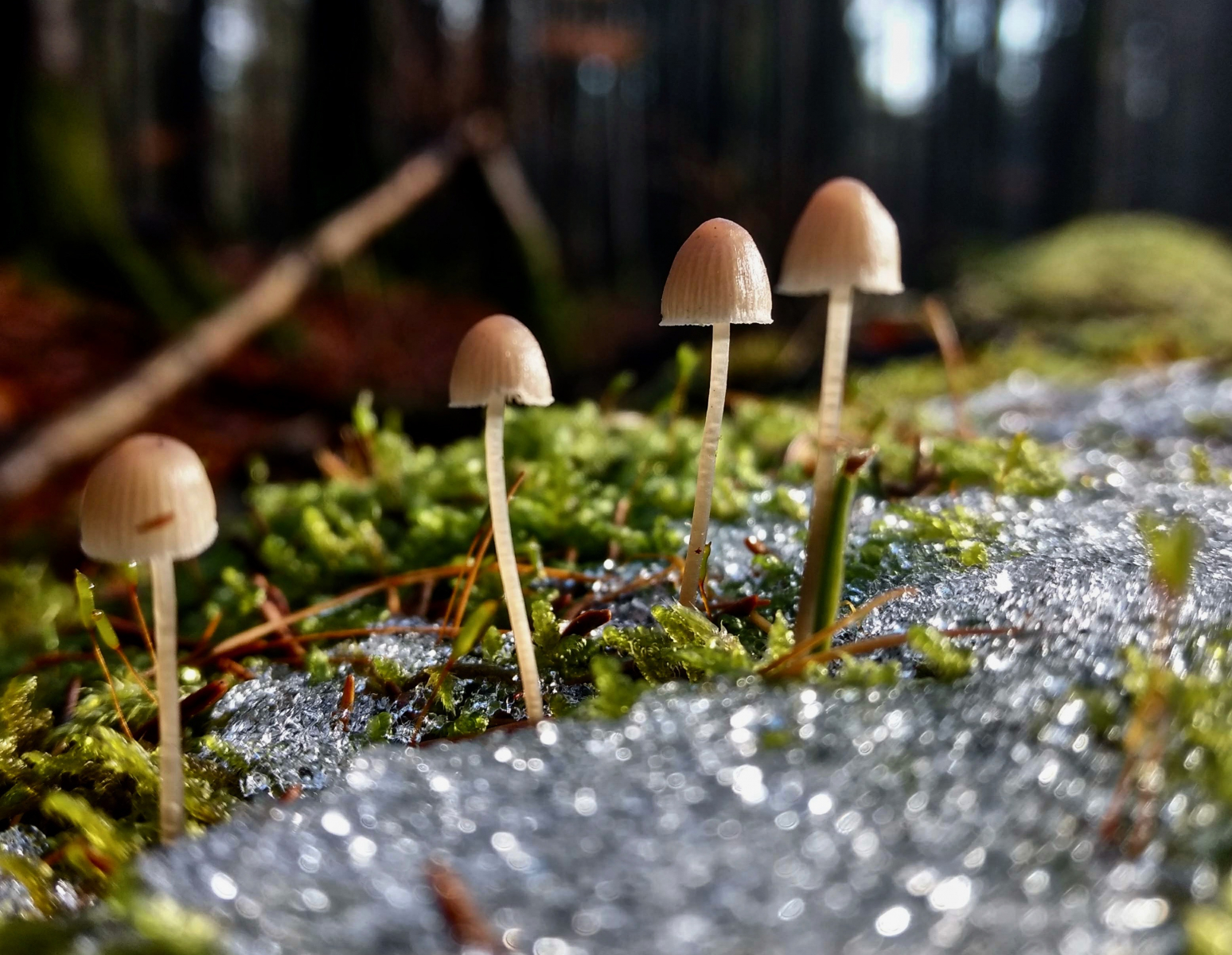 heute war ein sonniger Tag, d.h. der Winterspaziergang war ultimativ. Bei der Frage ob trockener oder Matschschuhweg habe ich mich für letzteren entscheiden. Die nassen Schuhe haben sich gelohnt, denn so habe ich ein paar hübsche Pilze getroffen. Endlich gibt es wieder welche.