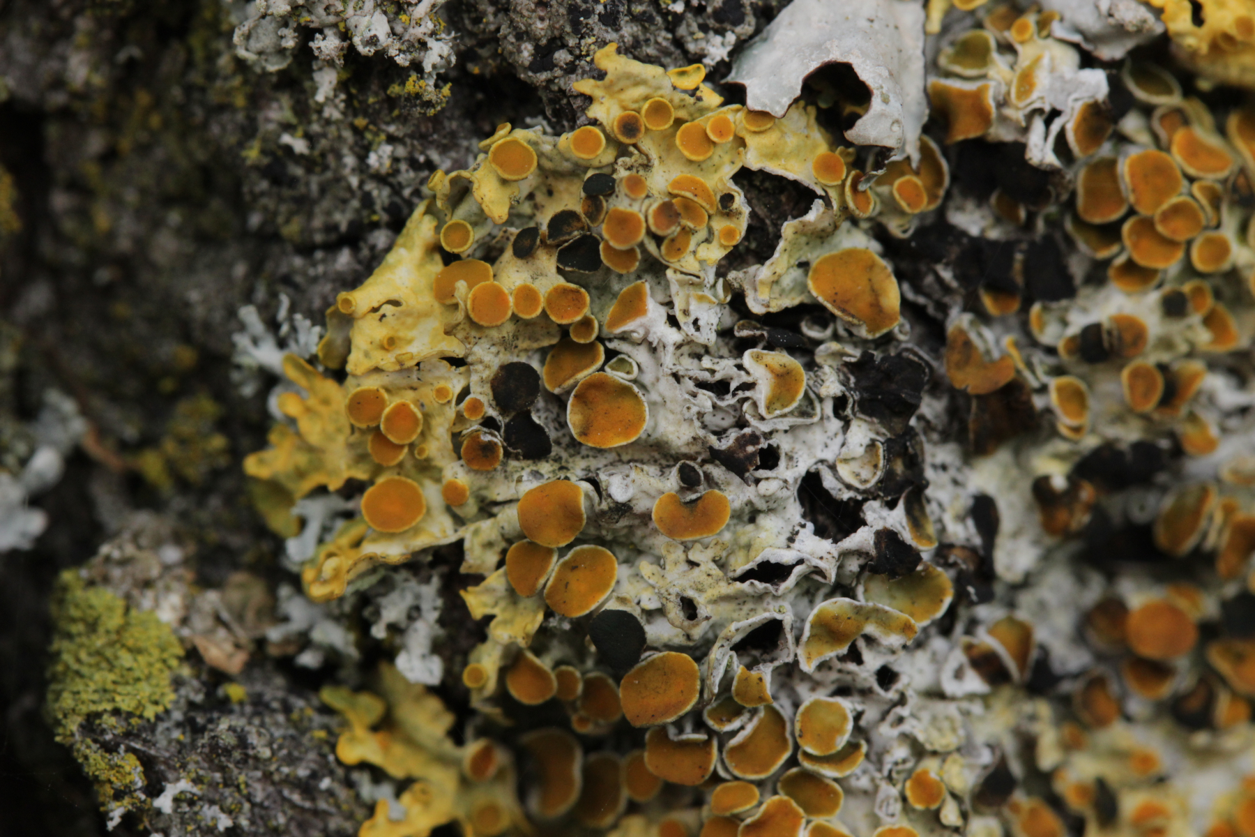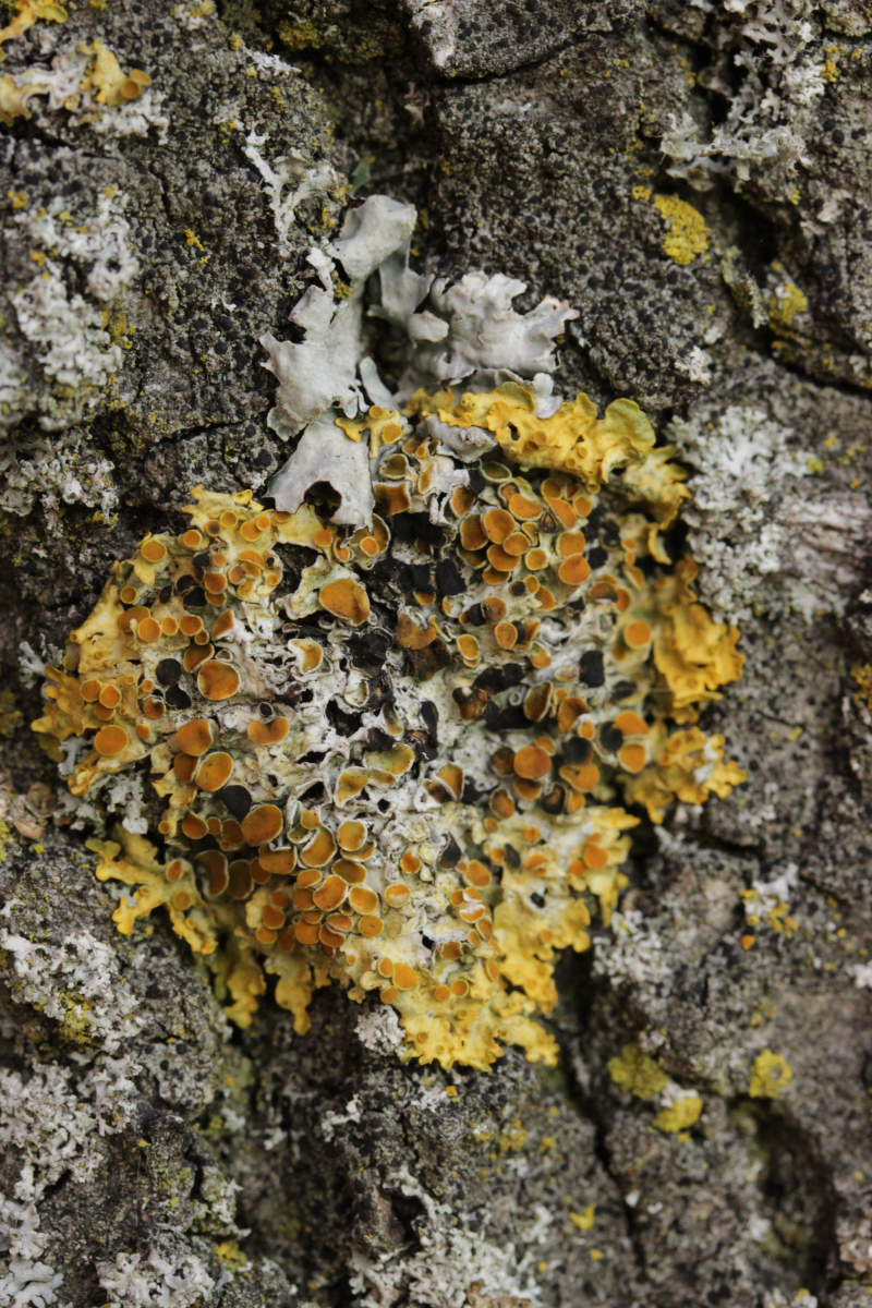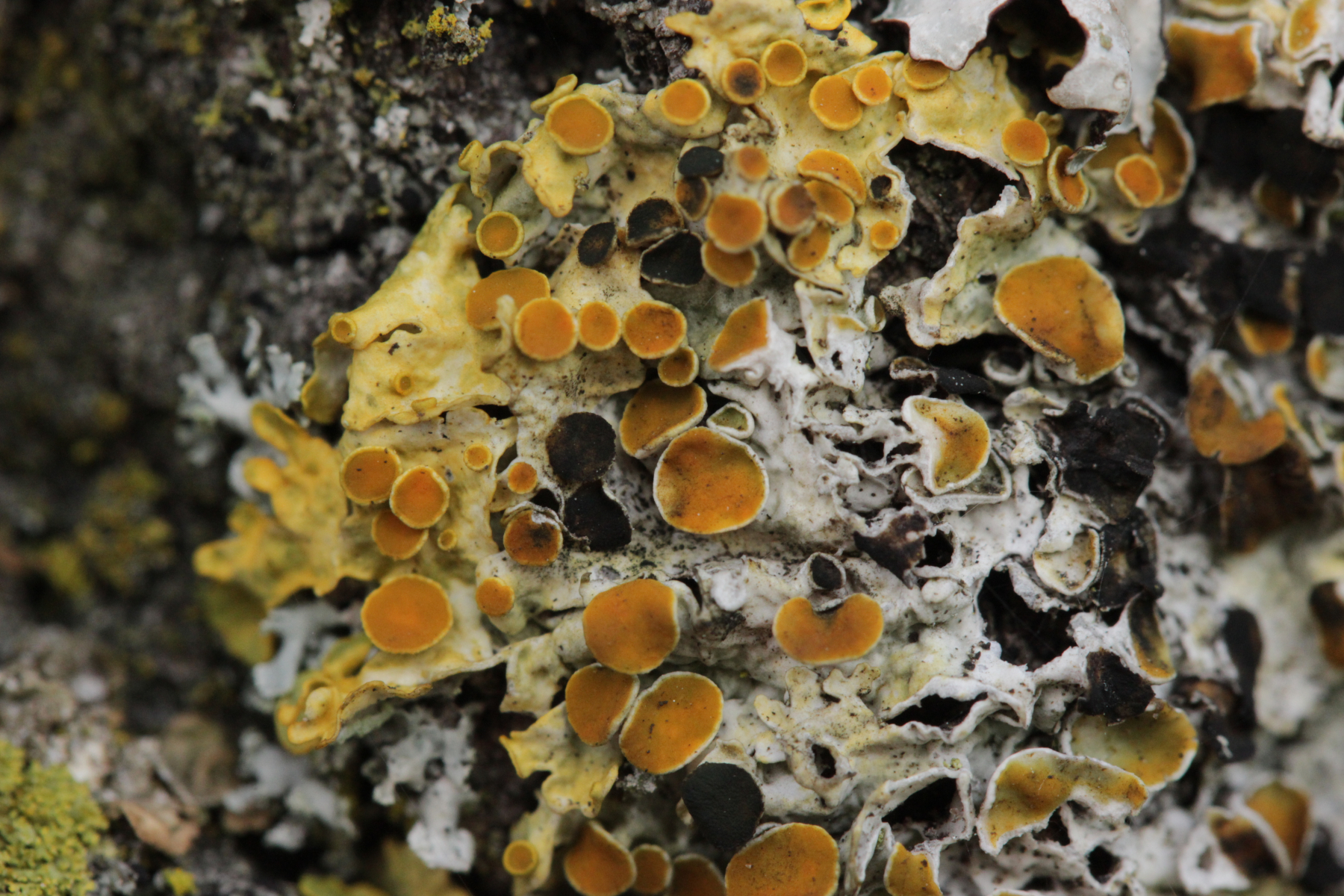 1. Xanthoria parietina mit Befall. Da werde ich die Tage noch mal mit dem Mikroskop reinschauen, vielleicht läßt der sich ja rauskriegen.