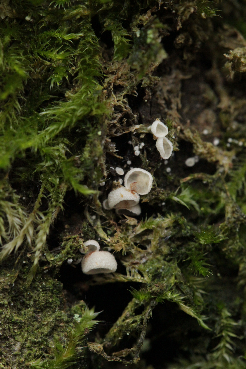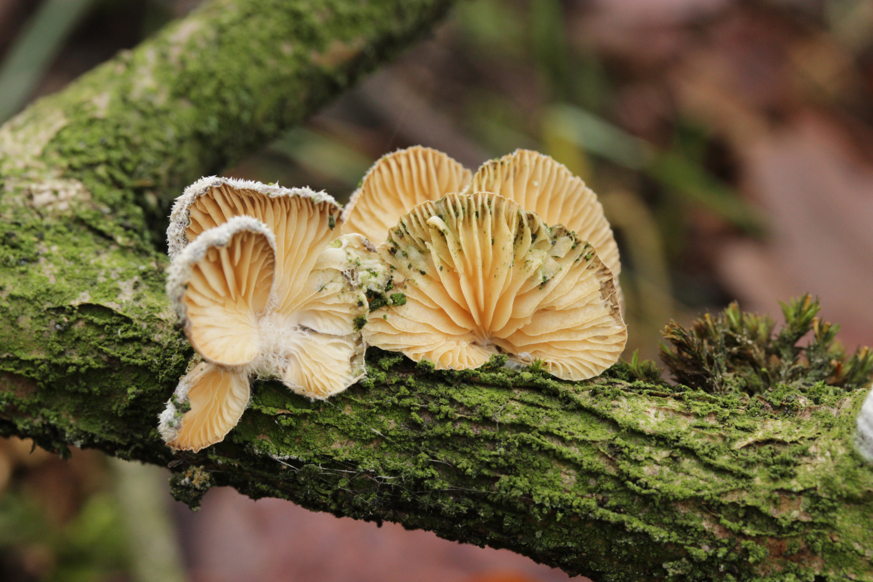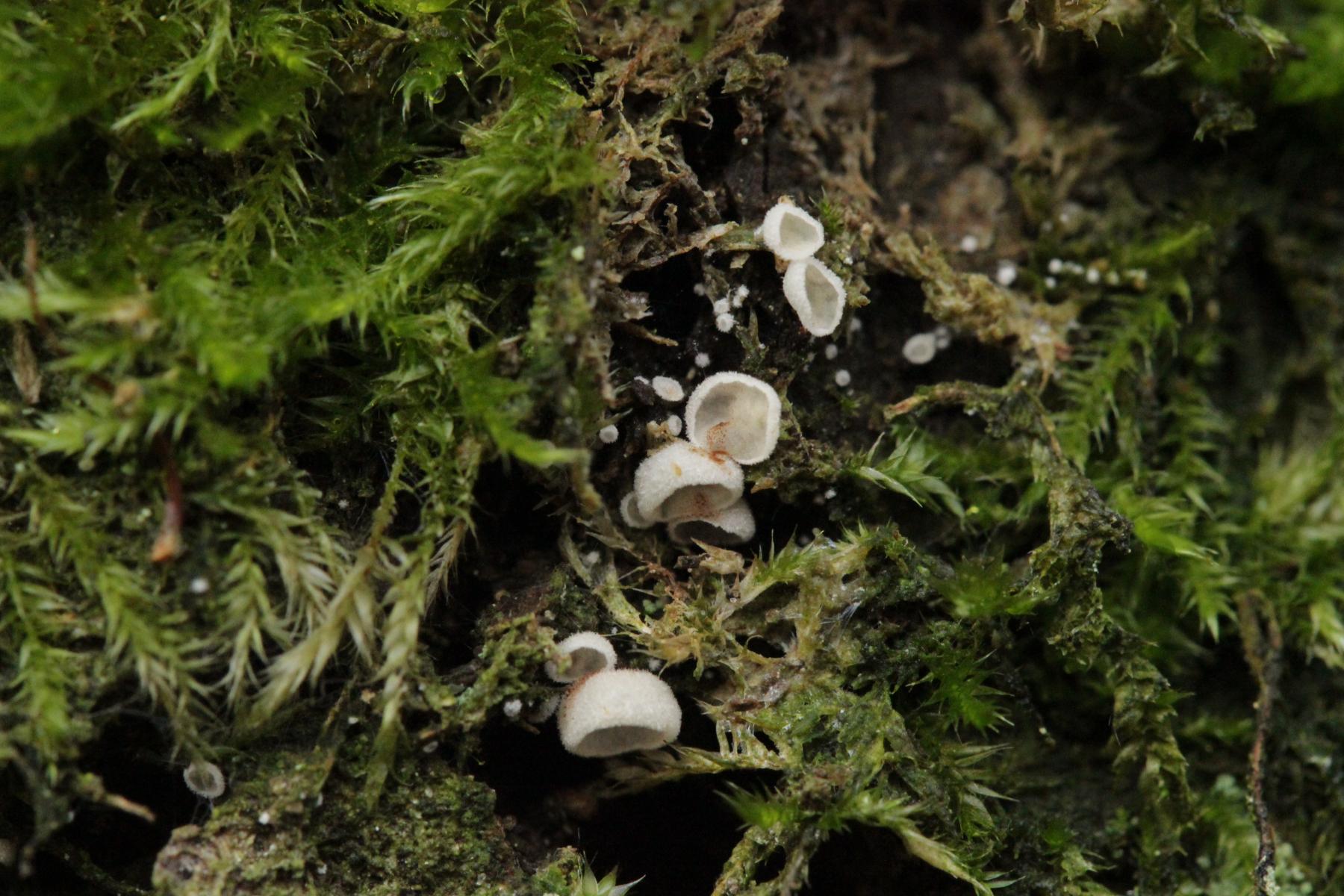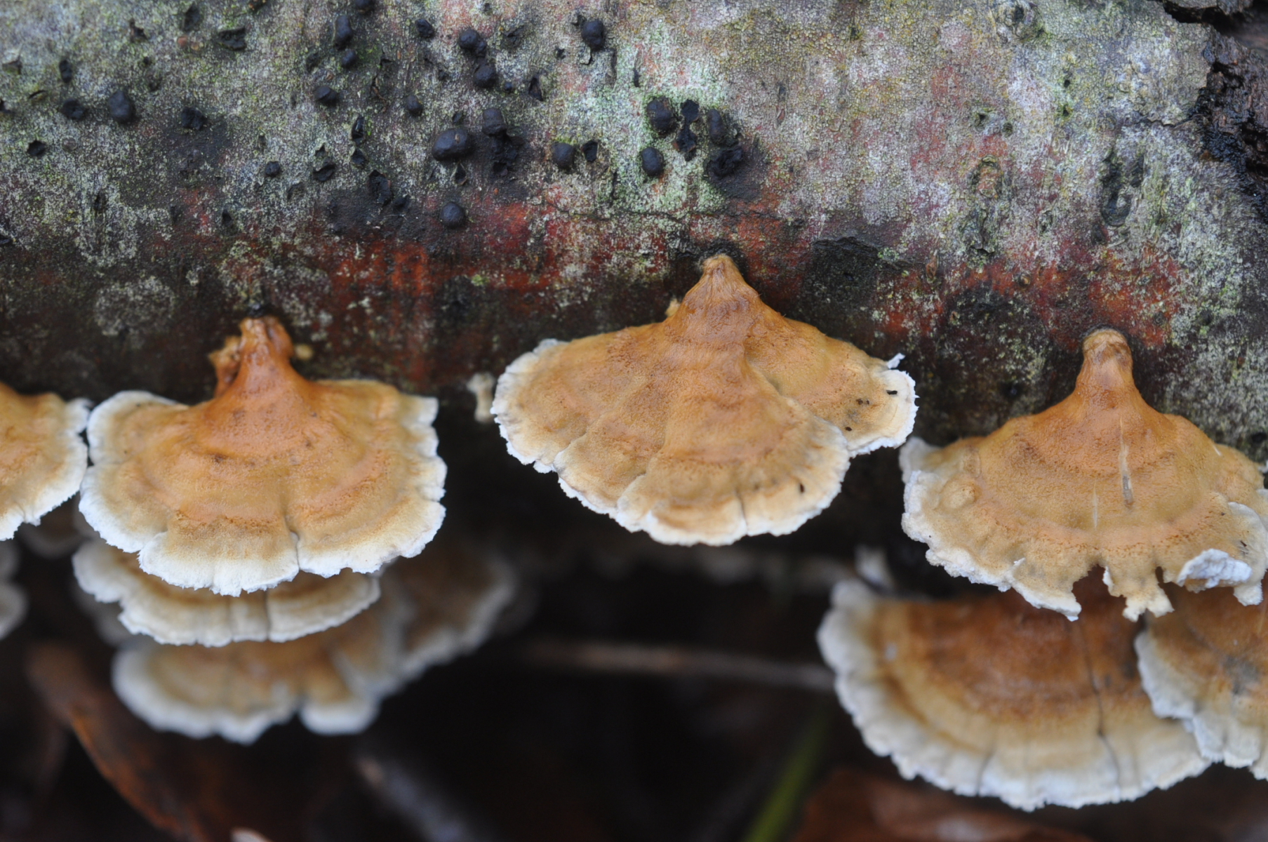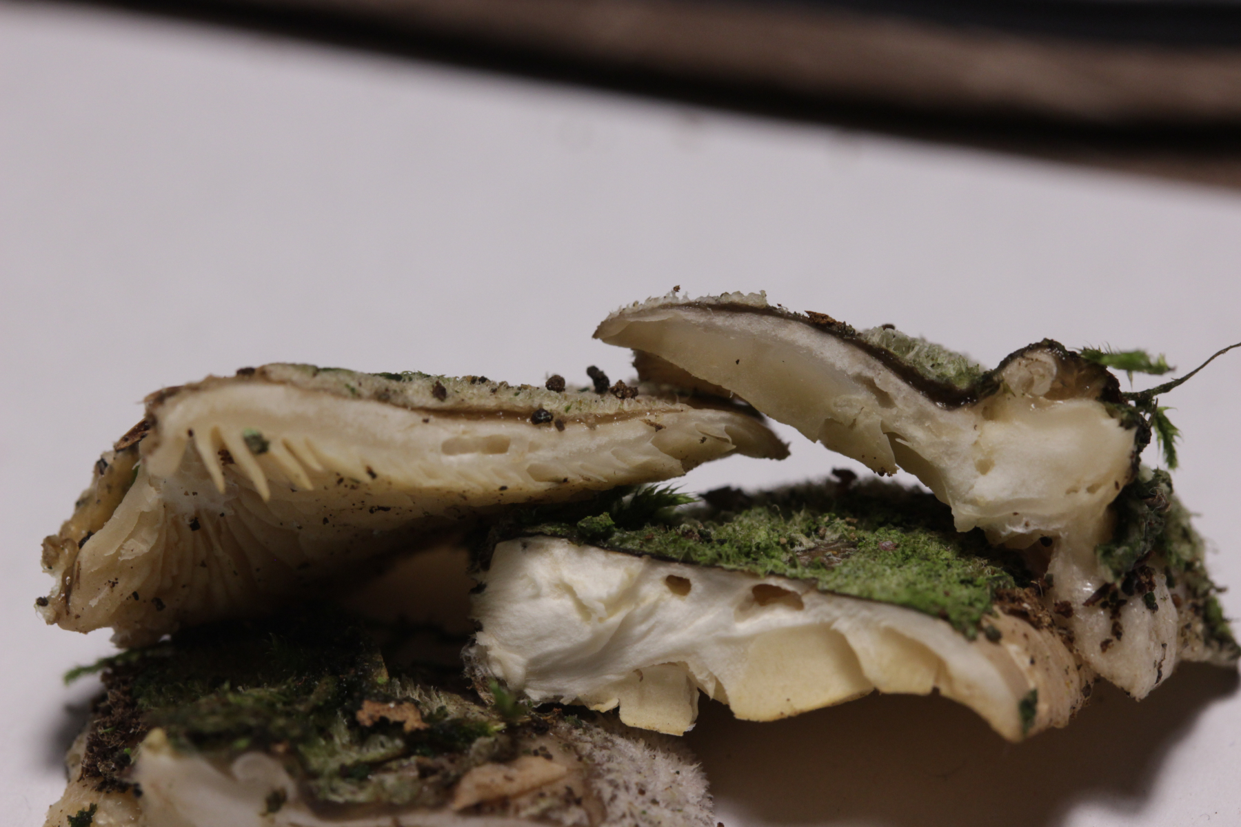 14. Hier bin ich etwas ratlos. Gefunden an Laubholz. Was mich besonders irritiert, ist, daß diese Behaarung auf der Oberseite einen leichten Grünstich wie von Algen hat. Sowas kenne ich sonst nur von Trameten, die ja durchaus länger am Baum kleben als solche zarten Fruchtkörper hier.