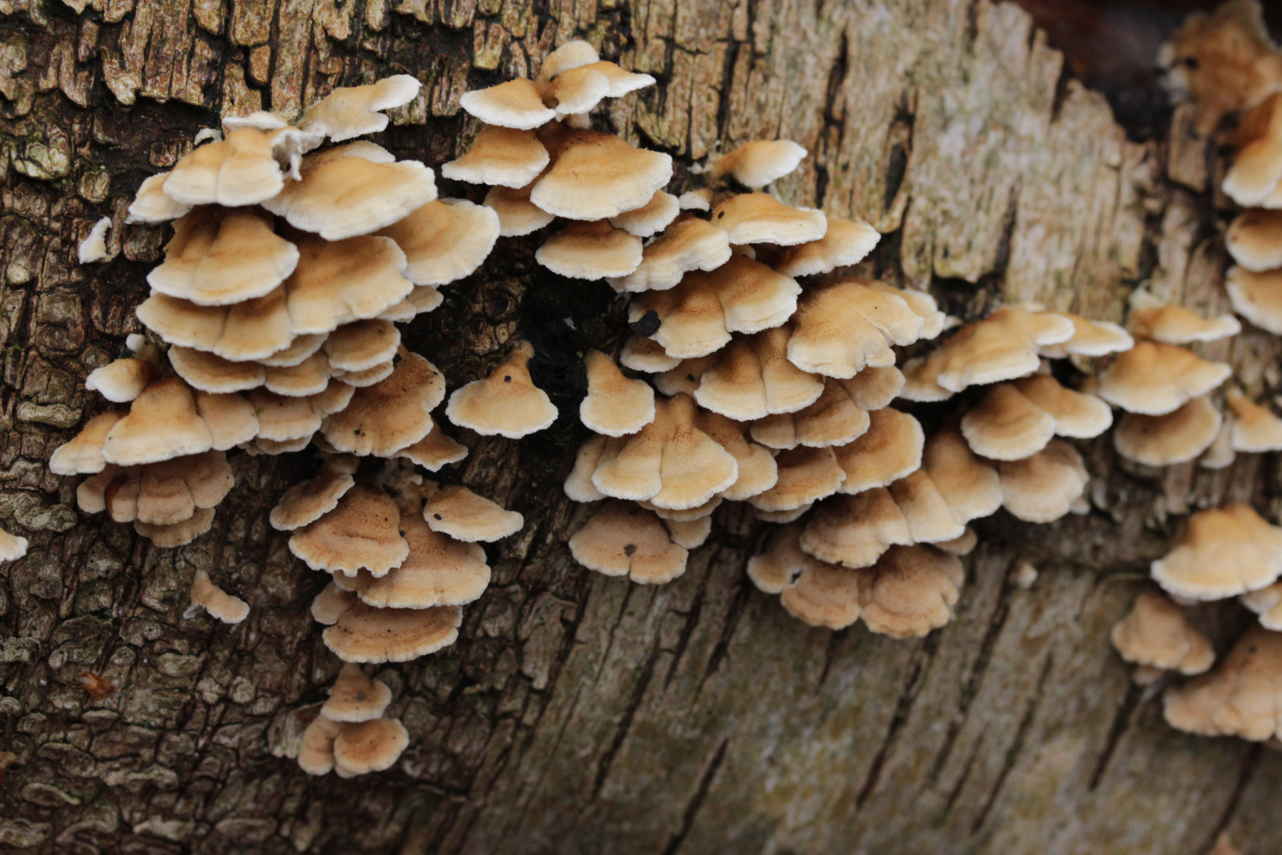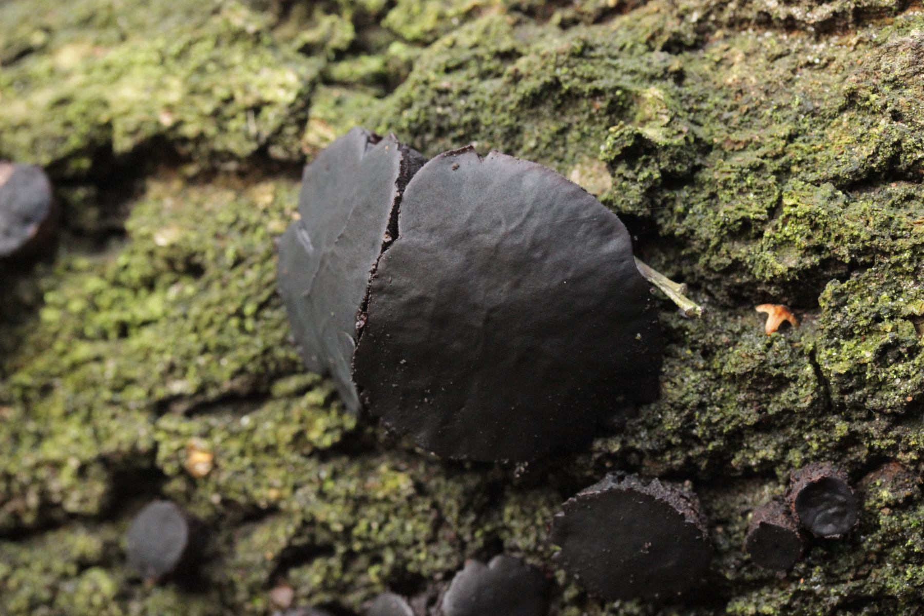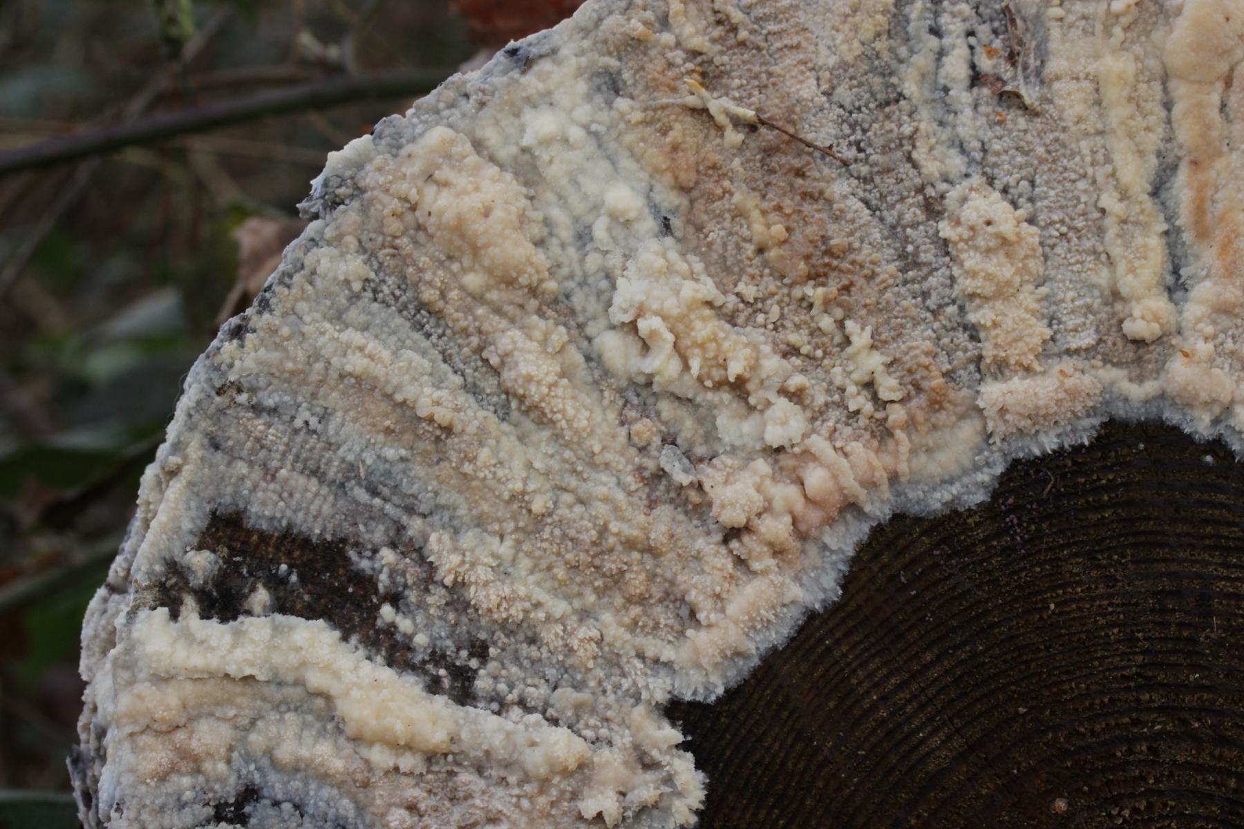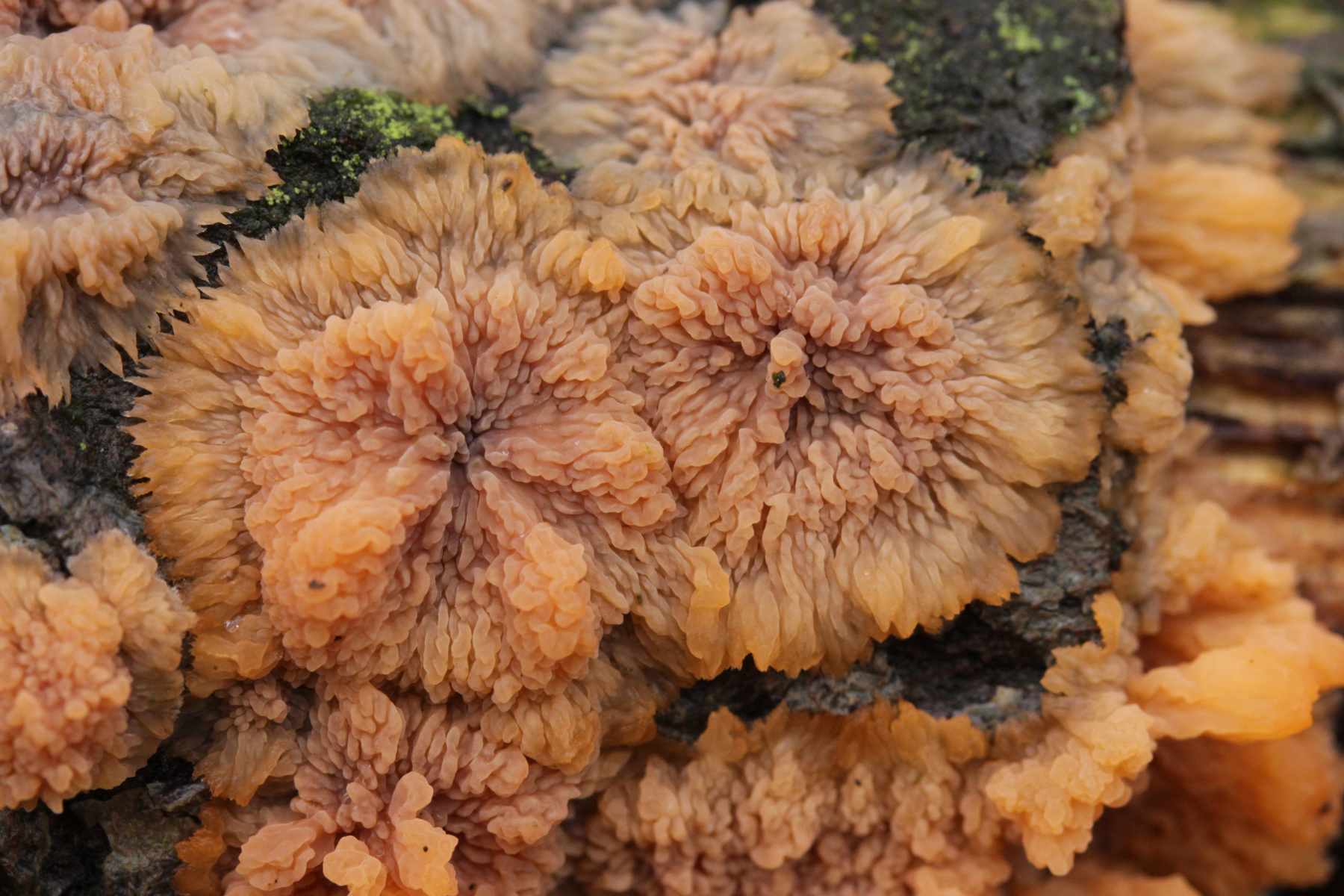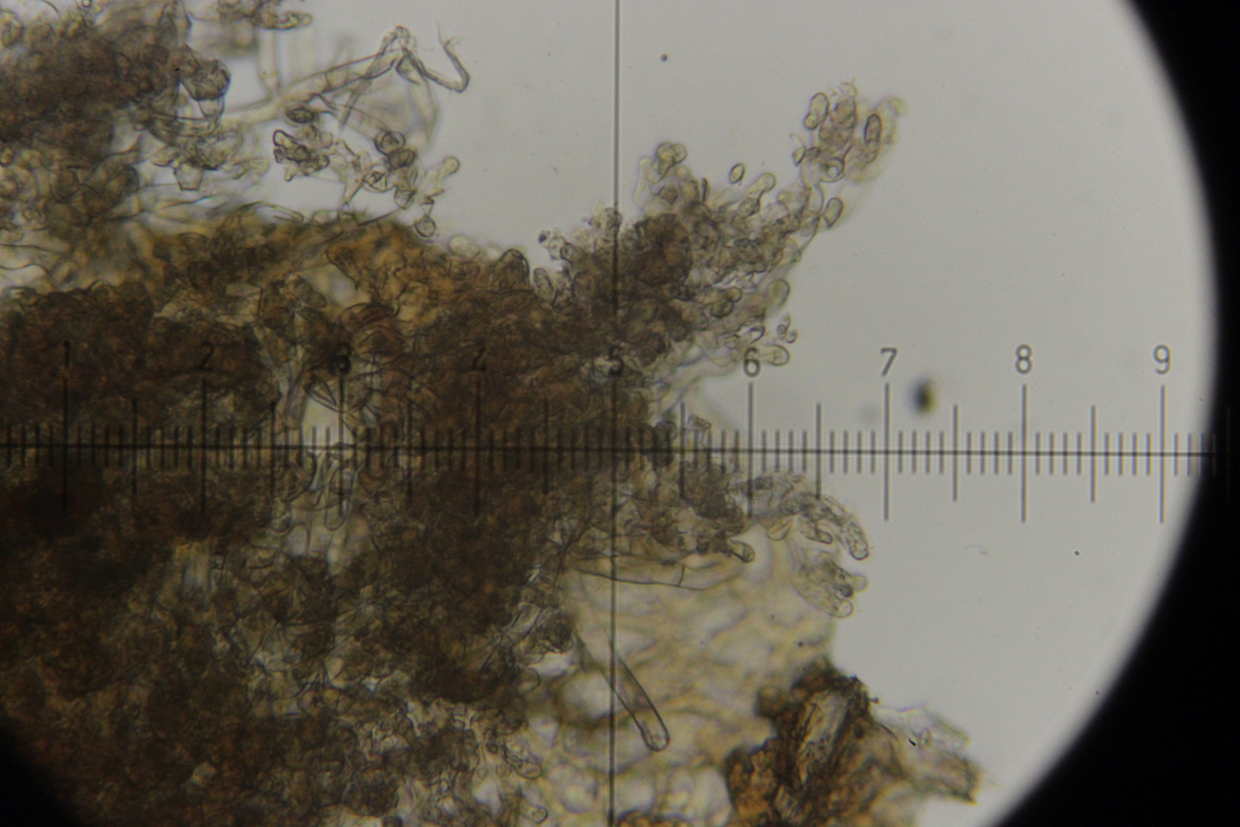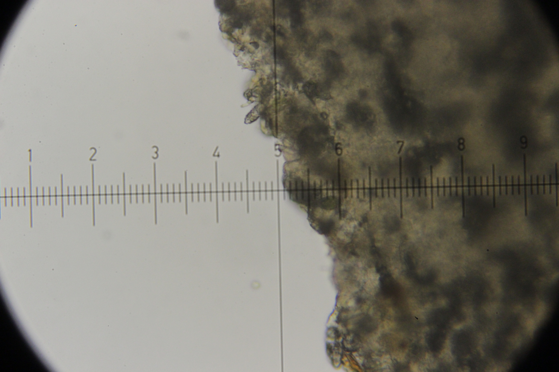14. Hier bin ich etwas ratlos. Gefunden an Laubholz. Was mich besonders irritiert, ist, daß diese Behaarung auf der Oberseite einen leichten Grünstich wie von Algen hat. Sowas kenne ich sonst nur von Trameten, die ja durchaus länger am Baum kleben als solche zarten Fruchtkörper hier.