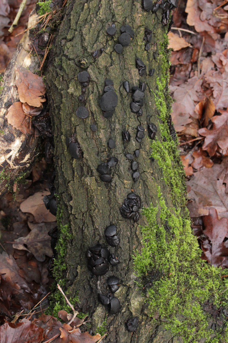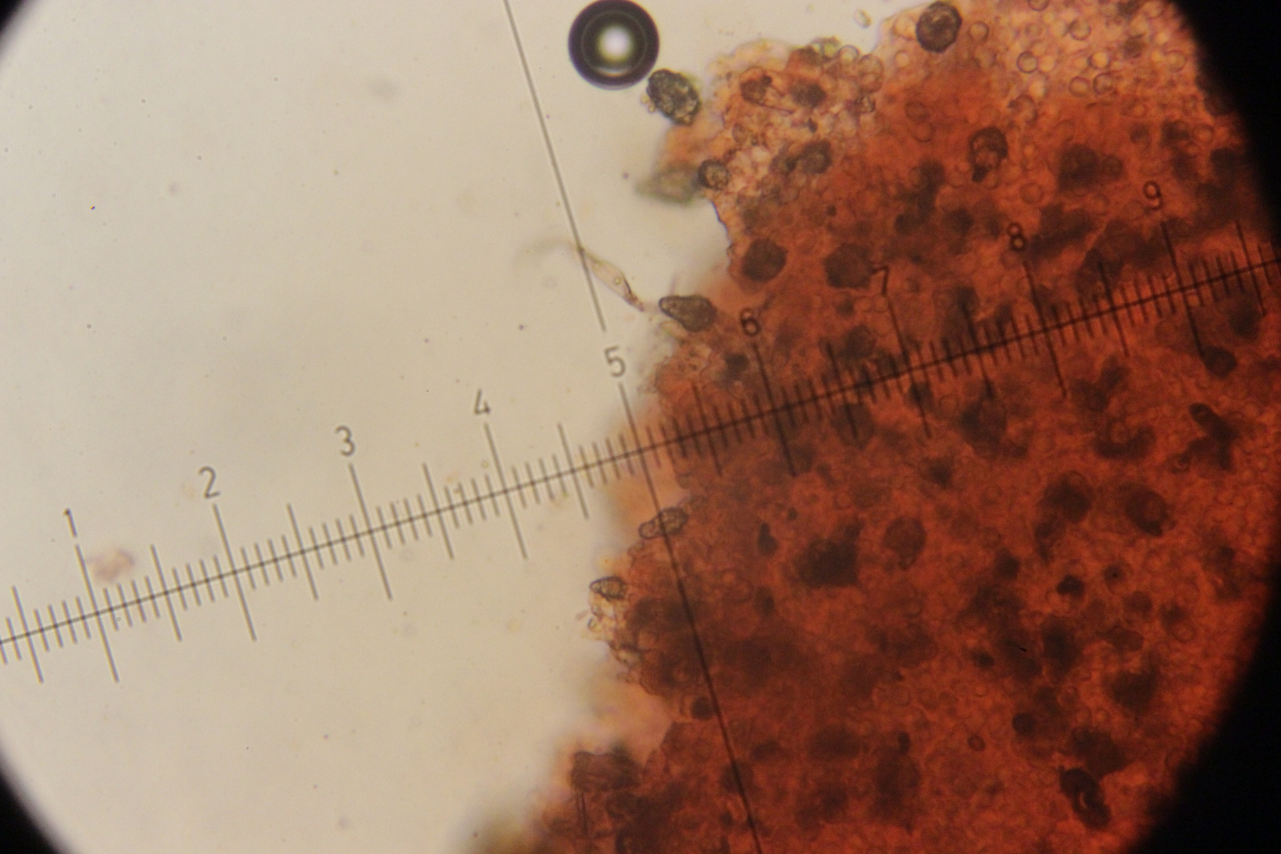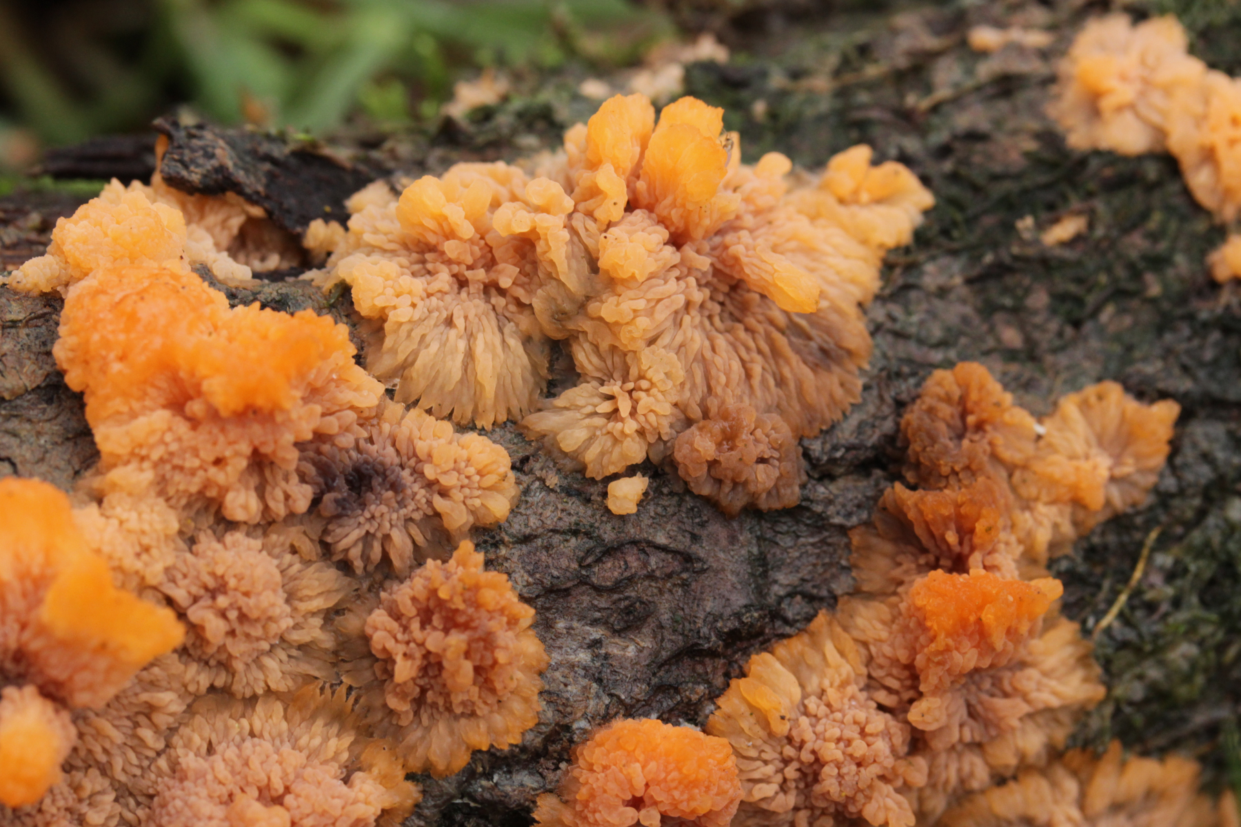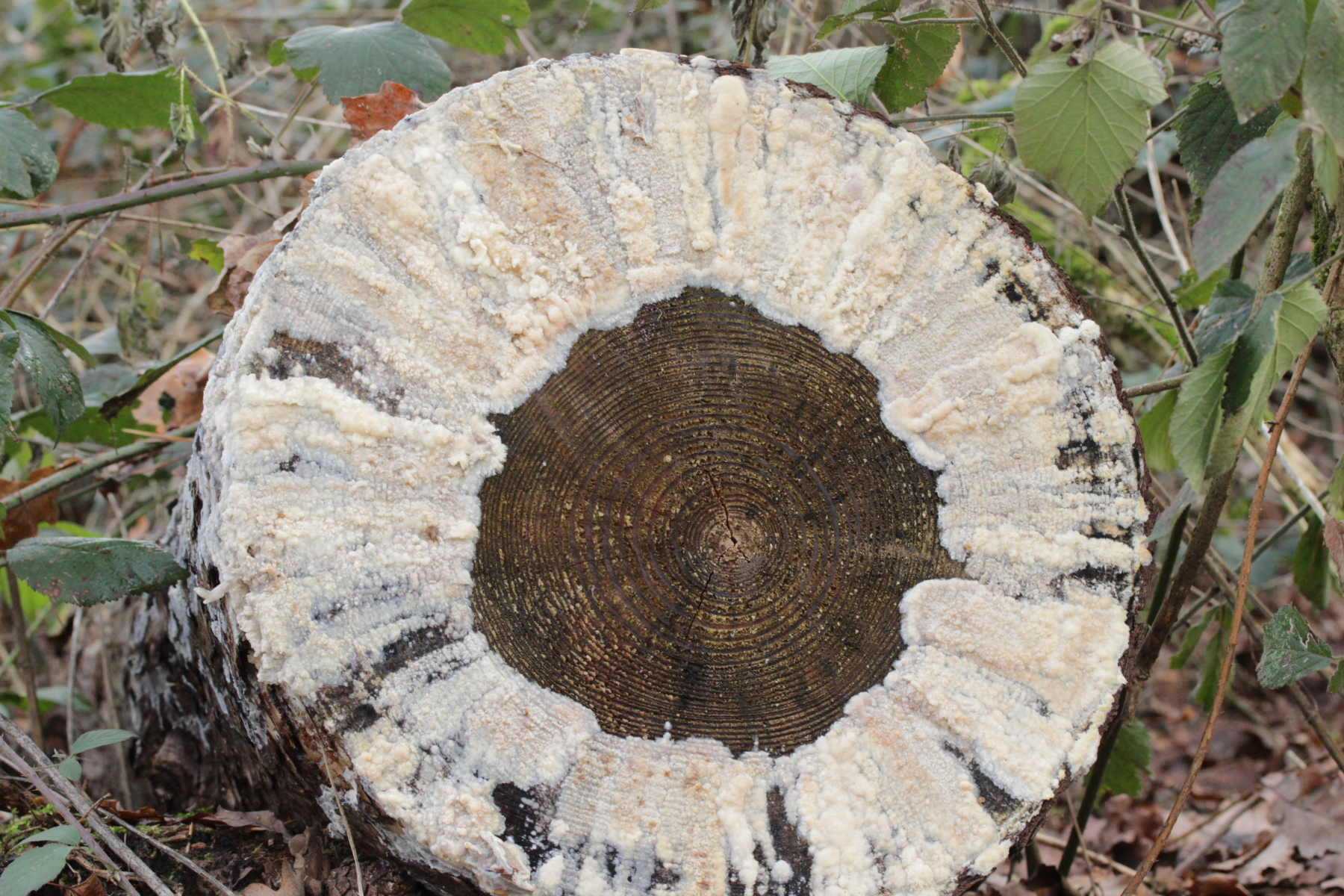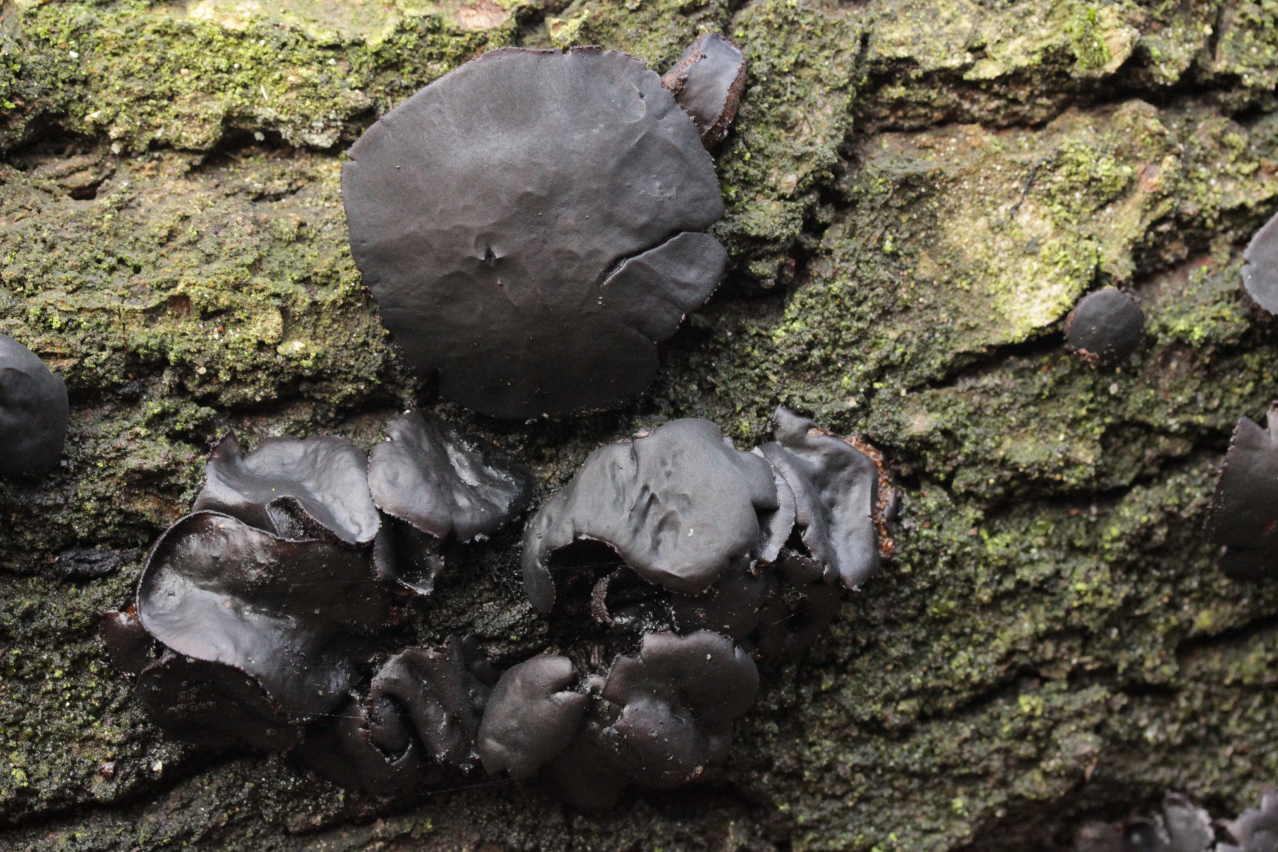 14. Hier bin ich etwas ratlos. Gefunden an Laubholz. Was mich besonders irritiert, ist, daß diese Behaarung auf der Oberseite einen leichten Grünstich wie von Algen hat. Sowas kenne ich sonst nur von Trameten, die ja durchaus länger am Baum kleben als solche zarten Fruchtkörper hier.
