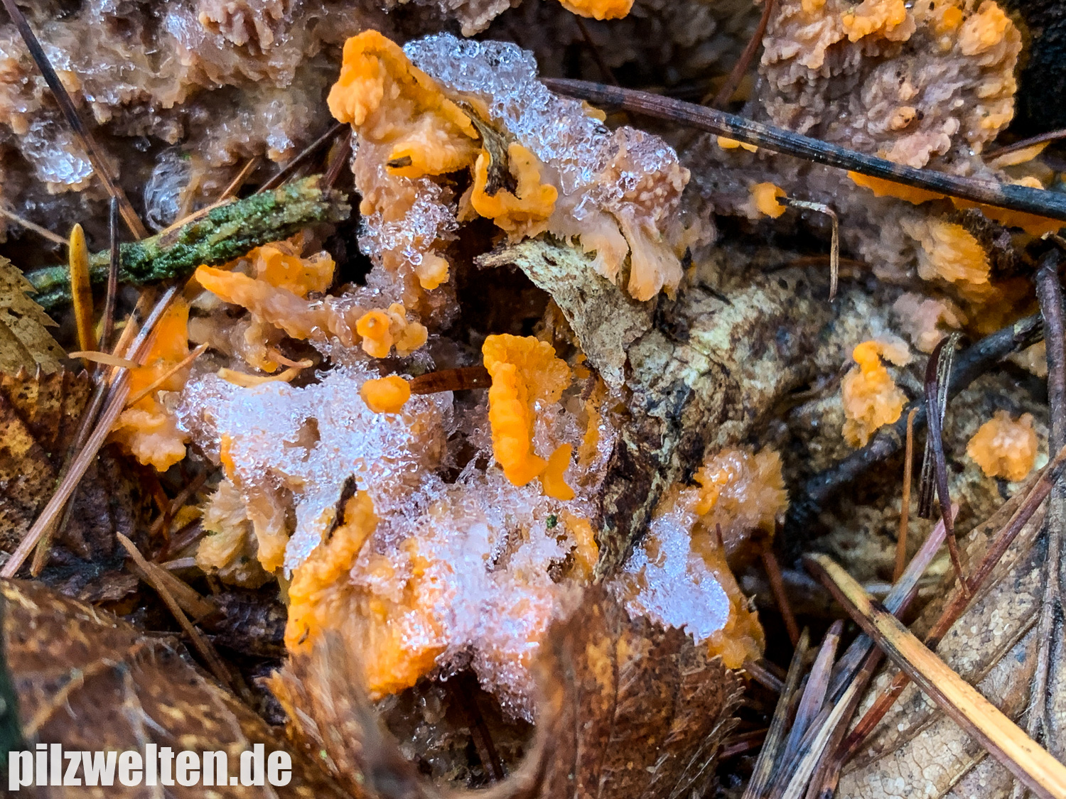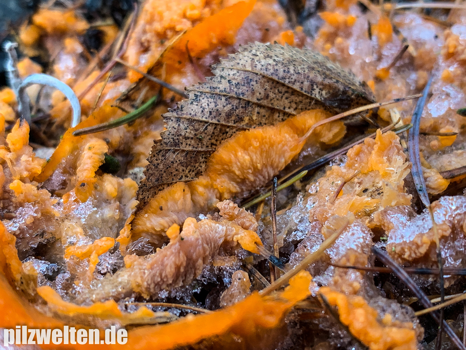 Die Konsistenz lässt sich am Besten als "gummiartig" beschreiben. Das könnte aber auch durch den leichten Frost gekommen sein, aber vielleicht ist es ja doch kein Schleimpilz? Weitere Bilder: