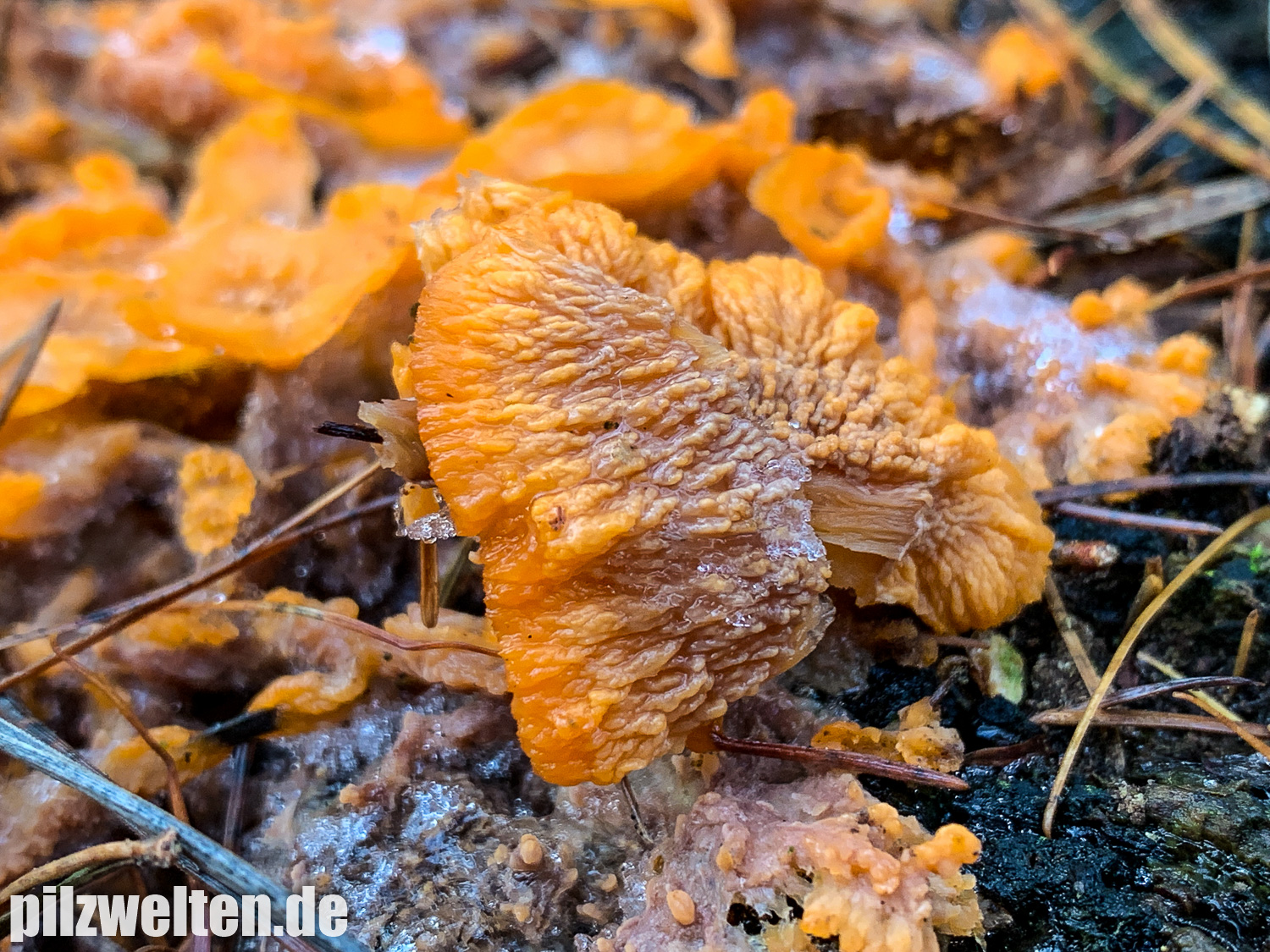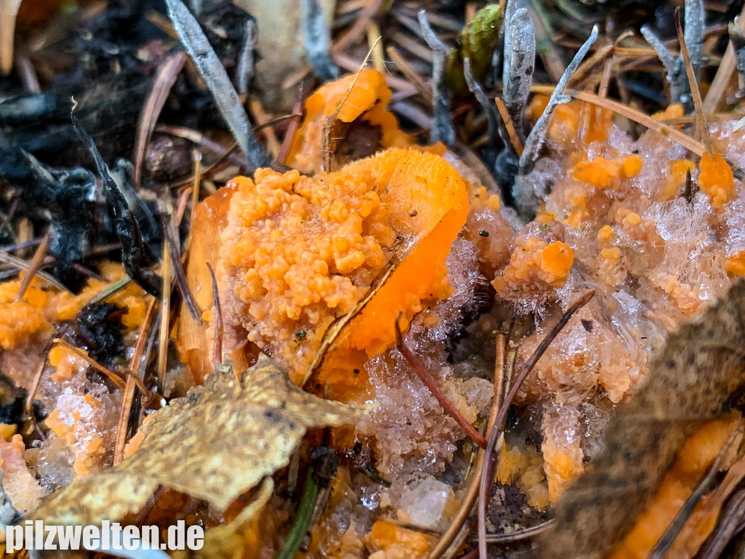 Während die Oberfläche die Pilzes relativ glatt und leuchtend Orange war, sah die Unterseite so aus: