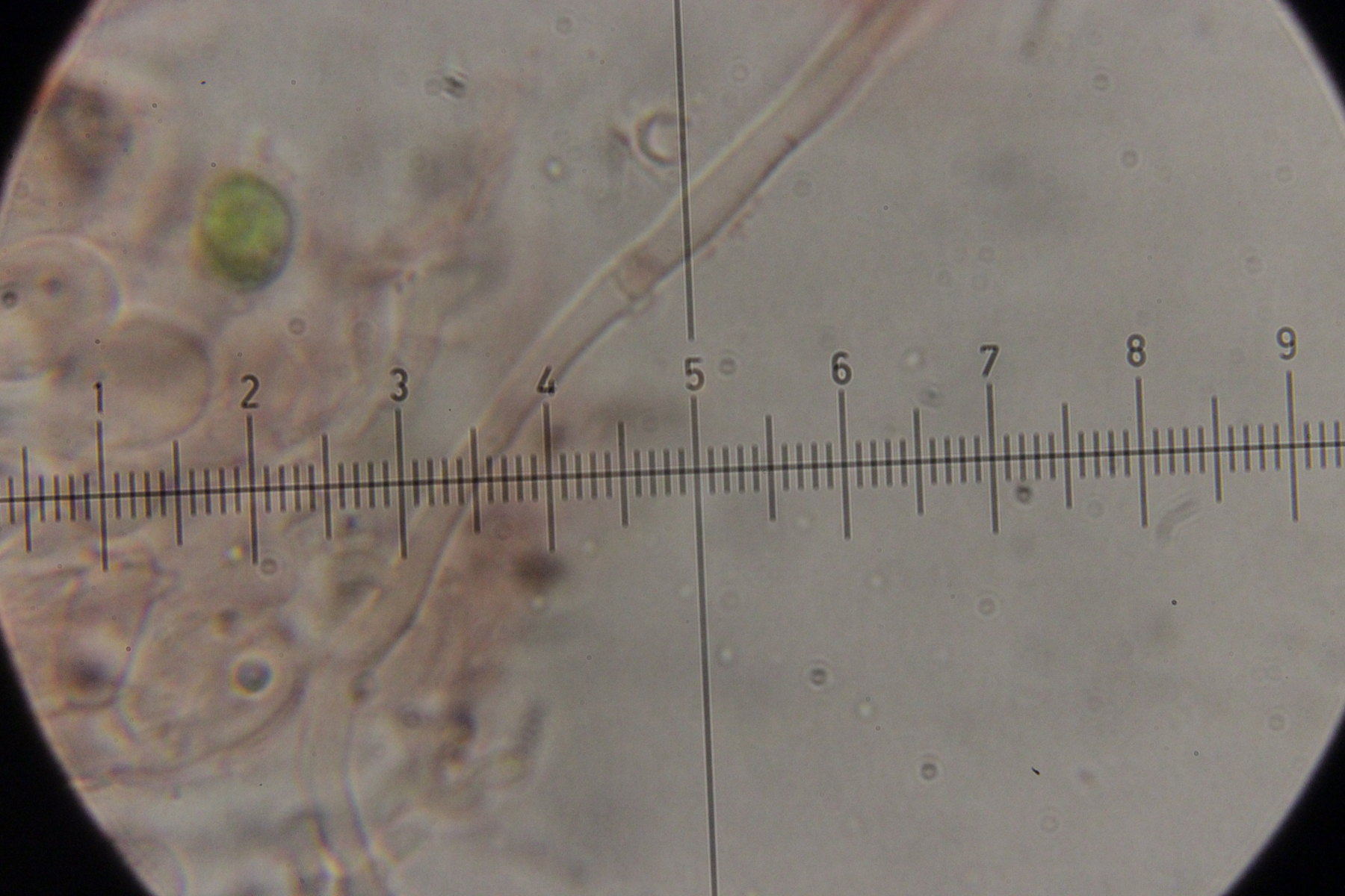 Und noch mal in Kongorot mit etwas KOH dazu. Hier meine ich Schnallen zu erkennen, ansonsten waren der Pilz aber eher schnallenlos.