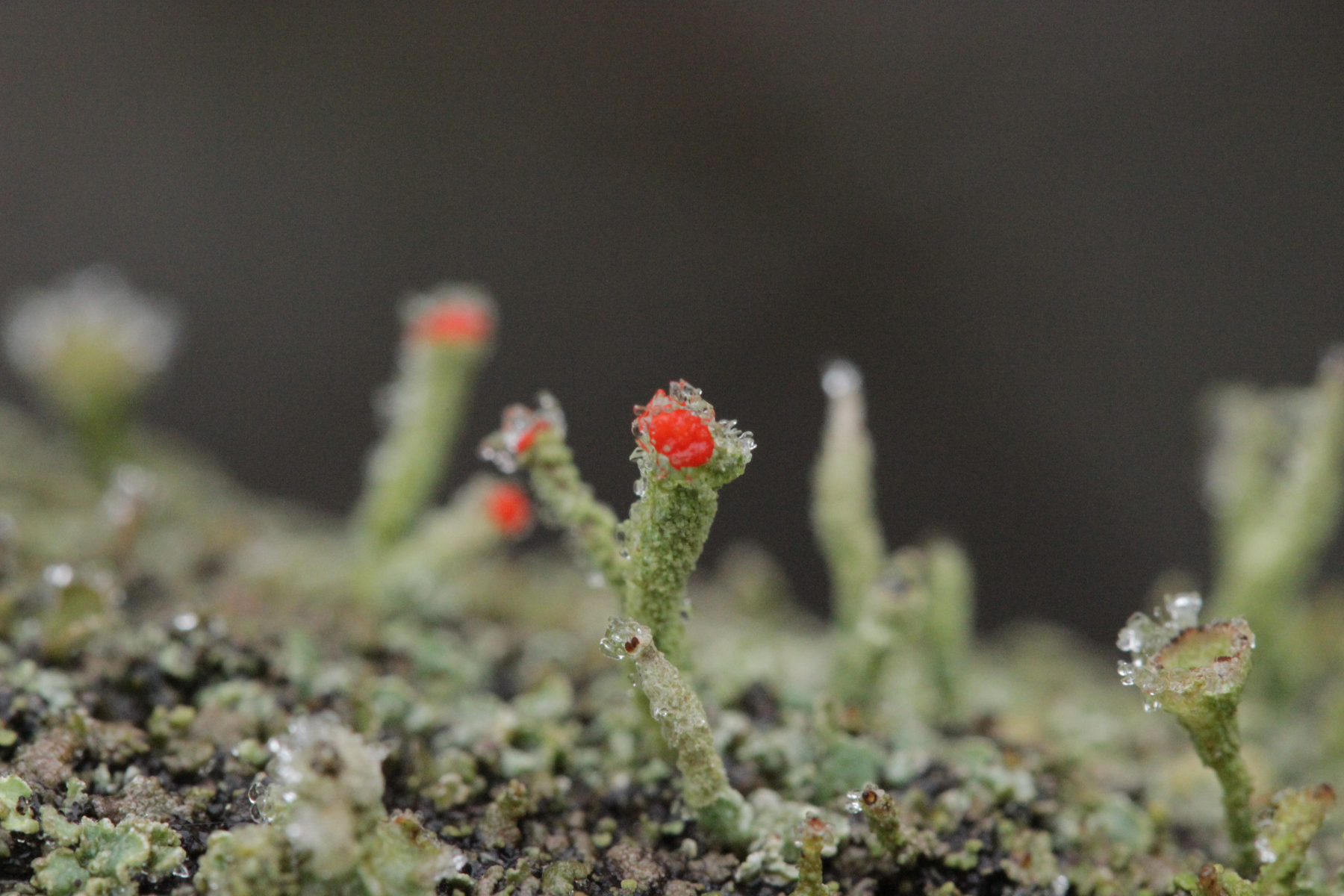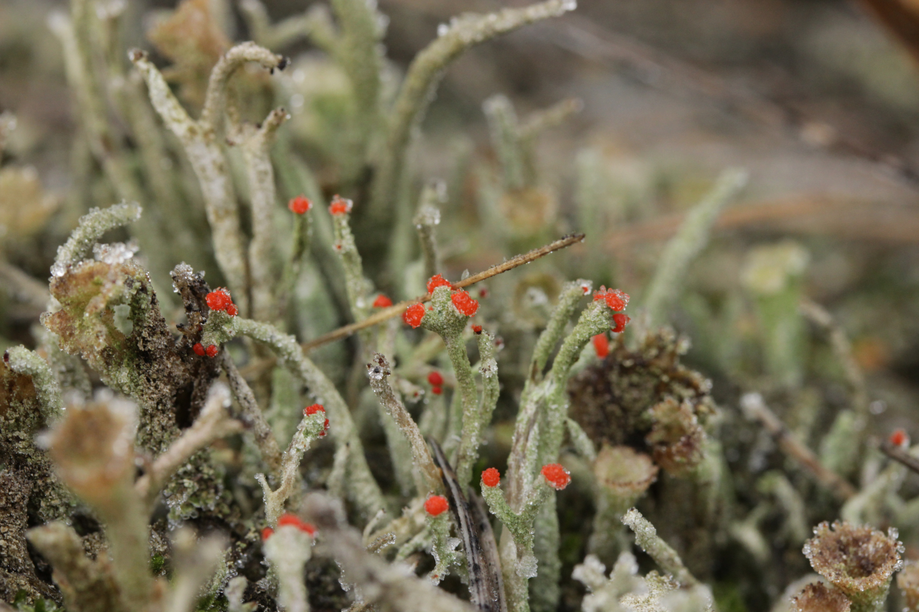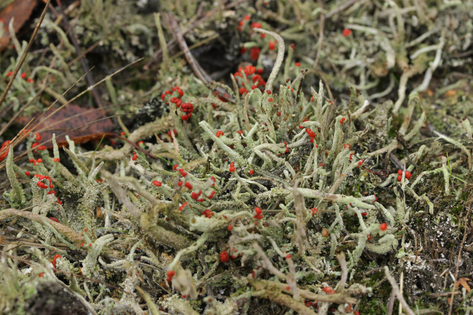 10. Cladonia sp. Als ich auf dem Boden kniete um die Flechten zu fotografieren, kamen zwei ältere Frauen vorbei und fragten, was ich da fotografieren würde. Ich verwies auf die Flechten und war sehr erstaunt, als die beiden mir sagten, dafür würden sie sich auch interessieren. Sie hatten die rotfrüchtigen Cladonien aber nicht gefunden und waren ganz entzückt, als ich sie ihnen zeigen konnte.
