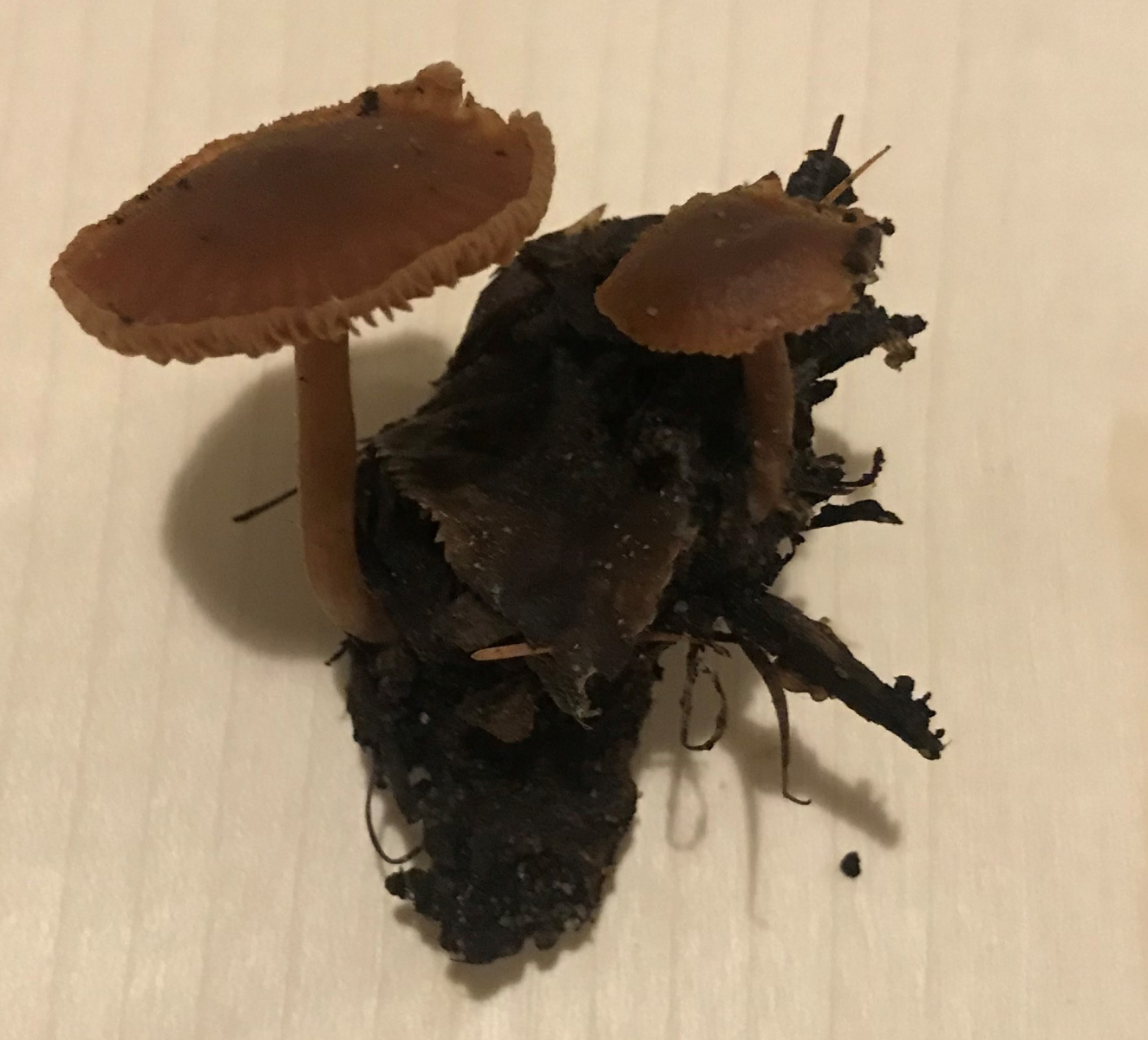 Sind das tatsächlich die selben Pilze? Farblich kommen die bei mir jetzt so total anders an. Bei solchen ziemlich dunklen, komplett braunen Pilzen würde ich nie aan Tubaria denken. Sporenpulver erscheint dann auch zu dunkel, aber eben mitd er Einschränkung, daß ich die hier jetzt so gar nicht mit denen im Starbeitrag unter einen Hut bringen kann. Das hier sieht viel mehr nach einem Olivschnitzling (Simocybe), einem Faserling (Psathyrella) oder einem der diversen anderen, richtig dunkelsporigen Dunkelsporer aus.