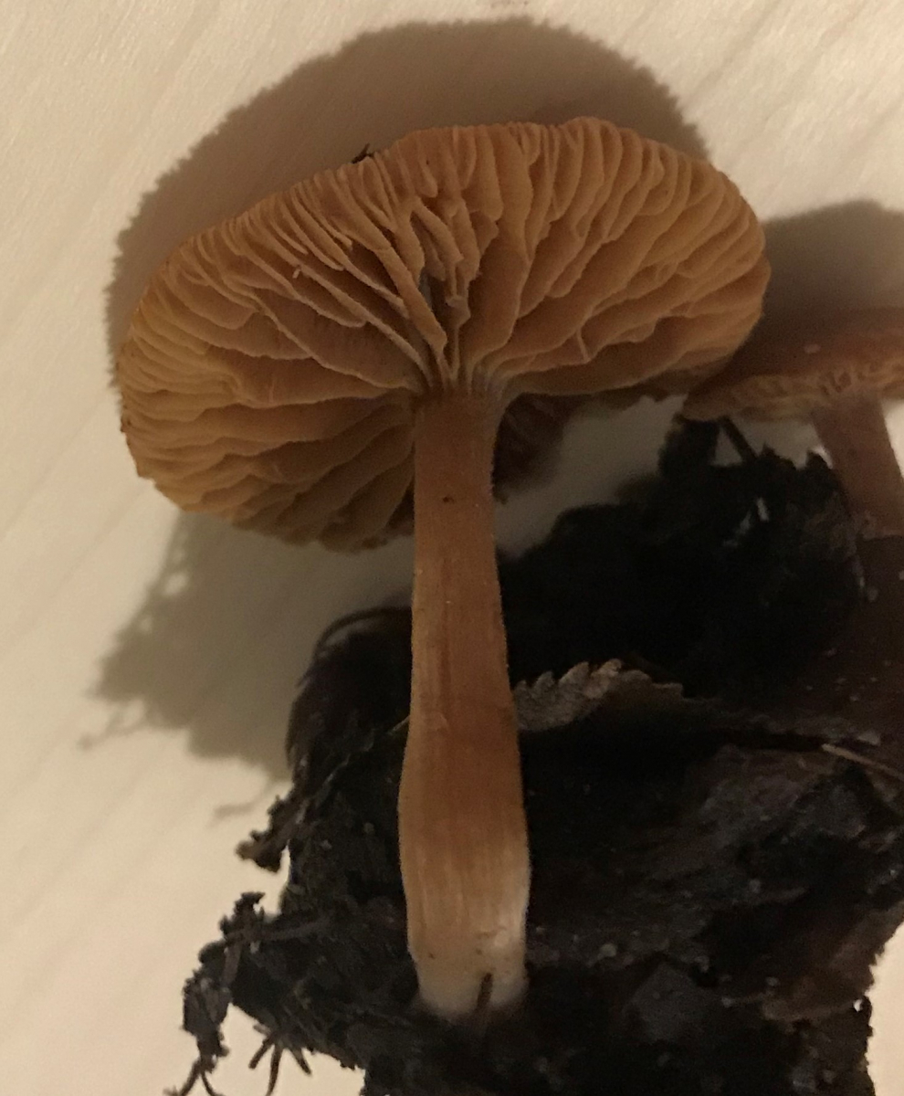 Die neuen Bilder sind doof. Ich habe die Pilze im dunkeln mit der Taschenlampe geerntet und dann blöderweise in der Küche unter Kunstlicht auf weißem Untergrund fotografiert. Sie stehen unter einem alten Apfelbaum auf einer 30x30cm großen Fläche und ich gehe sehr stark davon aus, dass es die gleichen sind wie im Startbeitrag. Im Prinzip müsste ich die Sporen mal unters Mikro werfen.