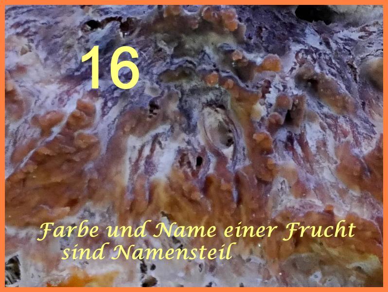 Außer Nr.5: "Kuhmaul" (5P), Nr.9: "Parasol" (5P) und Nr.9B: "Grüni's Ederseeschnecke" (-) hab ich bis jetzt alles richtig. Die Falschen müssen tatsächlich, wie ich es dachte, im letzten Viertel des Rätsels liegen.