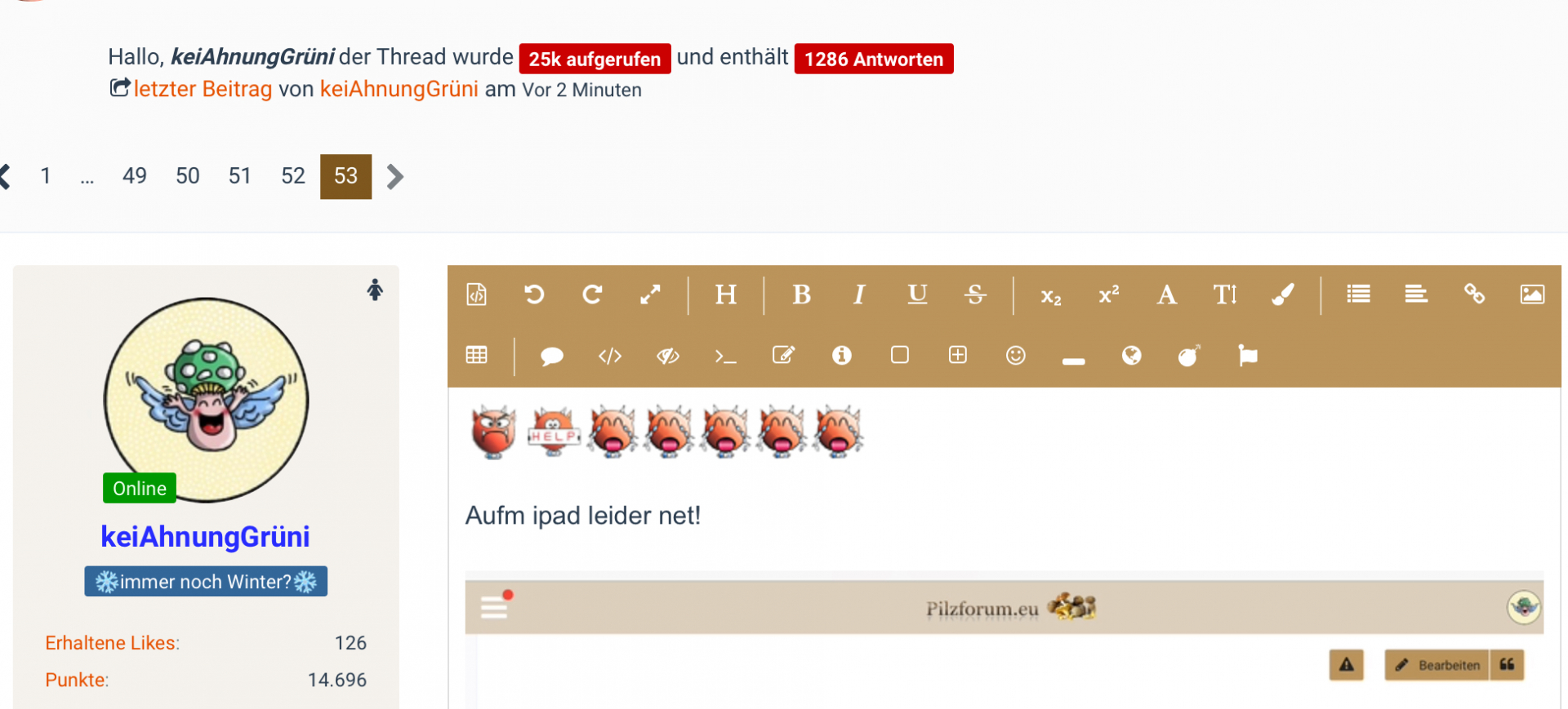 Es gibt 1.328 Antworten in diesem Thema, welches 281.586 mal aufgerufen wurde. Der letzte Beitrag () ist von Habicht (†).