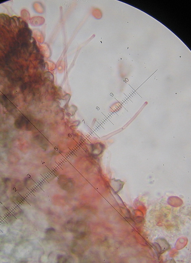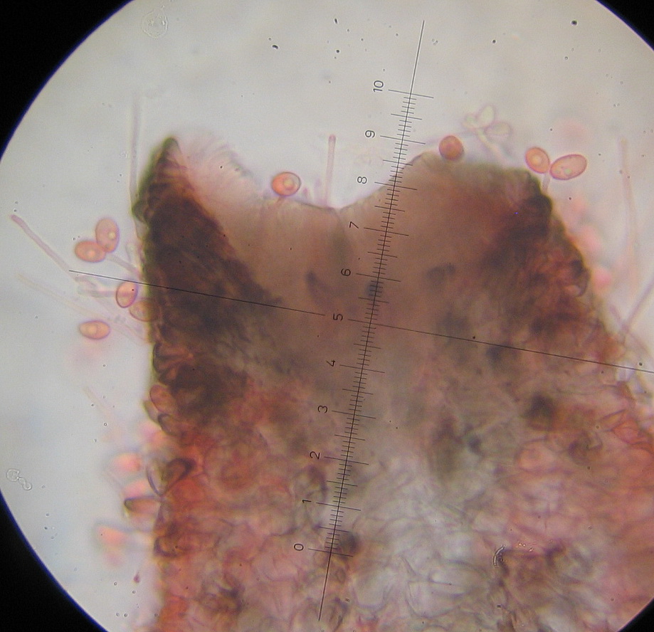 Sporen 8-9 x 4-5µ eiförmig, glatt. mit Guttulen