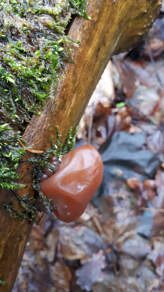 moin! Heute im Buchenwald gefunden. Bin mir fast sicher: wieder ein Judasohr. Also ich finde den Pilz öfter auf Buche als auf Holler. Lg