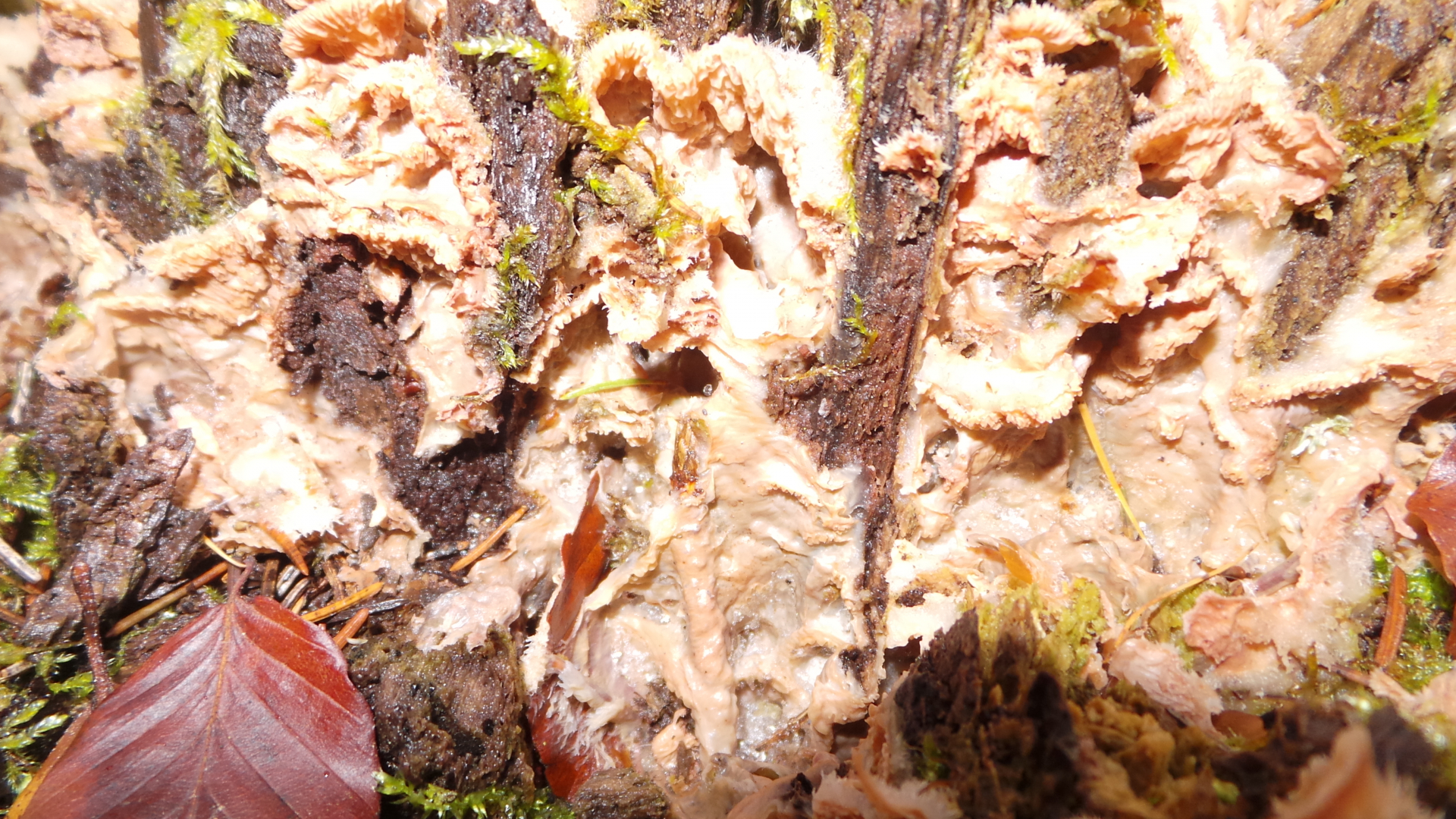 Rauchblättriger Schwefelkopf (Hypholoma capnoides), Schildflechte (Peltigera spec.), >Gallertfleischiger Fältling< und >FiZaRü<.Lg; Pablo.