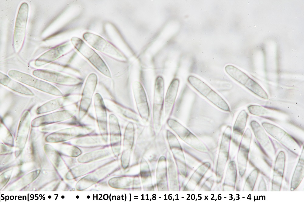 Diese Konidien besitzen an den Sporenenden 3-4 Anhängsel (maximal 20 Mikrometer lang) und sind im Alter einfach septiert.