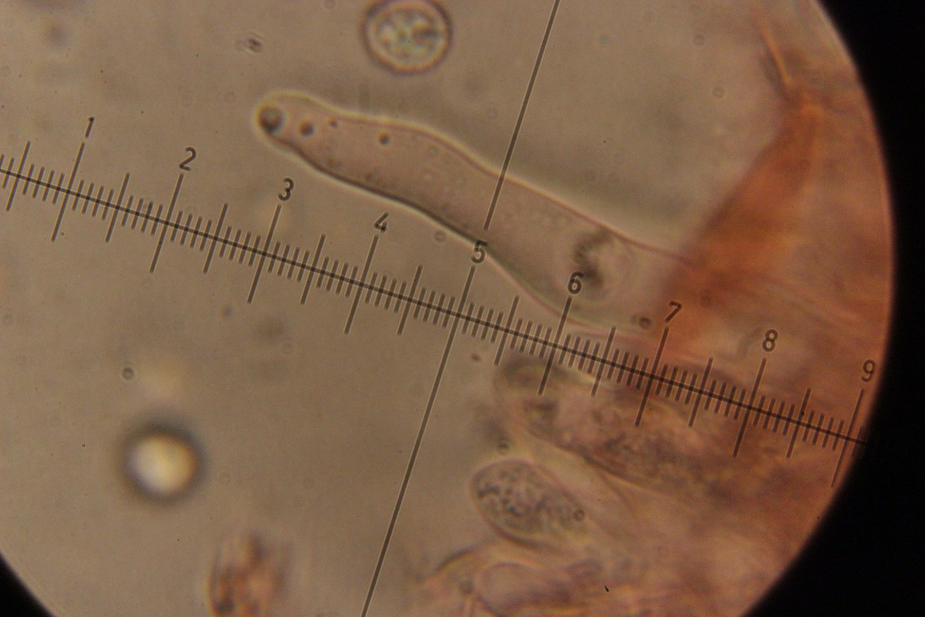 Und wenn man die unters Mikroskop legt, sieht man vereinzelt dann Dinge, die schon nach Zystiden aussehen