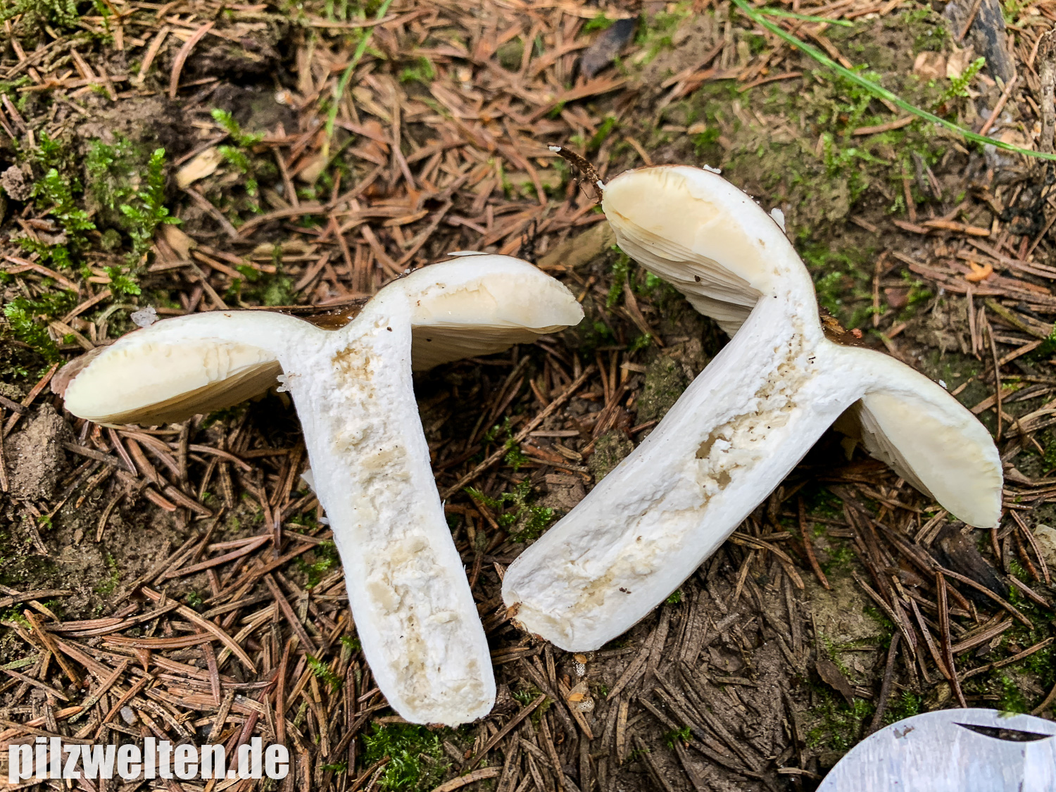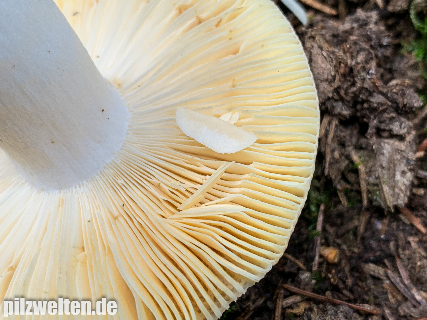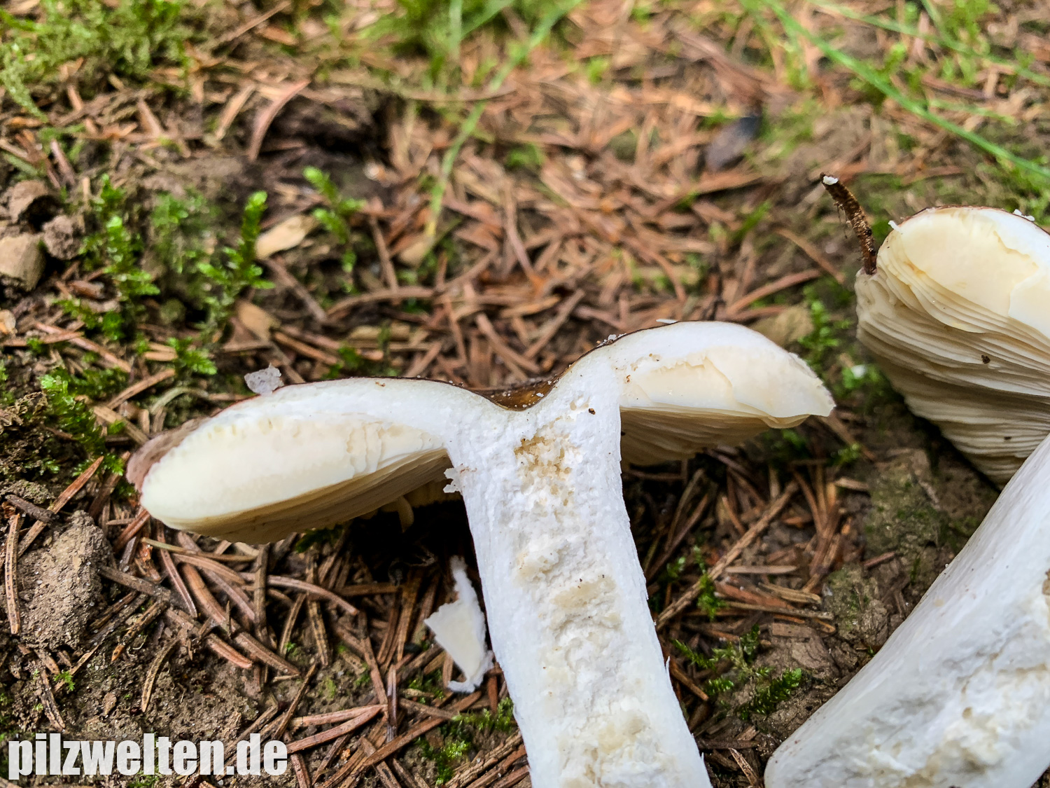 Lamellen: Spröde, bei Berührung splitternd, weißlich bis cremefarbend