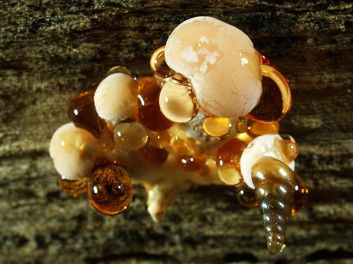 Der Pilz war noch recht jung, der größte Hut war , wenn ich mich richtig erinnere kaum 3 cm groß. Er hat sich dann leider nicht mehr weiter entwickelt, und die Schnecken sind auch gekommen. Im Internet sieht man aber auch bei sehr kleinen Pilzen schon rote Gutationstropfen.