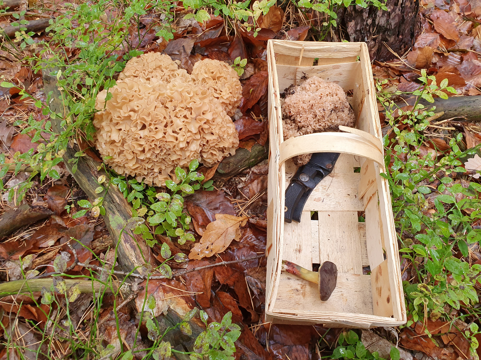 Dazu gab es Krause Glucken, verschiedene Täublinge, Unmengen Kremplinge, Zapfenrüblinge und Rettichhelmlinge…