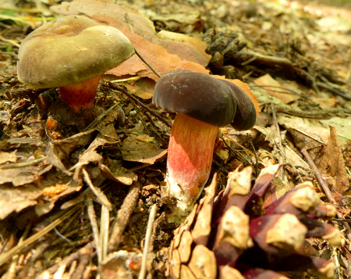 Filzröhrlinge waren dort ebenfalls zahlreich, aber alle bis auf zwei Nachzügler schon auf Entfernung erkennbar deutlich drüber, und auch dieses niedliche Pärchen hat den Maden gut geschmeckt.