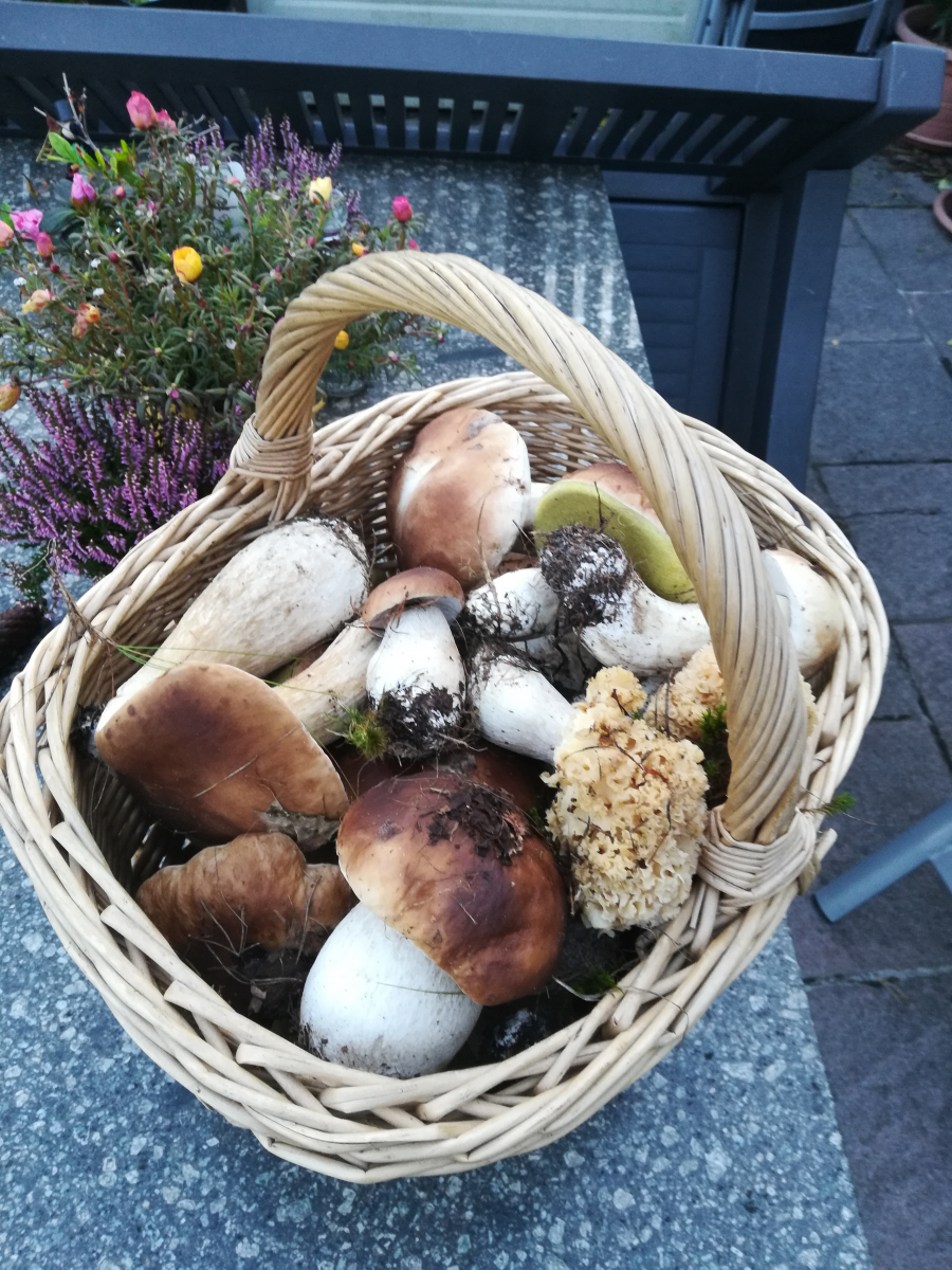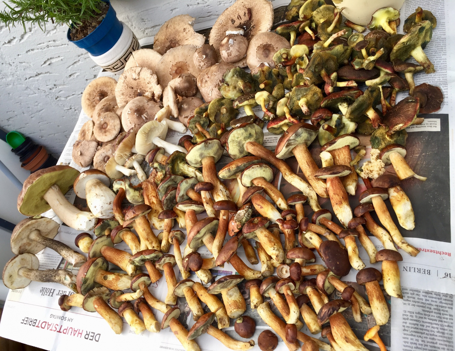 Es gab massenhaft (leider meist gammelige) Rotfußröhrlinge, Maronen vorwiegend im Frühstadium, ein paar wenige aber fantastische Steinpilze, Täublinge, Schirmpilze, wenige Birkenpilze, Waldchampignons, und von den nicht essbaren massenhaft Kremplinge und Fliegenpilze.
