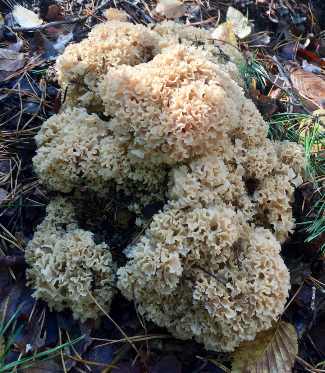 Und dann entdeckte ich tatsächlich eine riesige Krause Glucke am Fuß einer Kiefer. Damit war mein Körbchen prall gefüllt.