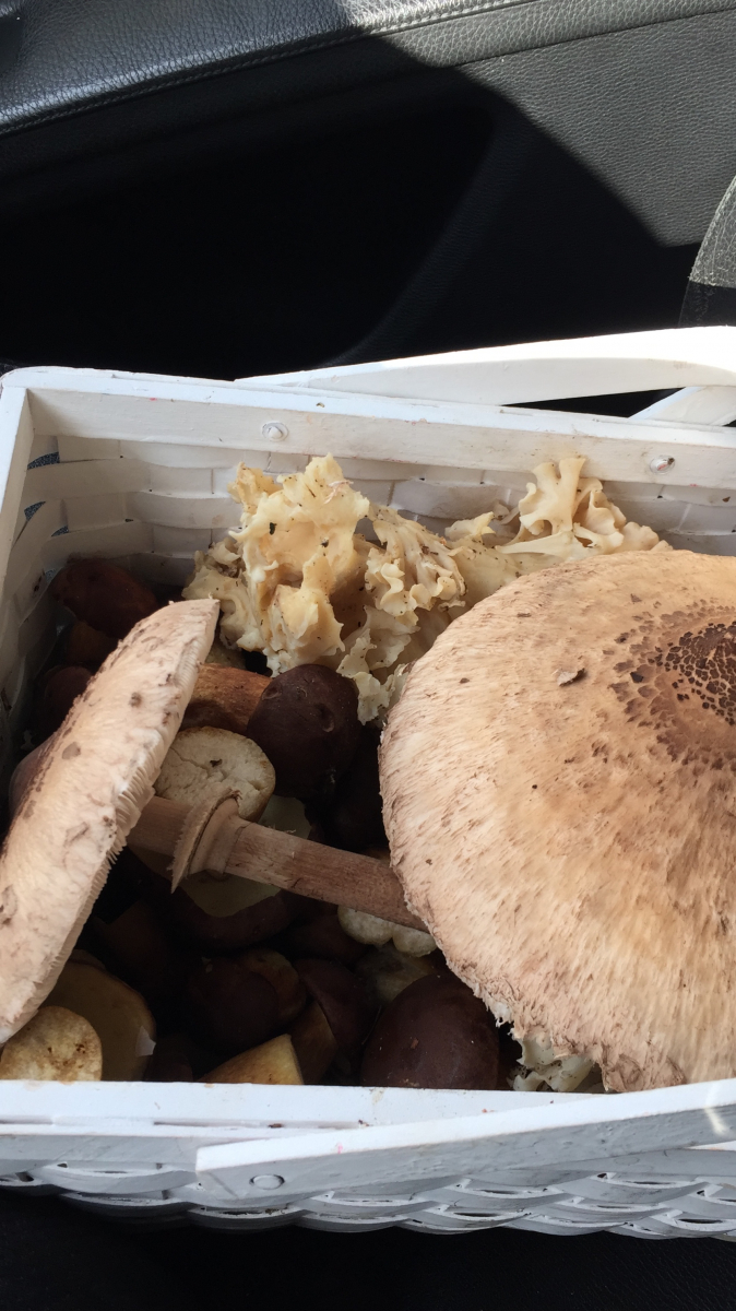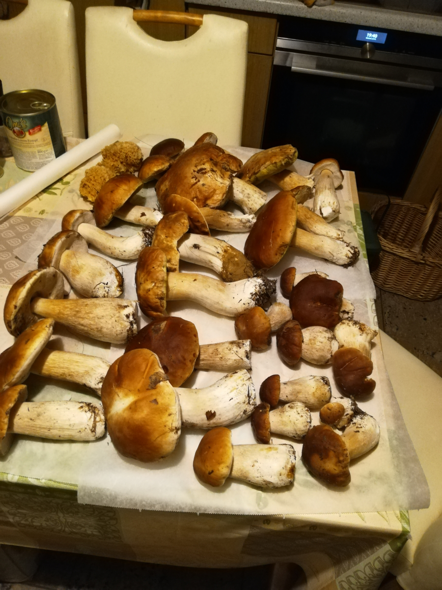 Es gab massenhaft (leider meist gammelige) Rotfußröhrlinge, Maronen vorwiegend im Frühstadium, ein paar wenige aber fantastische Steinpilze, Täublinge, Schirmpilze, wenige Birkenpilze, Waldchampignons, und von den nicht essbaren massenhaft Kremplinge und Fliegenpilze.