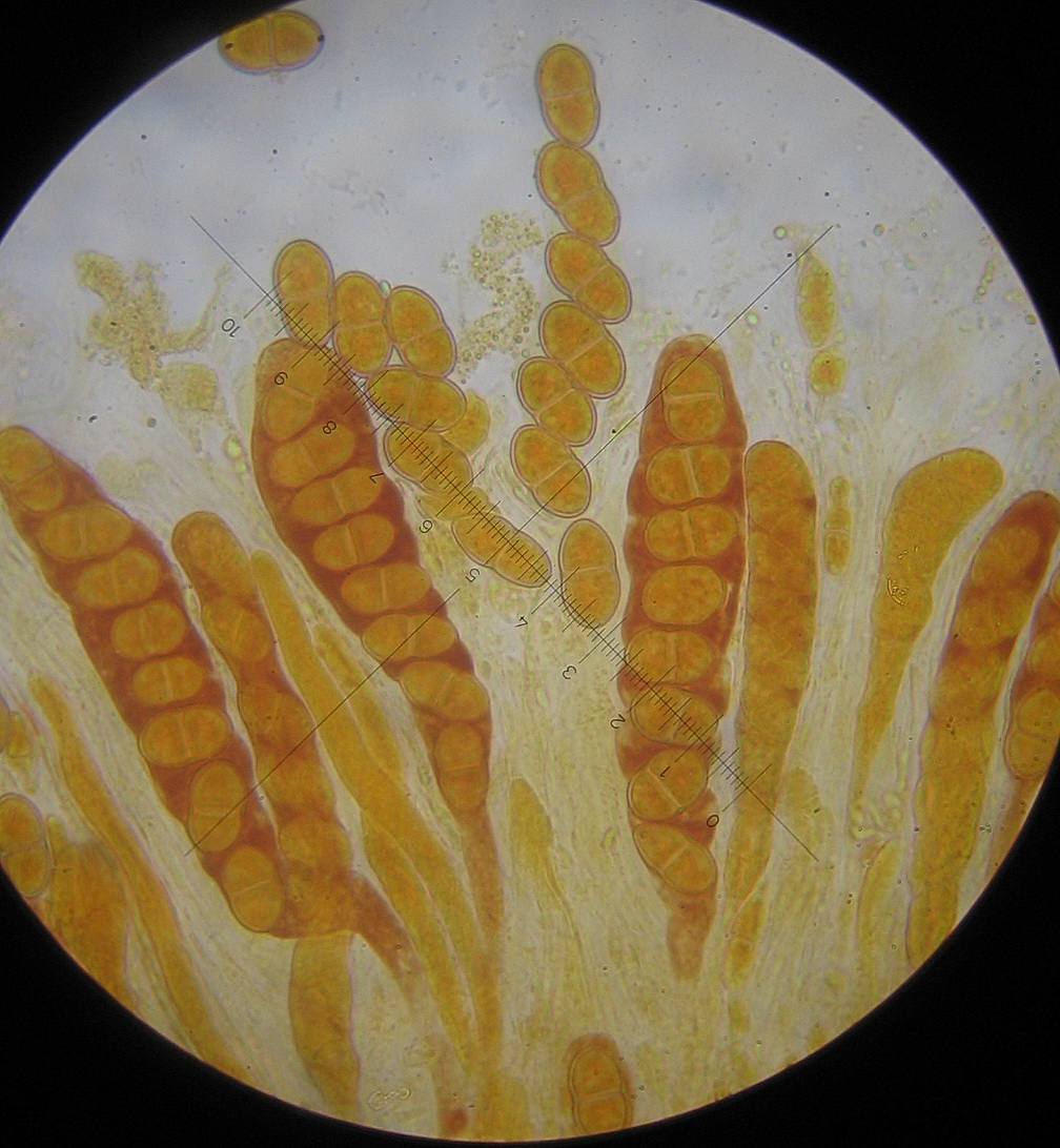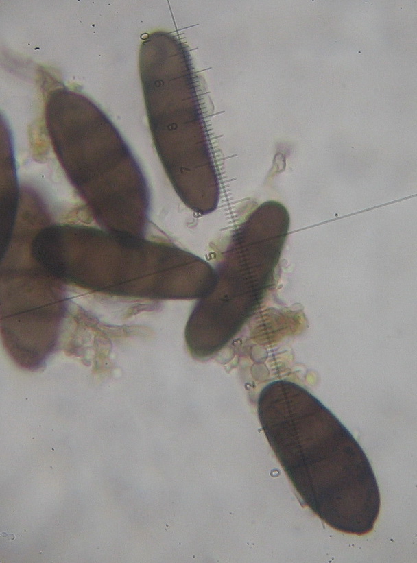 Die Sporen sind sehr unterschiedlich geformt, dickwandig und ebenfalls rau