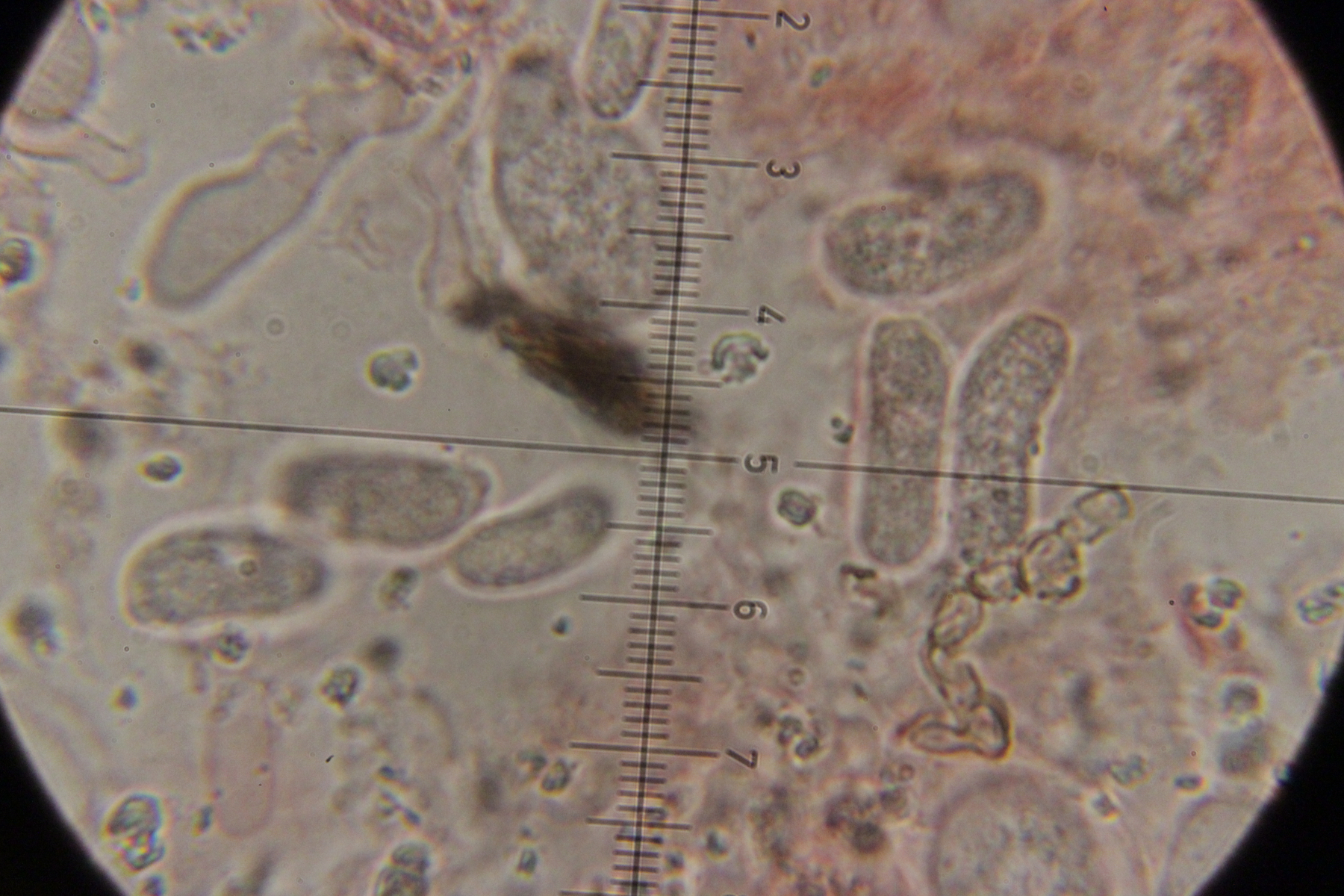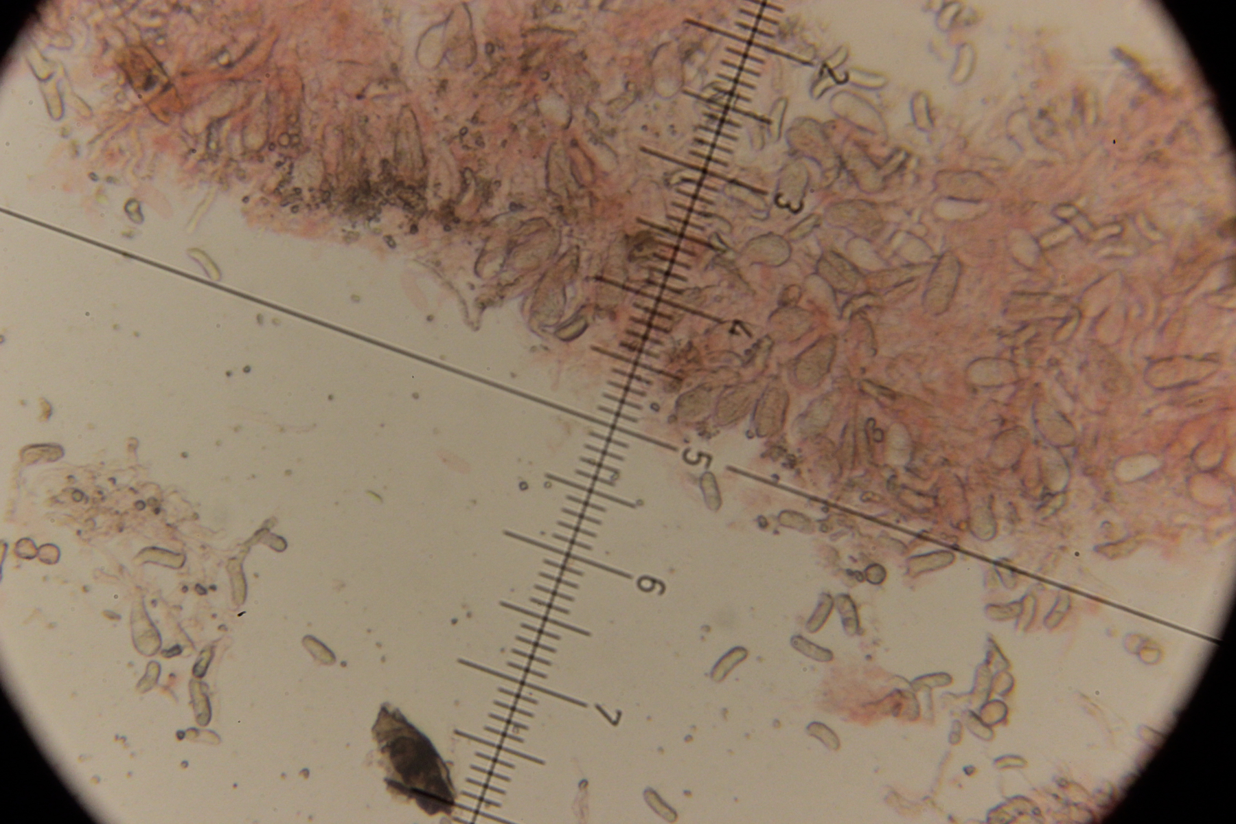 Wenn die körnigen Elemente Basidien sind, würde ich hier auf einen Heterobasidiomyceten tippen...