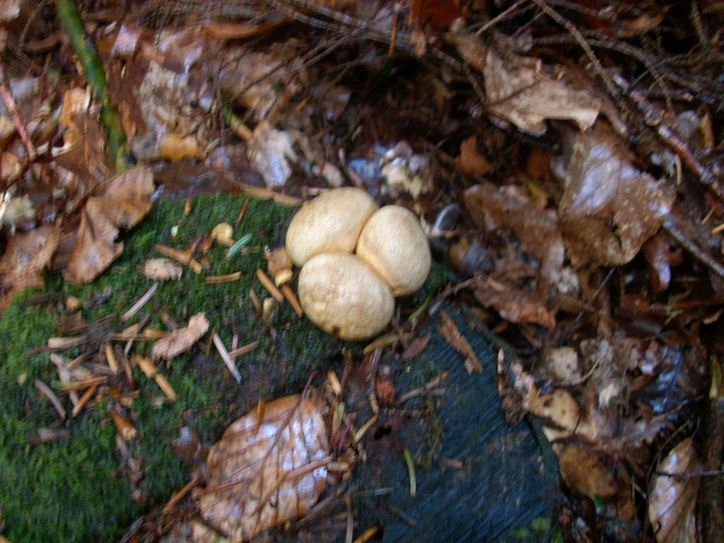 ...und hier der Drillings-Bovist: (der direkt auf einem Baumstumpf wuchs)