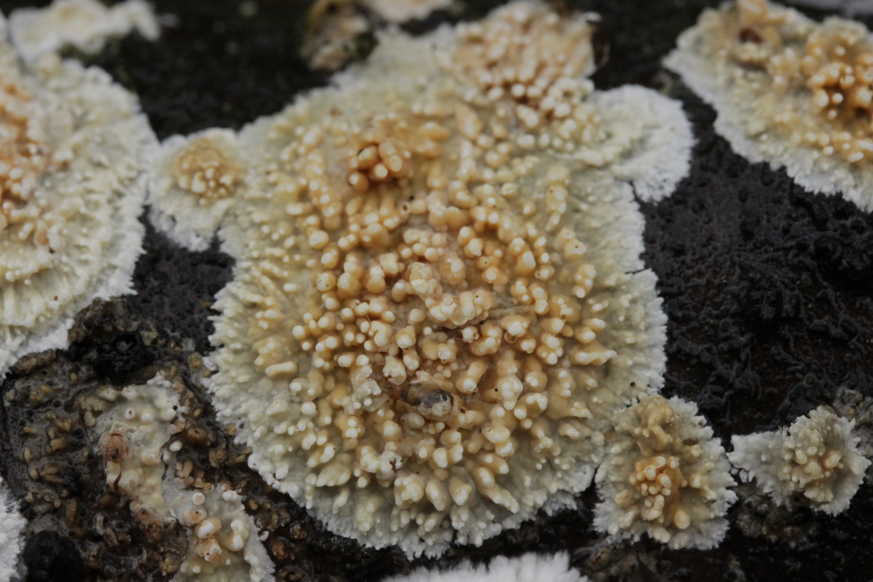 Hmm, also im Feld sah das ganz und gar nicht nach Phlebia radiata aus, sondern irgendwie viel feinkörniger. Aber jetzt wo ich mir die Fotos so anschaue, paßt das doch ganz gut. Naja, warten wir mal ab, was Mario draus macht.