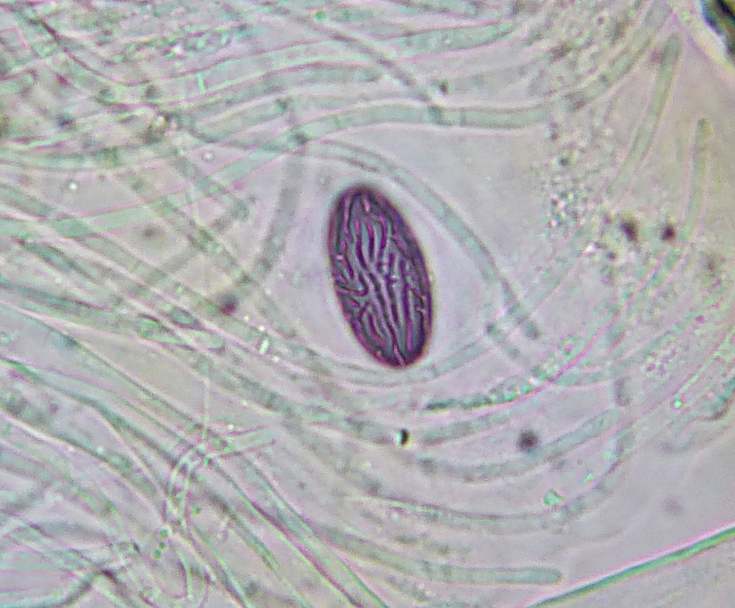U.a. führen der tonnenförmige Habitus und die unregelmäßig ornamentierten Sporen eindeutig zu dieser Art.
