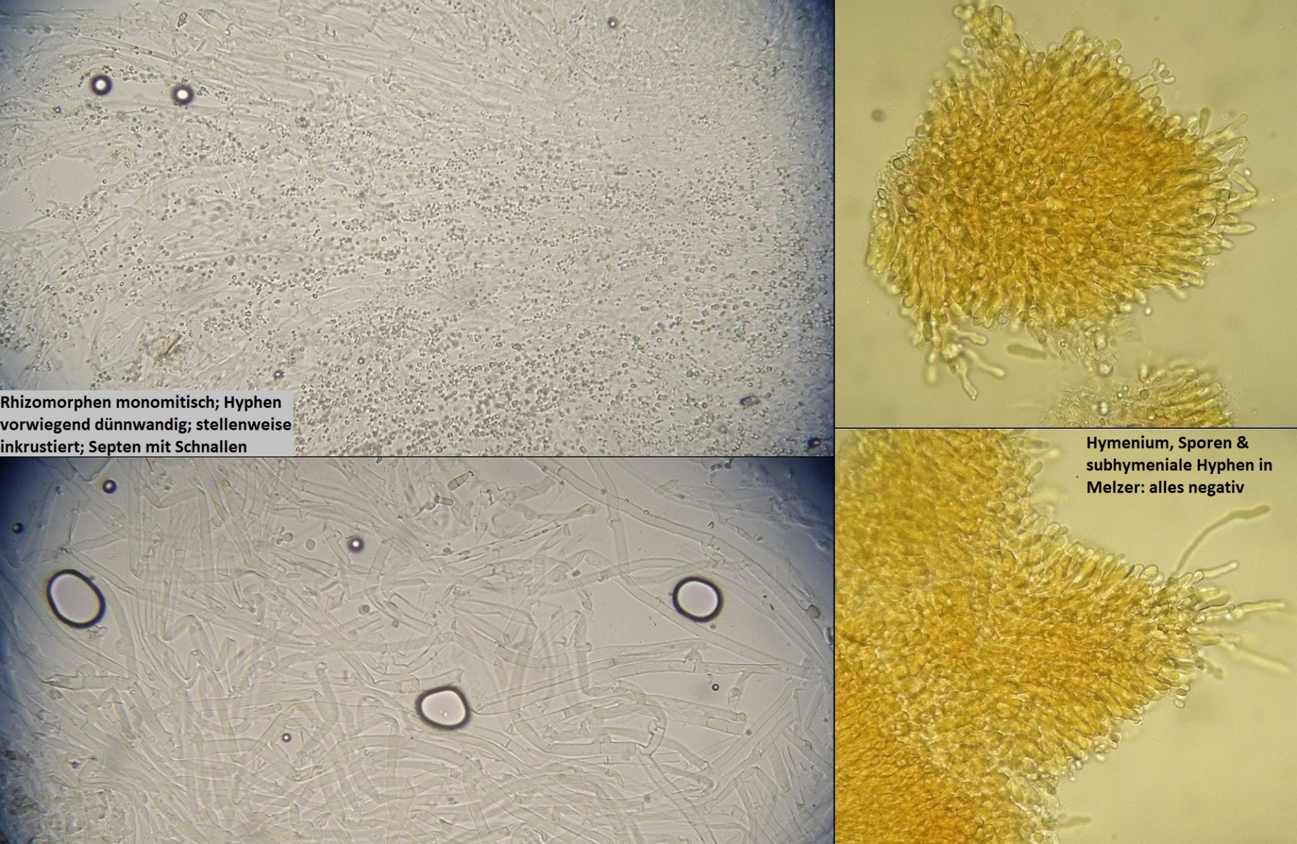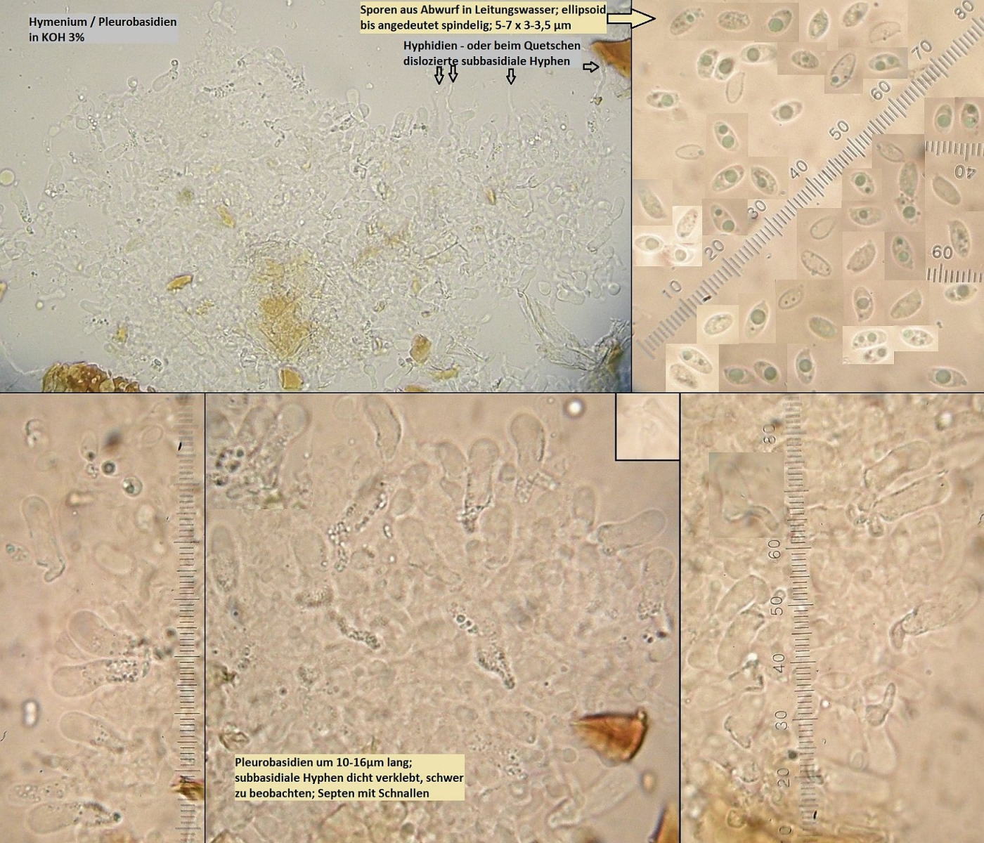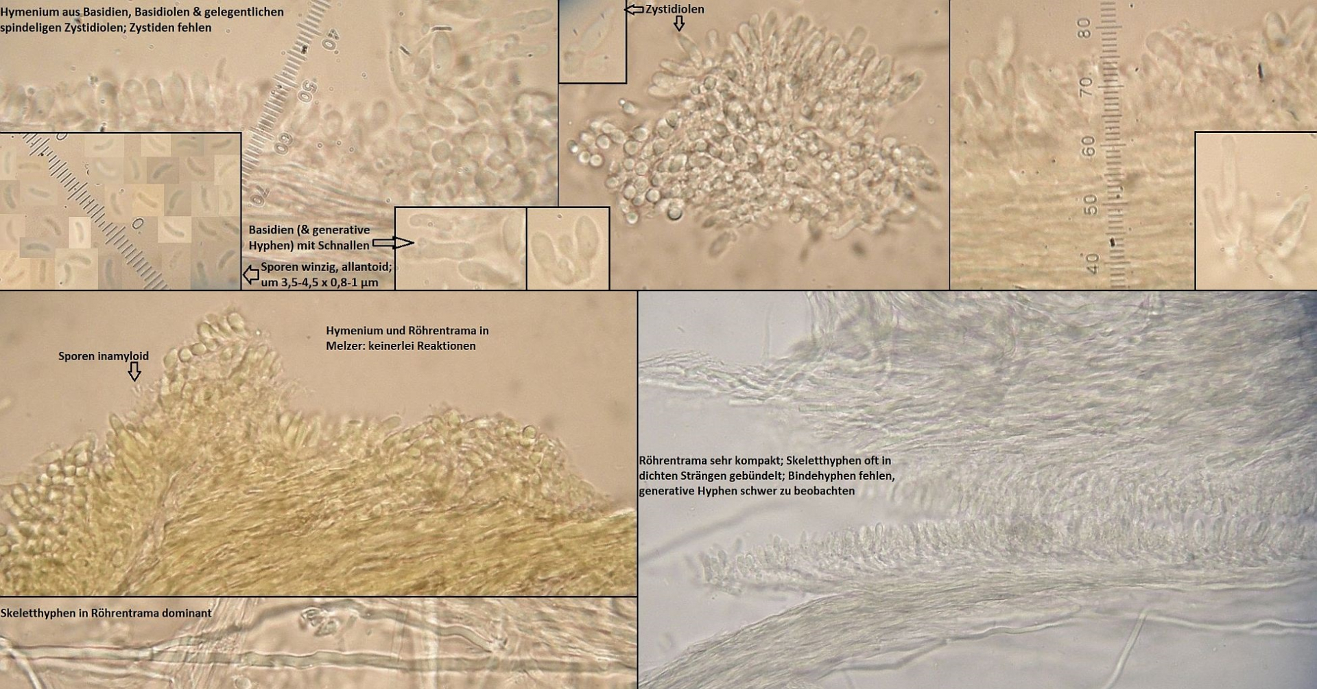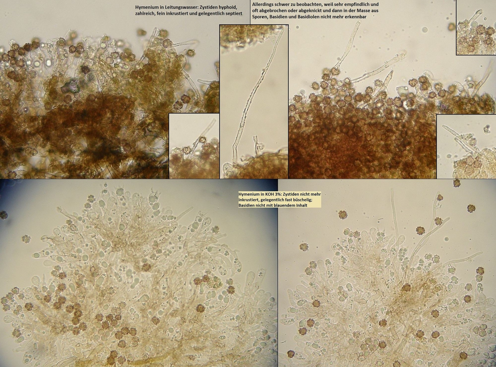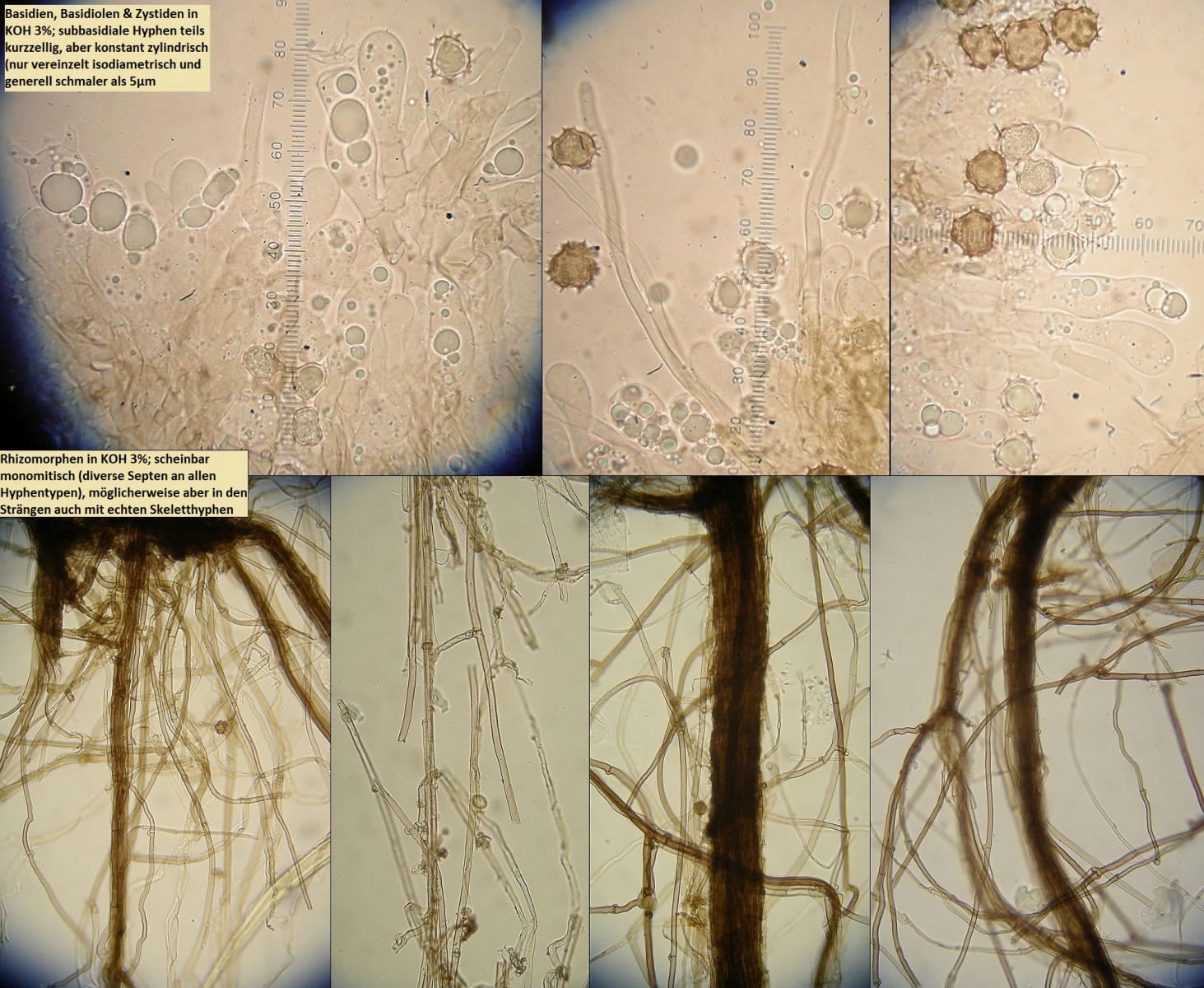 Müsste eigentlich schon hinkommen, wenn das tatsächlich die richtigen zystiden sind und sich die Skeletthyphen in den Rhizomorphen einfach gut versteckt haben, so daß ich die nicht nachweisen konnte.