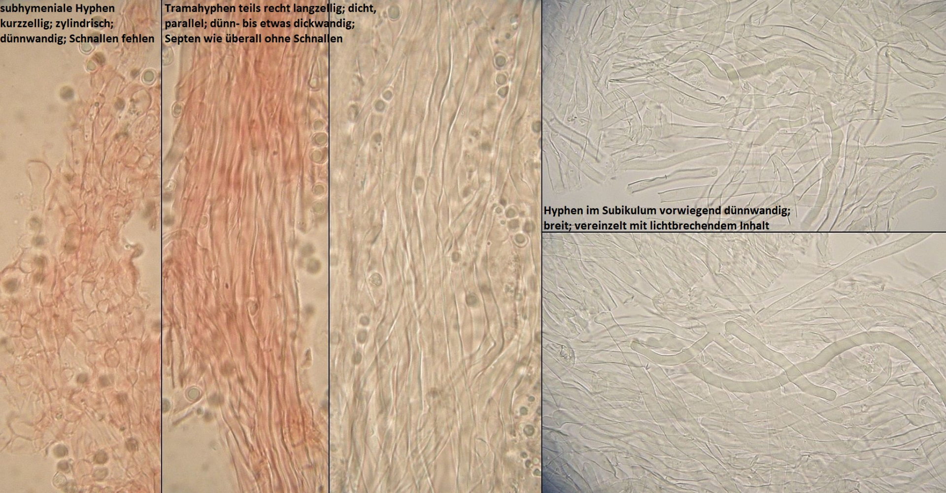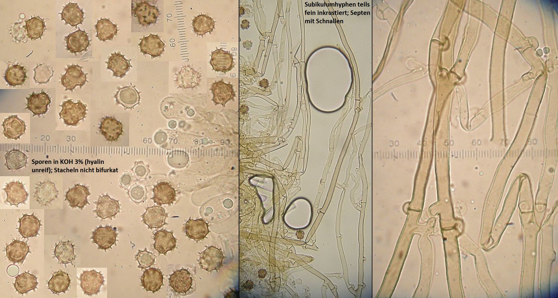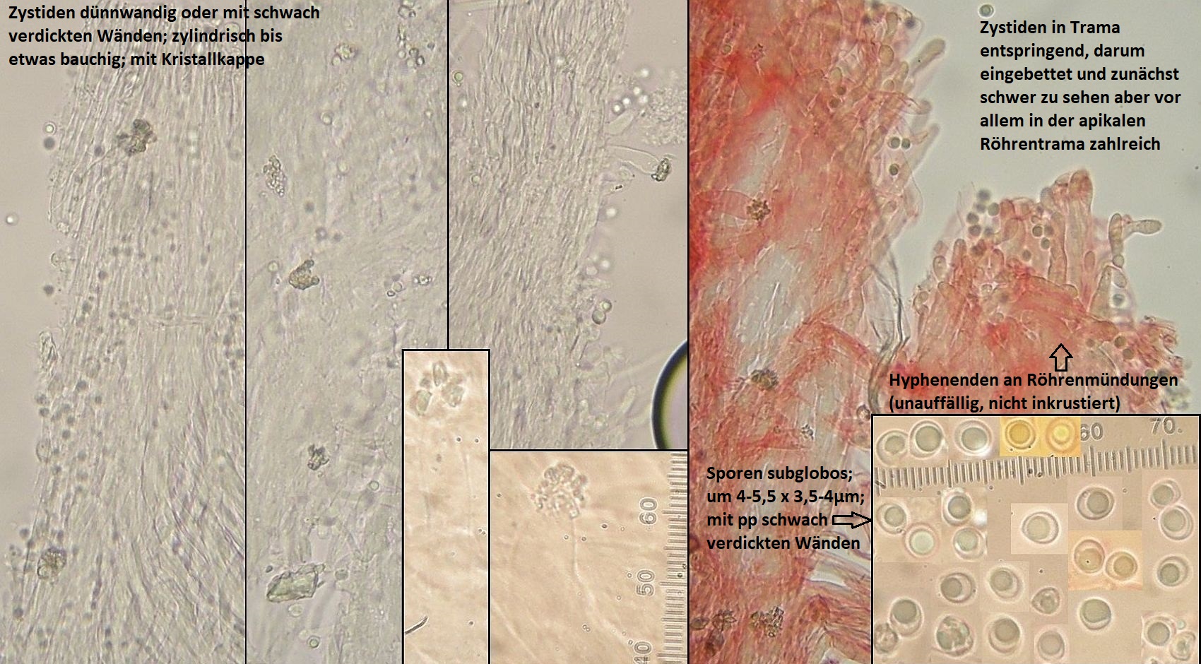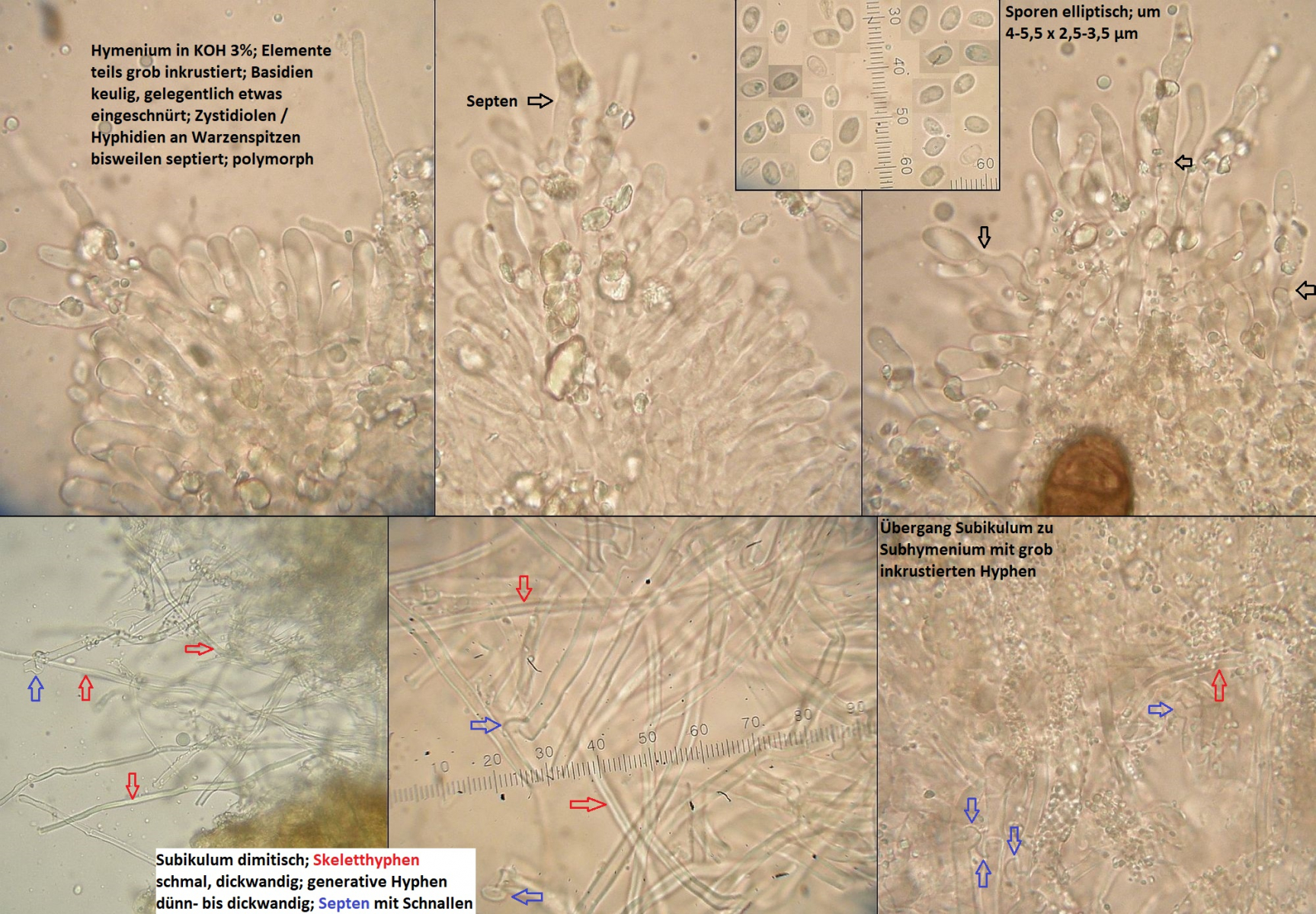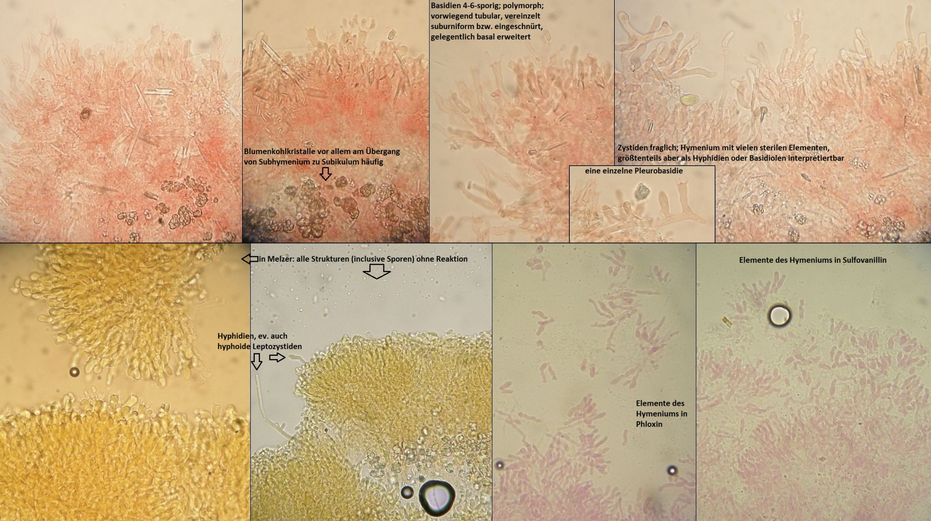 Müsste eigentlich schon hinkommen, wenn das tatsächlich die richtigen zystiden sind und sich die Skeletthyphen in den Rhizomorphen einfach gut versteckt haben, so daß ich die nicht nachweisen konnte.