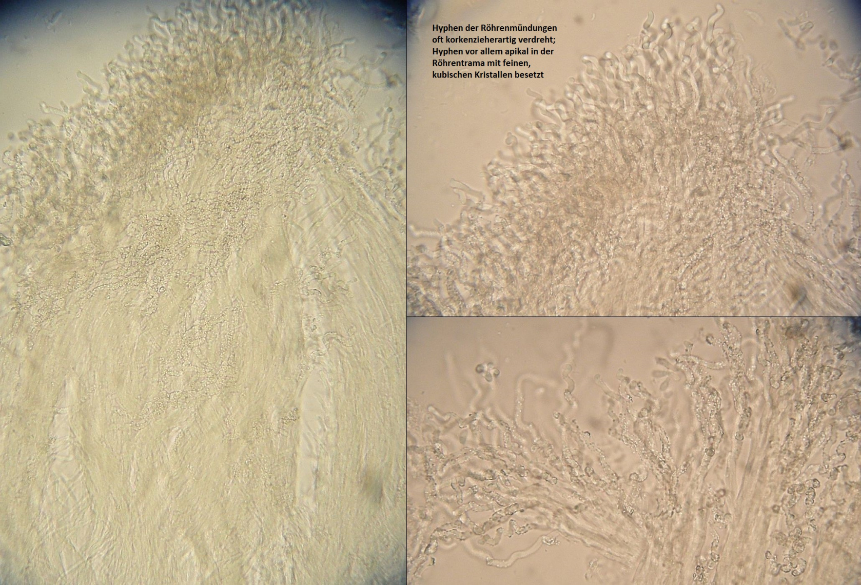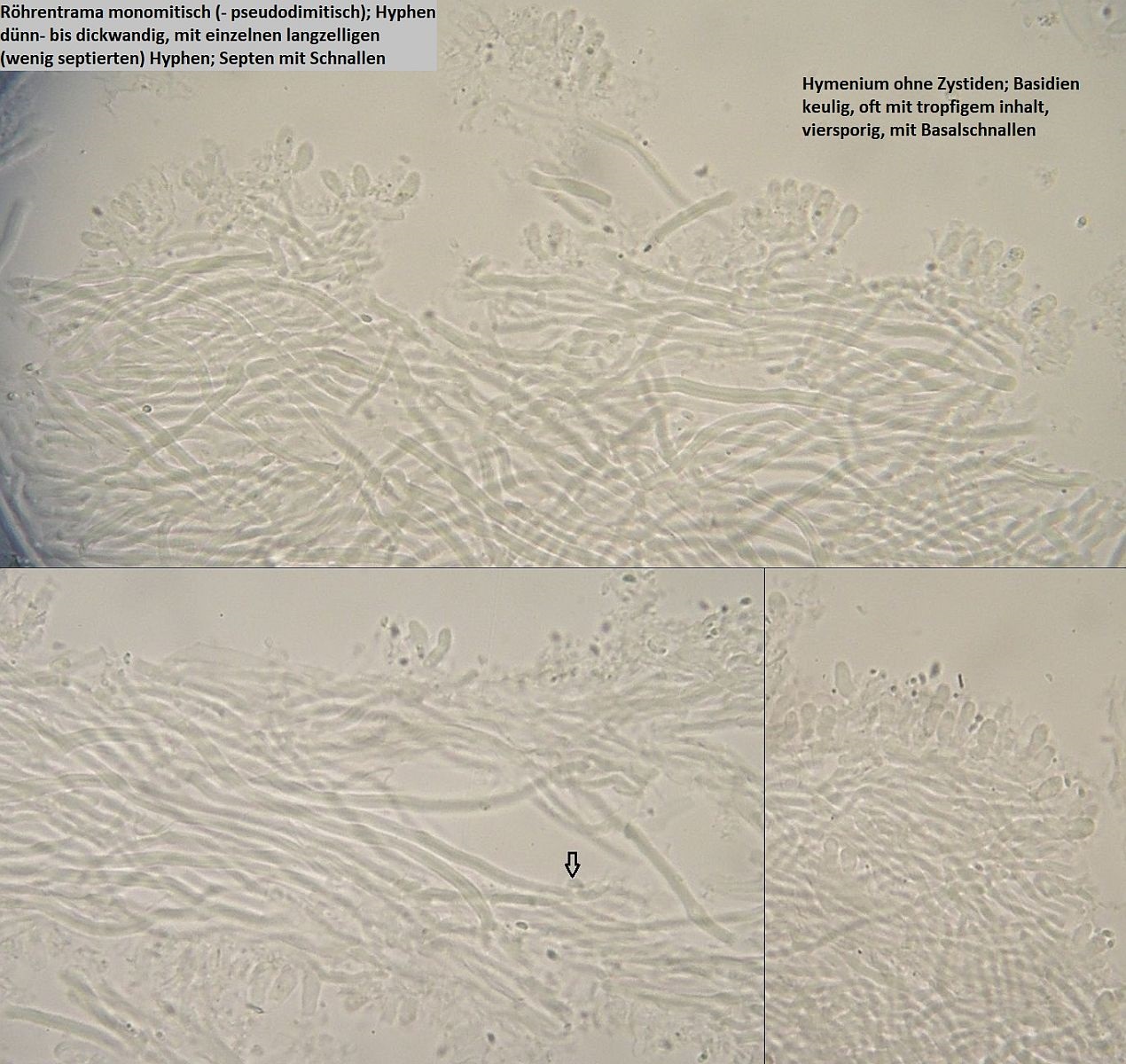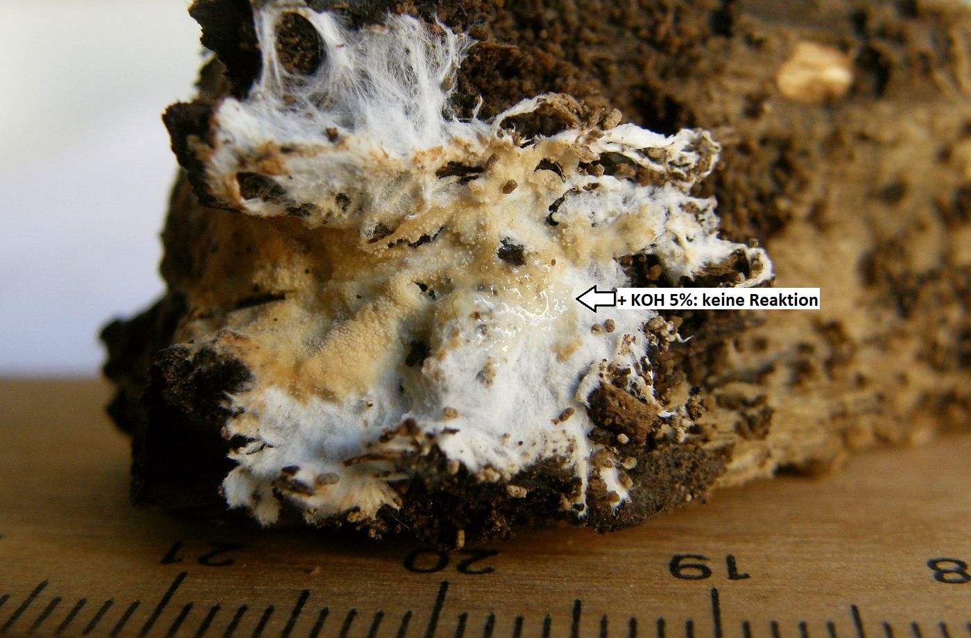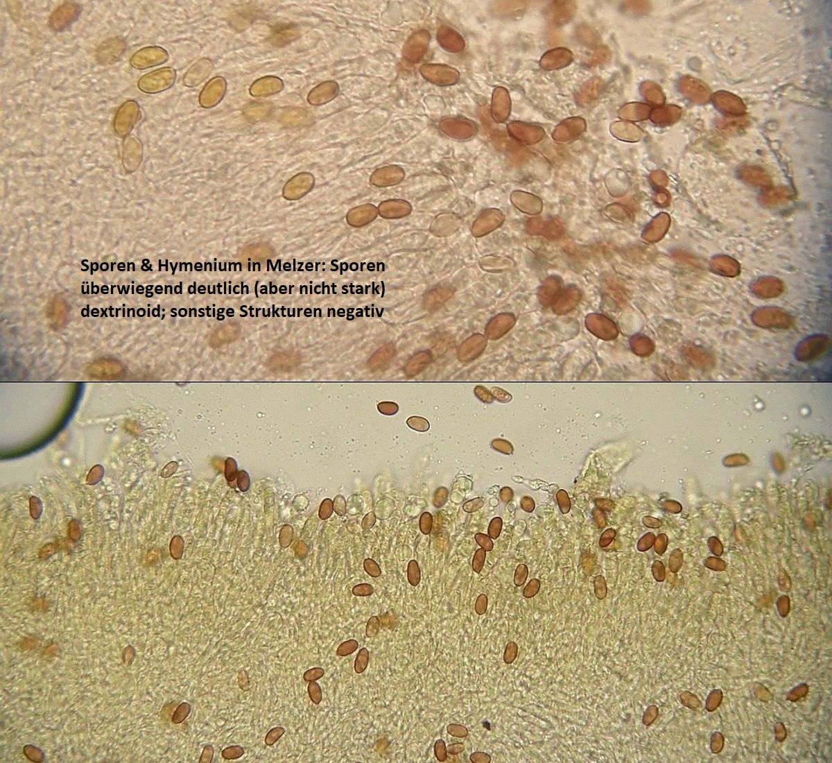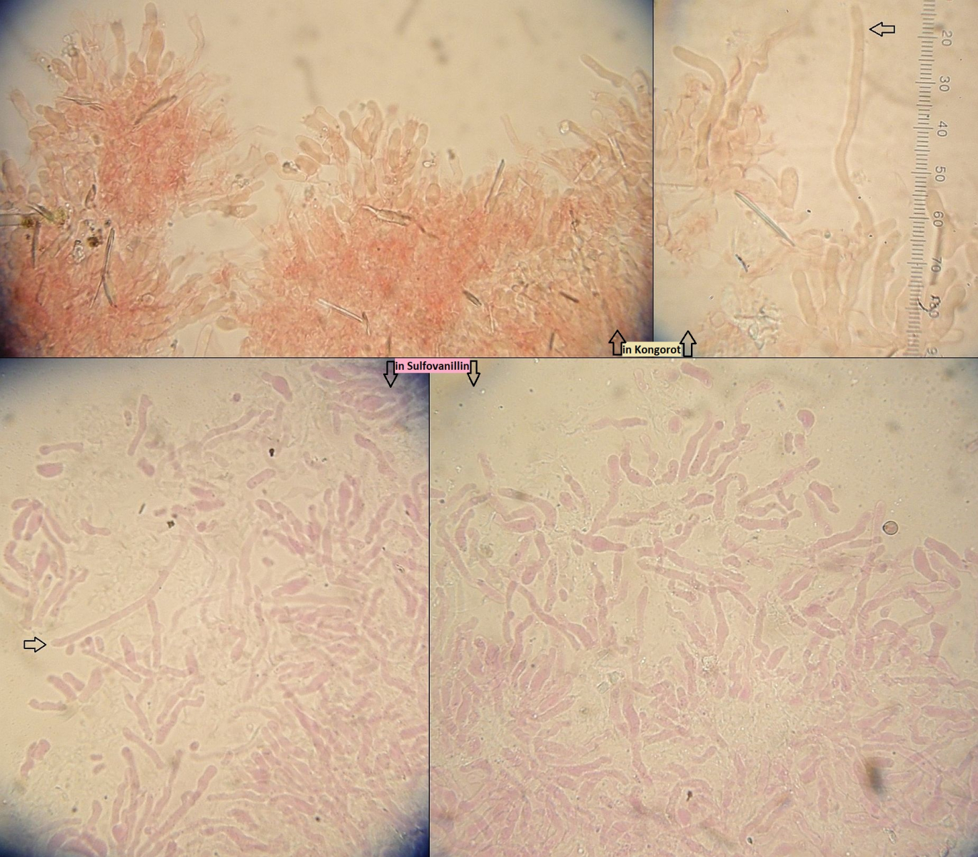 Müsste eigentlich schon hinkommen, wenn das tatsächlich die richtigen zystiden sind und sich die Skeletthyphen in den Rhizomorphen einfach gut versteckt haben, so daß ich die nicht nachweisen konnte.