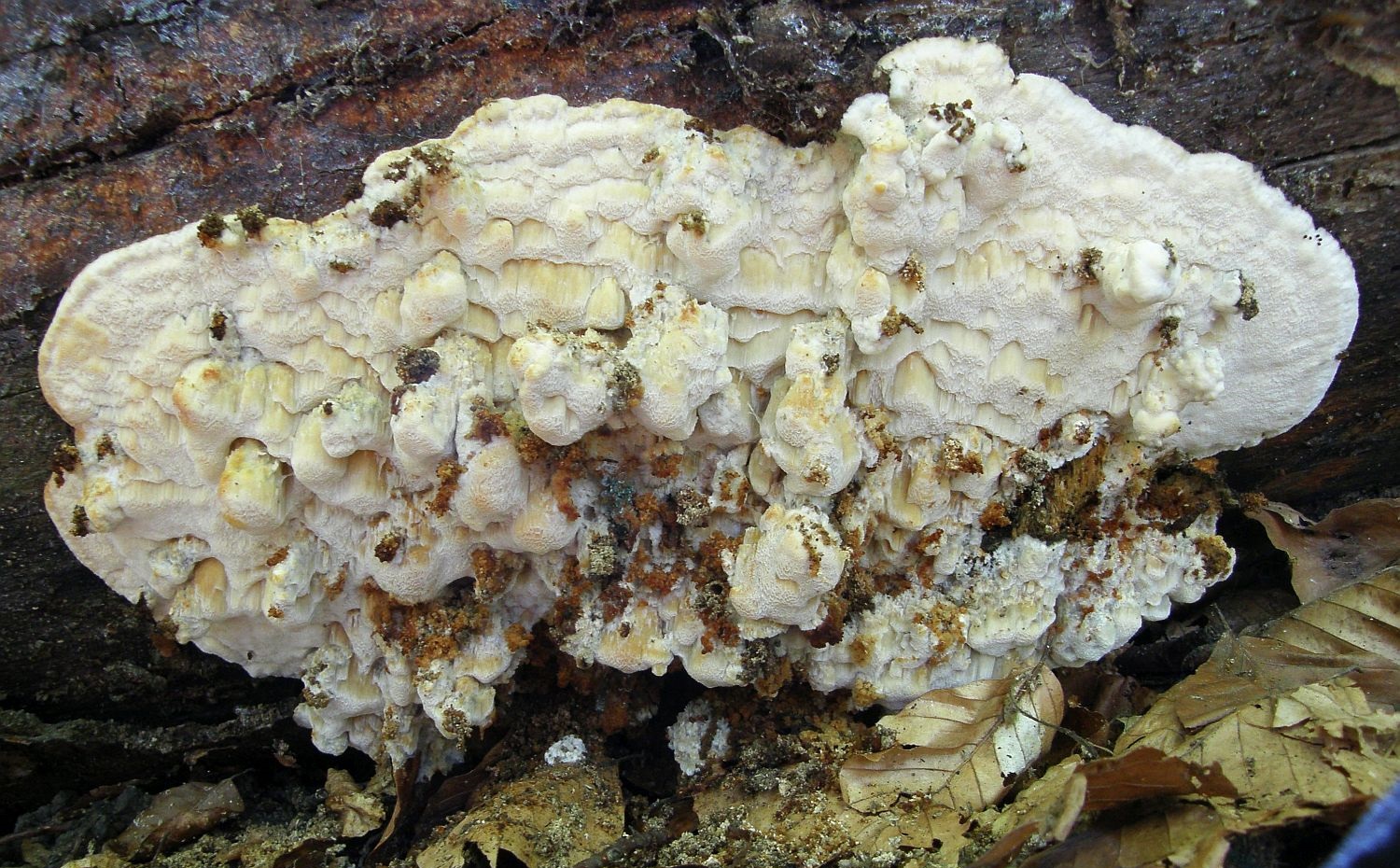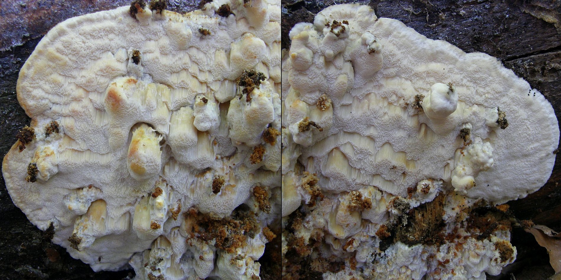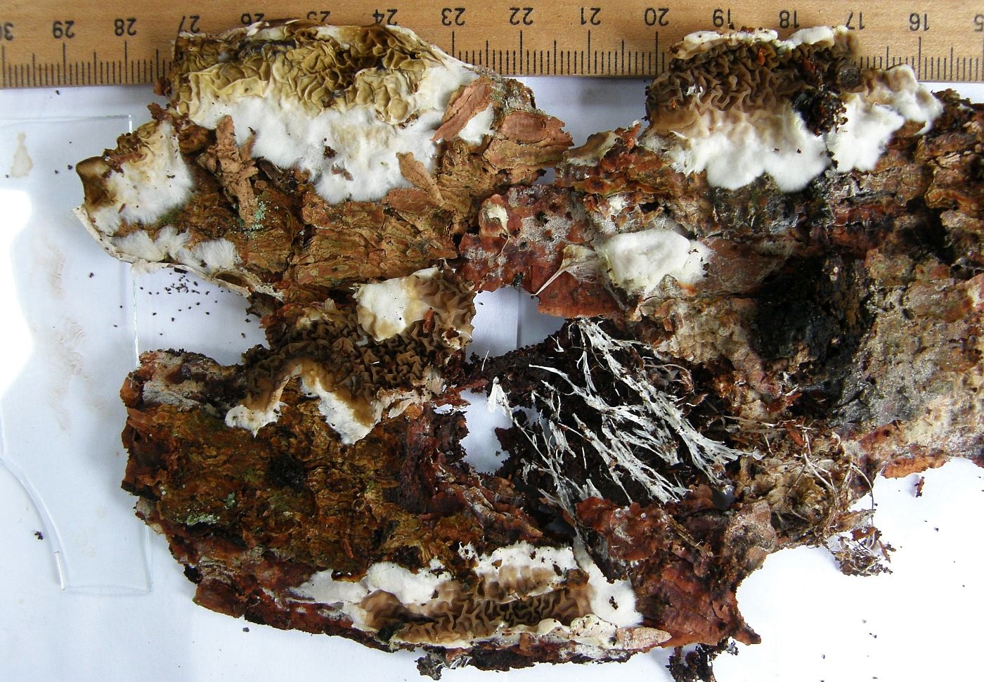 Jedenfalls nenne ich das erstmal Serpula himantioides, wüsste dann aber nicht mehr, wie man solche Kolletionen von Leucogyrophana pulverulenta unterscheiden könnte.