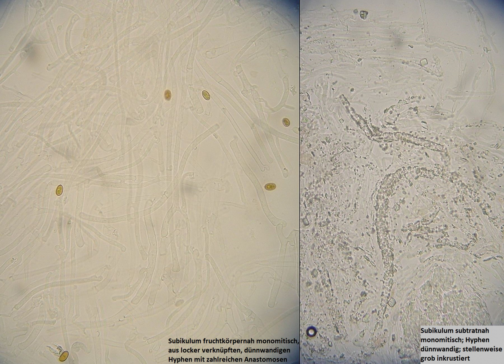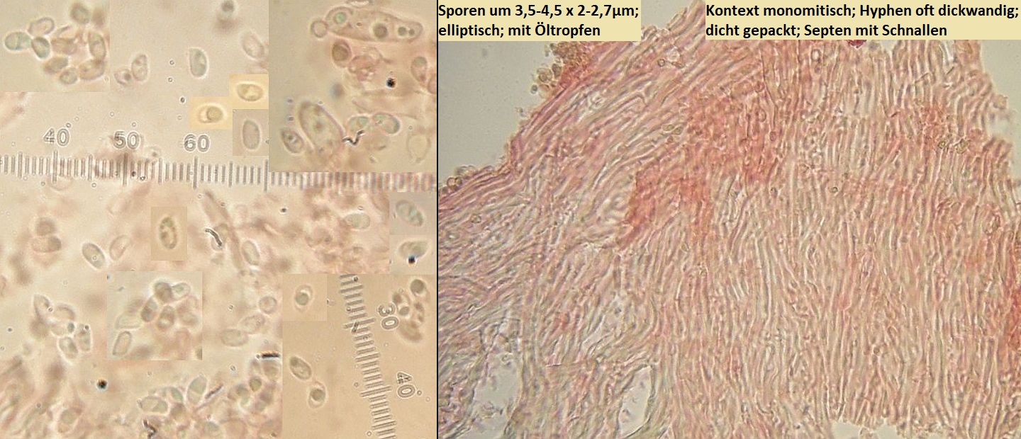 Nun hat dieser Fund hier aber keinerlei Skeletthyphen (auch nicht in den Rhizomorphen) und ziemlich kleine Sporen.