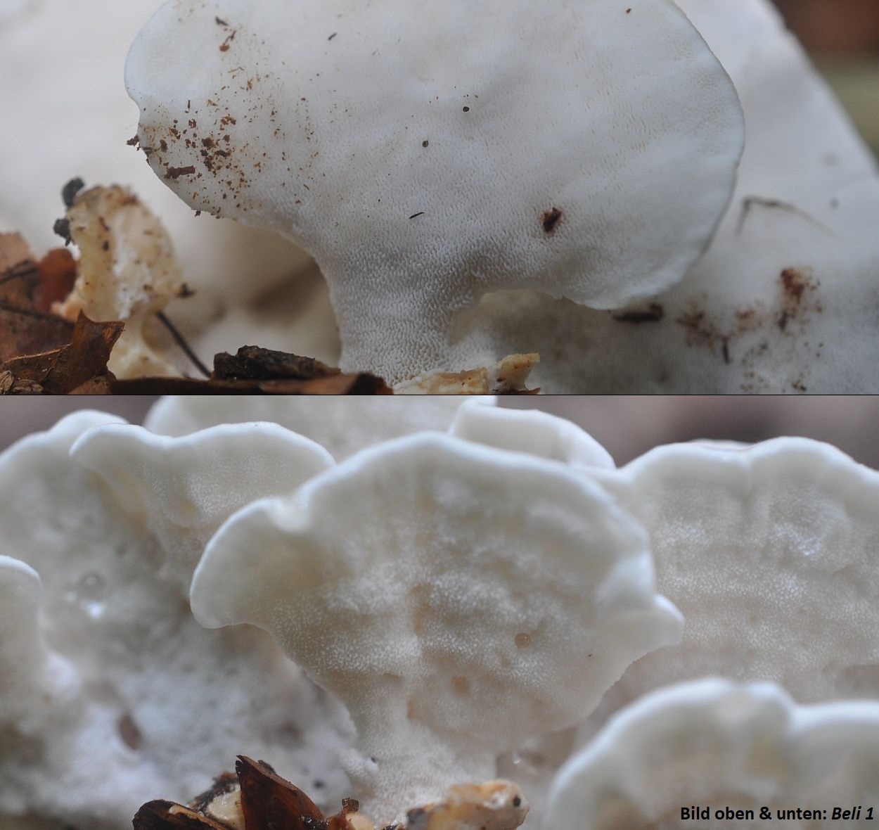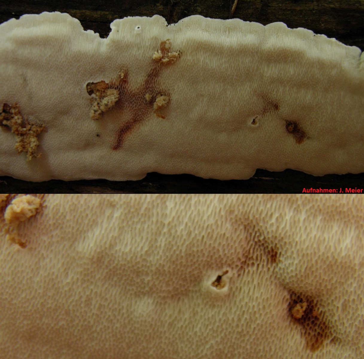 Aber ob das wirklich ein tragbares Trennmerkmal ist? Oder vielleicht auch reife- bzw. wetterabhängig? Immerhin fand ich dieses Aphanobasidium cf pseudotsugae zu einer Zeit, als der Sommer schon damit beganan, alles Leben aus den Wäldern zu brutzeln.