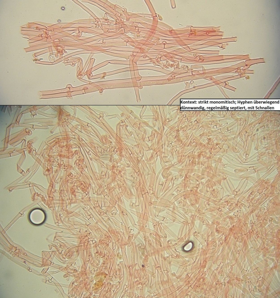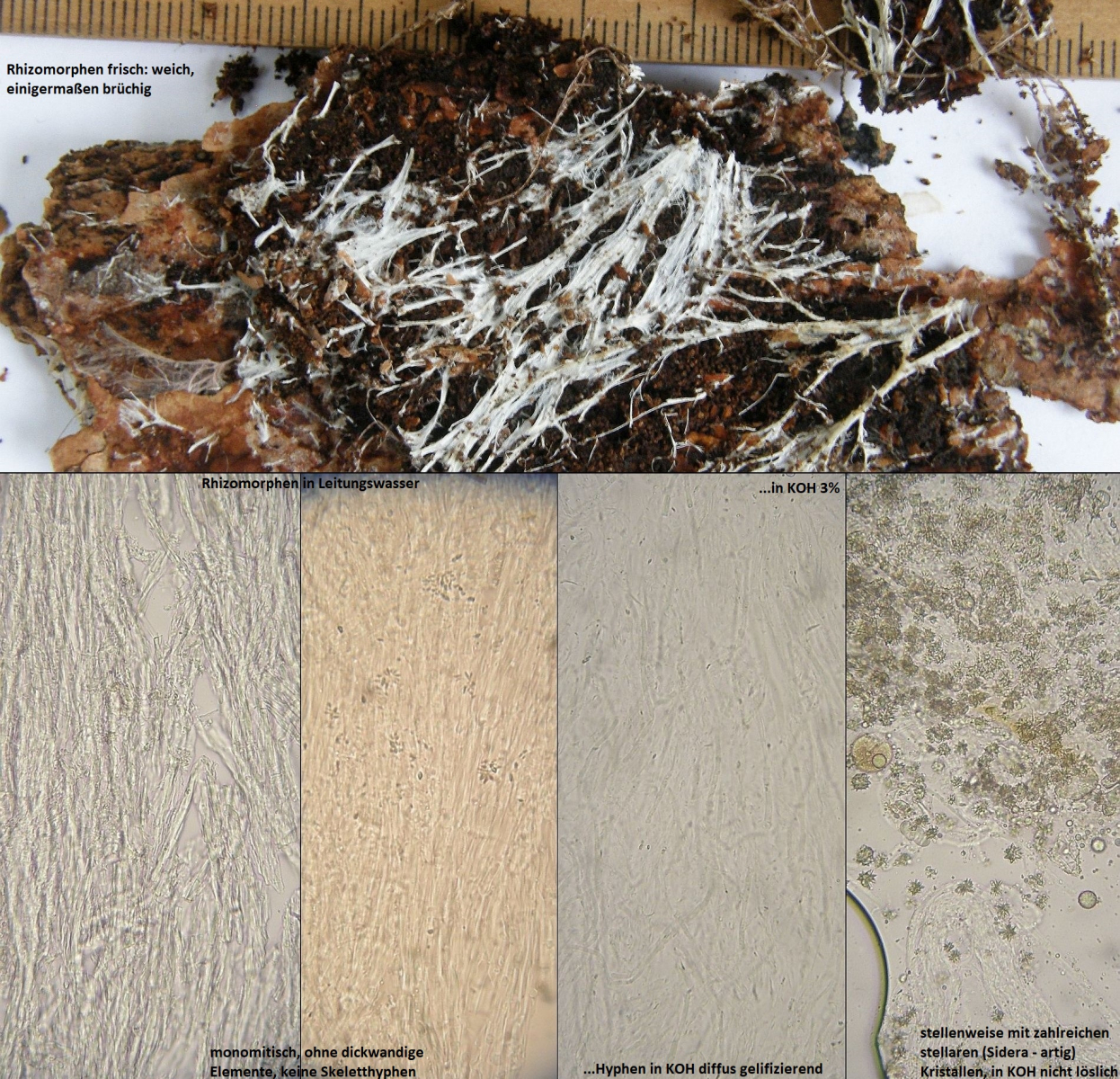 Nun hat dieser Fund hier aber keinerlei Skeletthyphen (auch nicht in den Rhizomorphen) und ziemlich kleine Sporen.