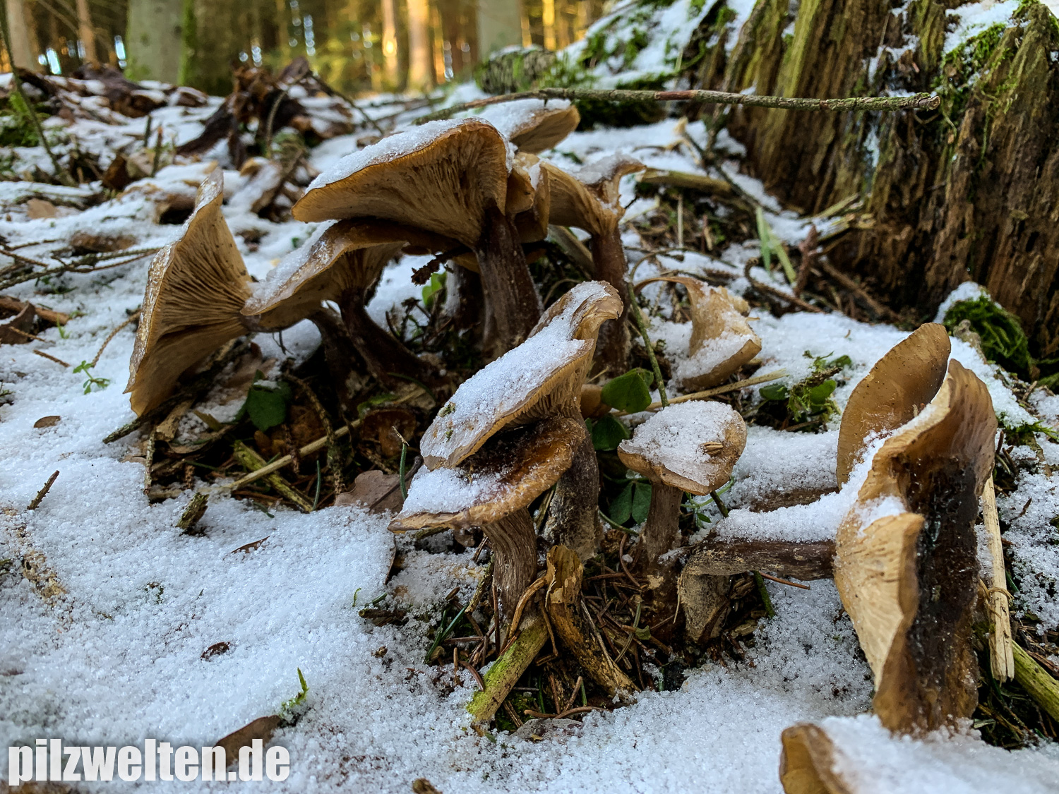 Herbstpilze sollten nach Frost nicht mehr für Speisezwecke gesammelt werden. Essen würden wir also in dem Fall nur die Samtfußrüblinge. Birkenporlinge sind eigentlich gar nicht so hart und lassen sich gut schneiden. Wie wir sie verarbeiten bzw. haltbar machen hätten wir bei Interesse auch als Video im Angebot: Birkenporlinge ernten und verarbeiten
