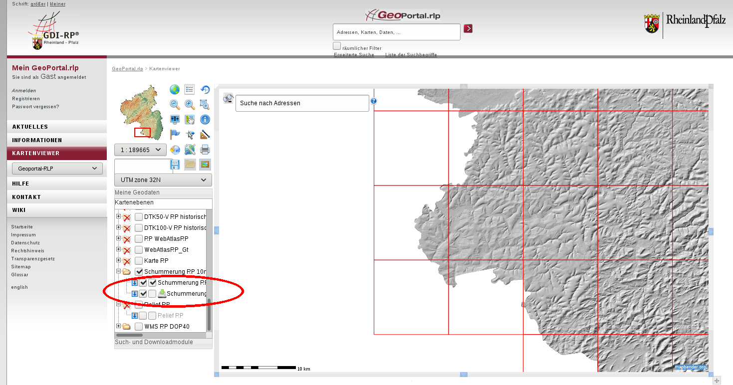 unten erscheint dann ein link, zB "Schummerung RP 10m im CRS EPSG:25832 - image/tiff - Teil 1 von 55"